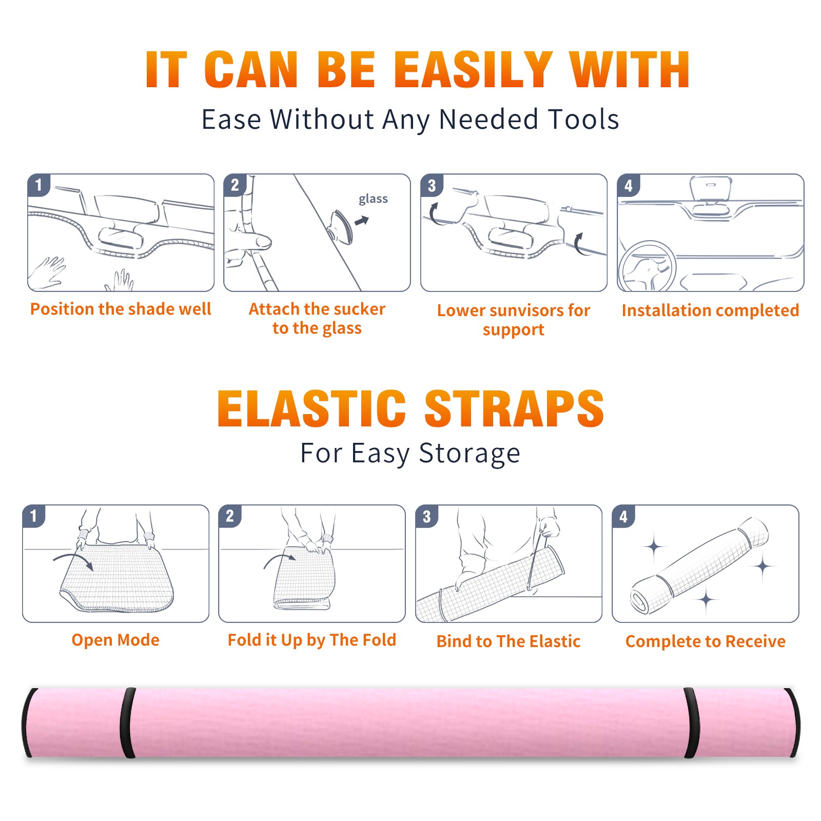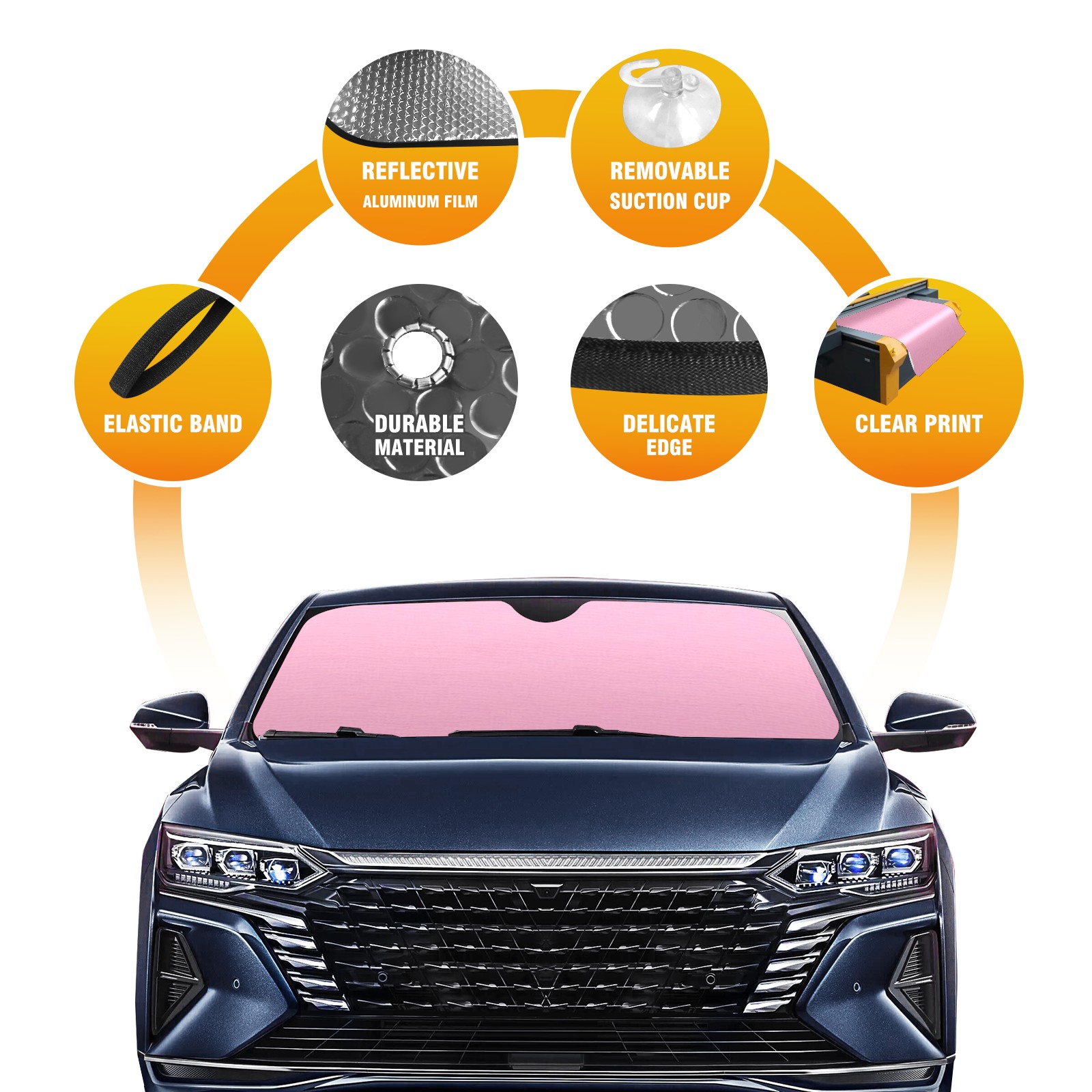 Car Windshield Sun Shade for Front Window Pink Foldable Vehicle Windshield Car Sun Visor Covers Automotive Window Protector Car Privacy Sun Blocker