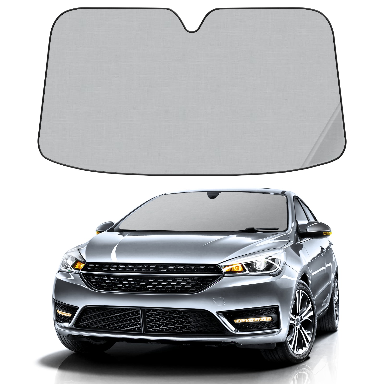 </b>ZXIVGOQFR Foldable Premium Car Windshield Sunshade is your great solution to reduce your car’s interior temperature dramatically! This is definitely a must-have item for your summer travel! </b> <br> ●</b>Size: 63"L x 33.5"W </b> <br> ●</b>Blocking Uv Rays & Heat Insulation</b><br> Our vehicle sunshade provides effective UV, sun, and summer heat protection .Maintains dashboards by preventing fading and cracking <br> ●</b>Easy-To-Store Folding Design Makes Storage Convenient </b><br> ZXIVGOQFR car sunshades come with removable suction cups and elastic bands that you can install easily and quickly, and the removable suction cups will not leave any marks on your windows when removed. Within seconds, windshield visor can be installed and removed. When not in use,the front windshield can be easily and effectively placed on the door pocket or the dashboard, which is beautiful and does not take up space in the car.<br> <br> </b>PUT UP A 'PROTECTIVE UMBRELLA' FOR YOUR BELOVED CAR!</b>