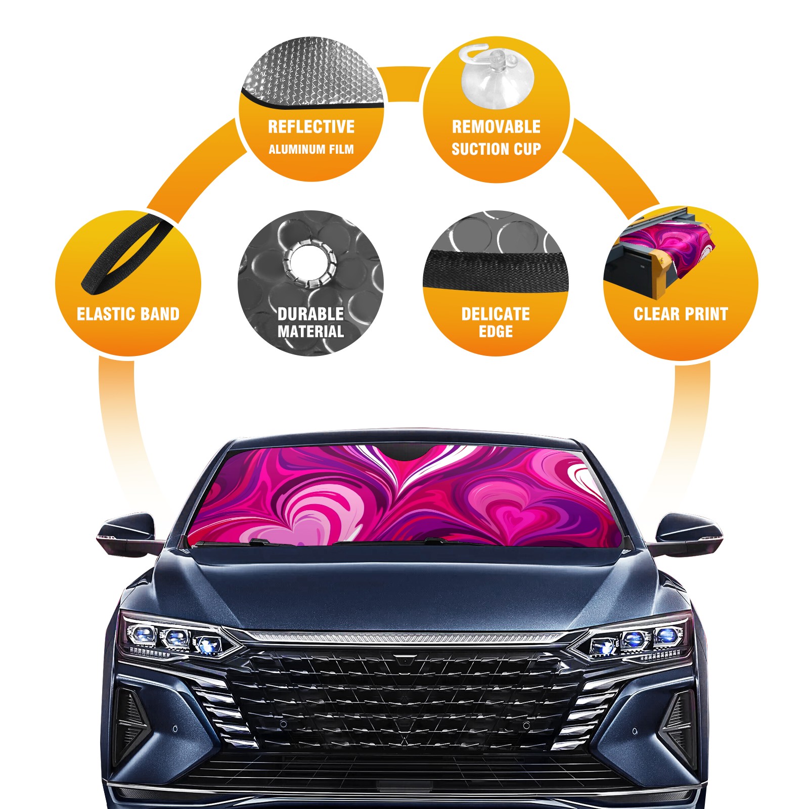 Car Windshield Sun Shade for Front Window Hearts (18) Foldable Vehicle Windshield Car Sun Visor Covers Automotive Window Protector Car Privacy Sun Blocker