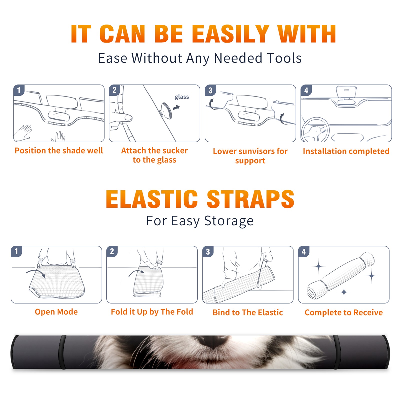 </b>ZXIVGOQFR Foldable Premium Car Windshield Sunshade is your great solution to reduce your car’s interior temperature dramatically! This is definitely a must-have item for your summer travel! </b> <br> ●</b>Size: 63"L x 33.5"W </b> <br> ●</b>Blocking Uv Rays & Heat Insulation</b><br> Our vehicle sunshade provides effective UV, sun, and summer heat protection .Maintains dashboards by preventing fading and cracking <br> ●</b>Easy-To-Store Folding Design Makes Storage Convenient </b><br> ZXIVGOQFR car sunshades come with removable suction cups and elastic bands that you can install easily and quickly, and the removable suction cups will not leave any marks on your windows when removed. Within seconds, windshield visor can be installed and removed. When not in use,the front windshield can be easily and effectively placed on the door pocket or the dashboard, which is beautiful and does not take up space in the car.<br> <br> </b>PUT UP A 'PROTECTIVE UMBRELLA' FOR YOUR BELOVED CAR!</b>