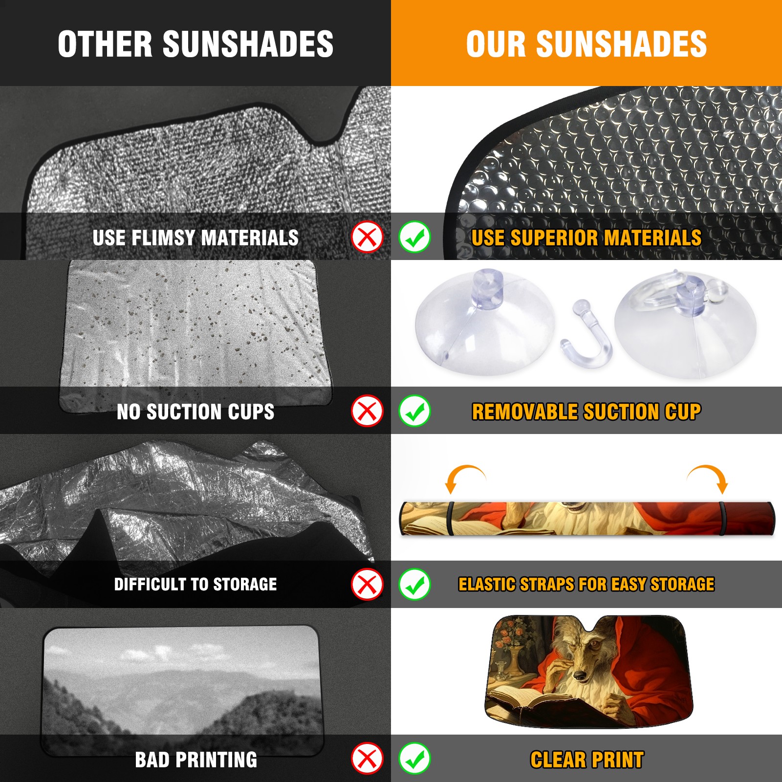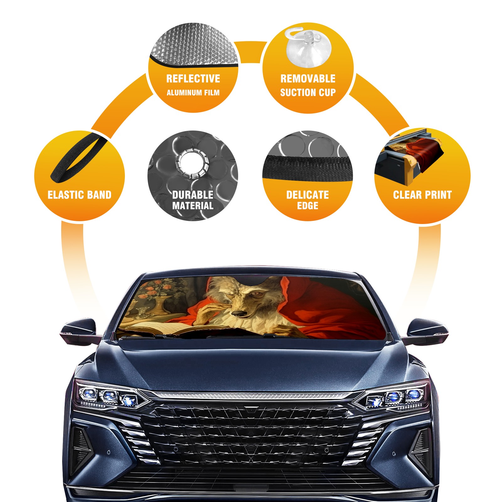 Car Windshield Sun Shade for Front Window Wolf Foldable Vehicle Windshield Car Sun Visor Covers Automotive Window Protector Car Privacy Sun Blocker