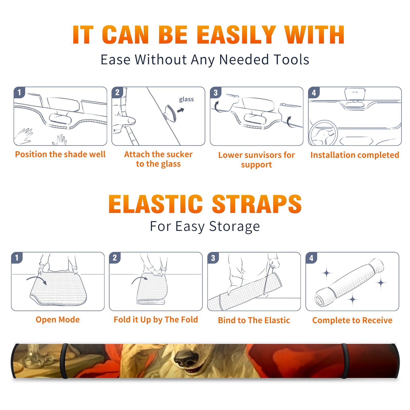 </b>ZXIVGOQFR Foldable Premium Car Windshield Sunshade is your great solution to reduce your car’s interior temperature dramatically! This is definitely a must-have item for your summer travel! </b> <br> ●</b>Size: 63"L x 33.5"W </b> <br> ●</b>Blocking Uv Rays & Heat Insulation</b><br> Our vehicle sunshade provides effective UV, sun, and summer heat protection .Maintains dashboards by preventing fading and cracking <br> ●</b>Easy-To-Store Folding Design Makes Storage Convenient </b><br> ZXIVGOQFR car sunshades come with removable suction cups and elastic bands that you can install easily and quickly, and the removable suction cups will not leave any marks on your windows when removed. Within seconds, windshield visor can be installed and removed. When not in use,the front windshield can be easily and effectively placed on the door pocket or the dashboard, which is beautiful and does not take up space in the car.<br> <br> </b>PUT UP A 'PROTECTIVE UMBRELLA' FOR YOUR BELOVED CAR!</b>
