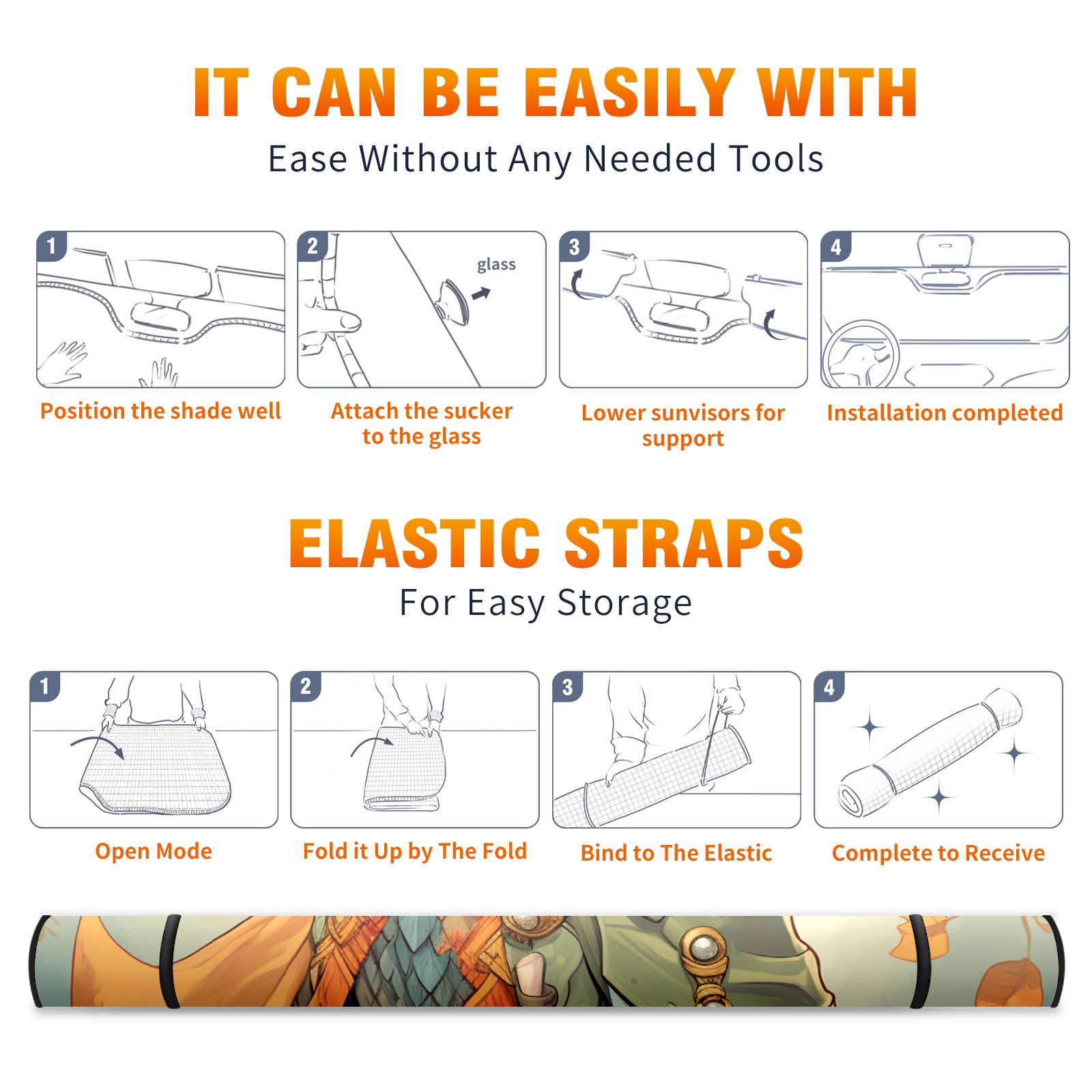 </b>ZXIVGOQFR Foldable Premium Car Windshield Sunshade is your great solution to reduce your car’s interior temperature dramatically! This is definitely a must-have item for your summer travel! </b> <br> ●</b>Size: 63"L x 33.5"W </b> <br> ●</b>Blocking Uv Rays & Heat Insulation</b><br> Our vehicle sunshade provides effective UV, sun, and summer heat protection .Maintains dashboards by preventing fading and cracking <br> ●</b>Easy-To-Store Folding Design Makes Storage Convenient </b><br> ZXIVGOQFR car sunshades come with removable suction cups and elastic bands that you can install easily and quickly, and the removable suction cups will not leave any marks on your windows when removed. Within seconds, windshield visor can be installed and removed. When not in use,the front windshield can be easily and effectively placed on the door pocket or the dashboard, which is beautiful and does not take up space in the car.<br> <br> </b>PUT UP A 'PROTECTIVE UMBRELLA' FOR YOUR BELOVED CAR!</b>