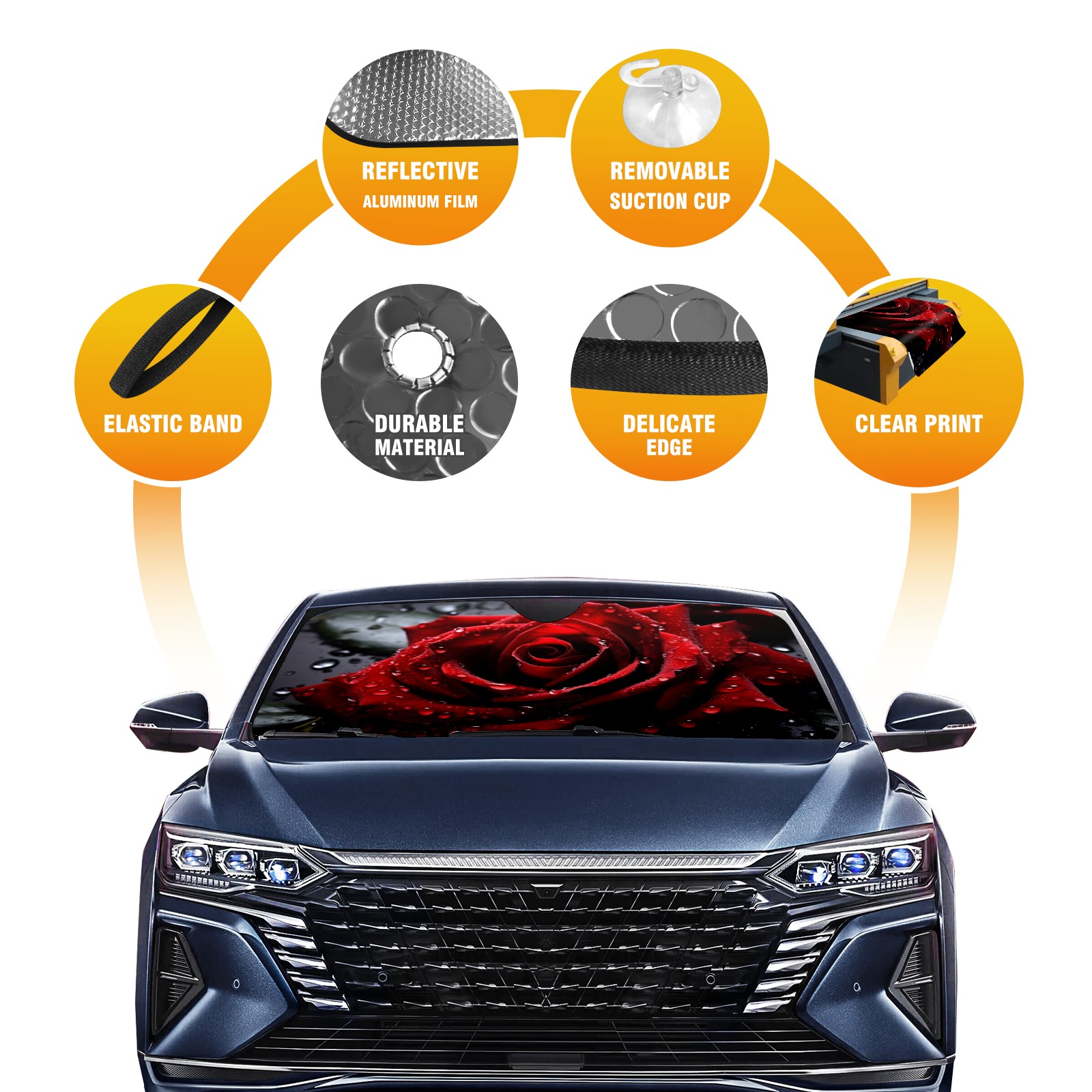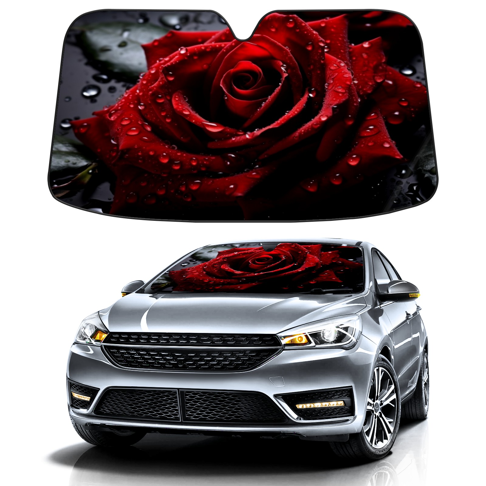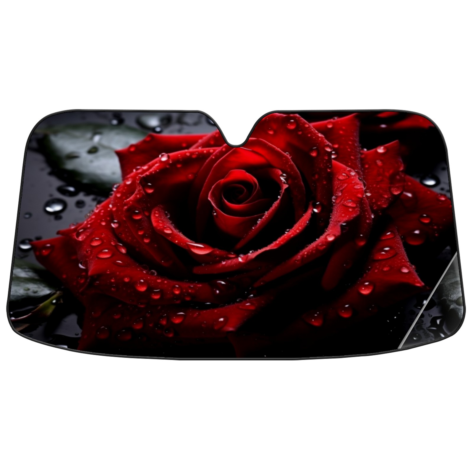 Car Windshield Sun Shade for Front Window Red Rose Flower (1) Foldable Vehicle Windshield Car Sun Visor Covers Automotive Window Protector Car Privacy Sun Blocker