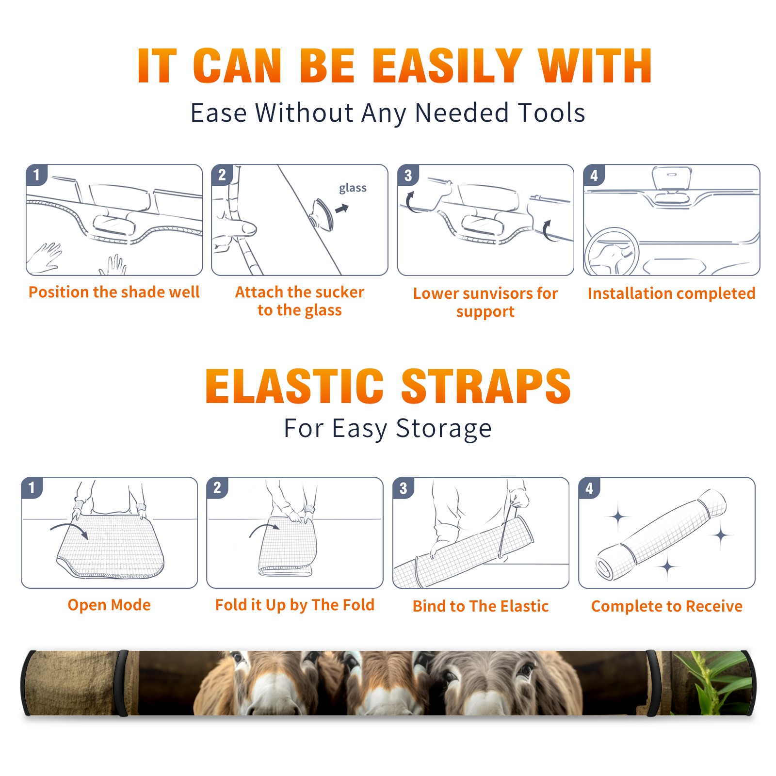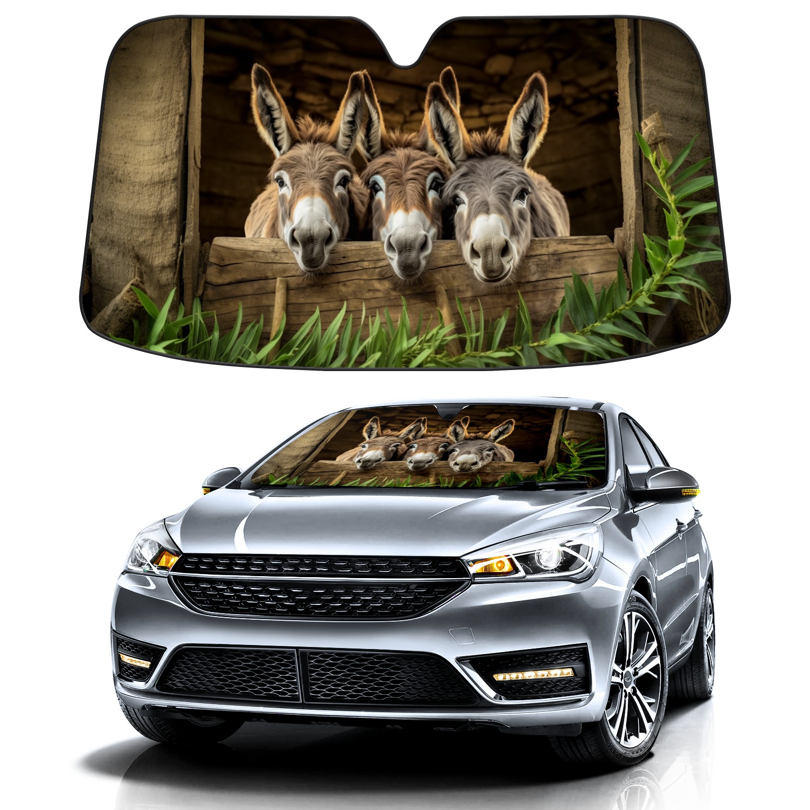 Car Windshield Sun Shade for Front Window Donkeys Cute Foldable Vehicle Windshield Car Sun Visor Covers Automotive Window Protector Car Privacy Sun Blocker