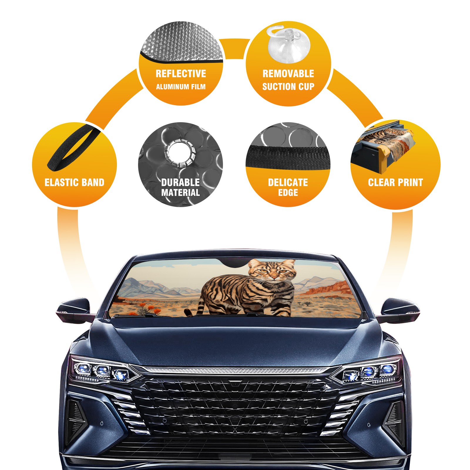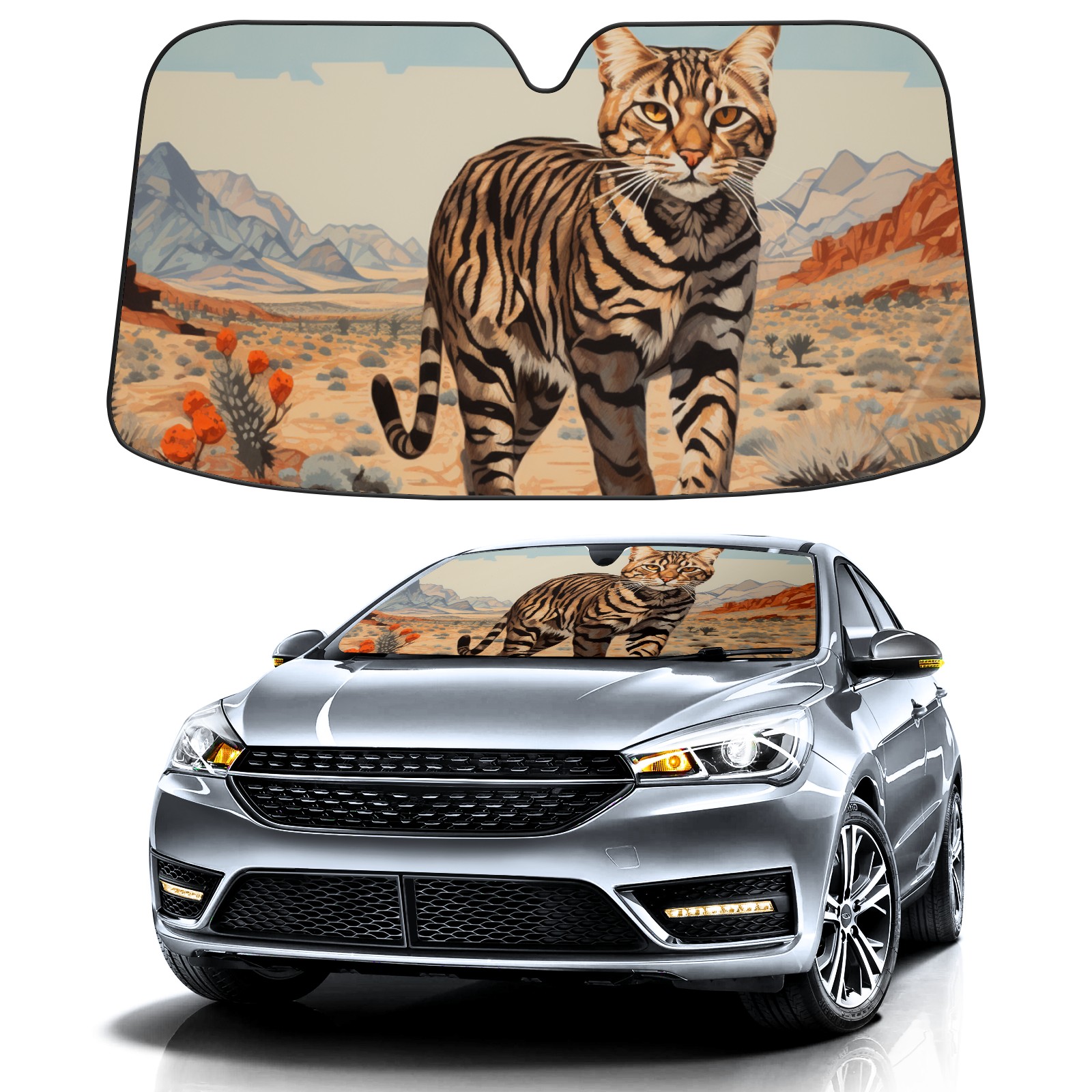 Car Windshield Sun Shade for Front Window Cat In Desert (4) Foldable Vehicle Windshield Car Sun Visor Covers Automotive Window Protector Car Privacy Sun Blocker