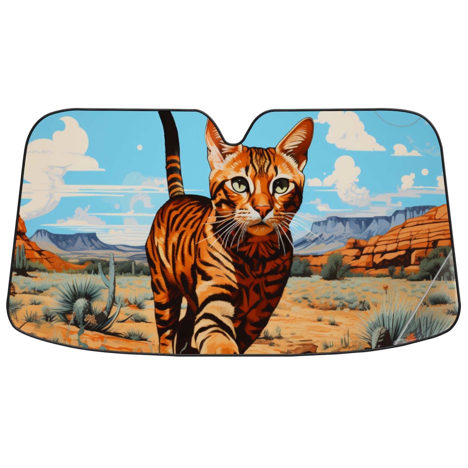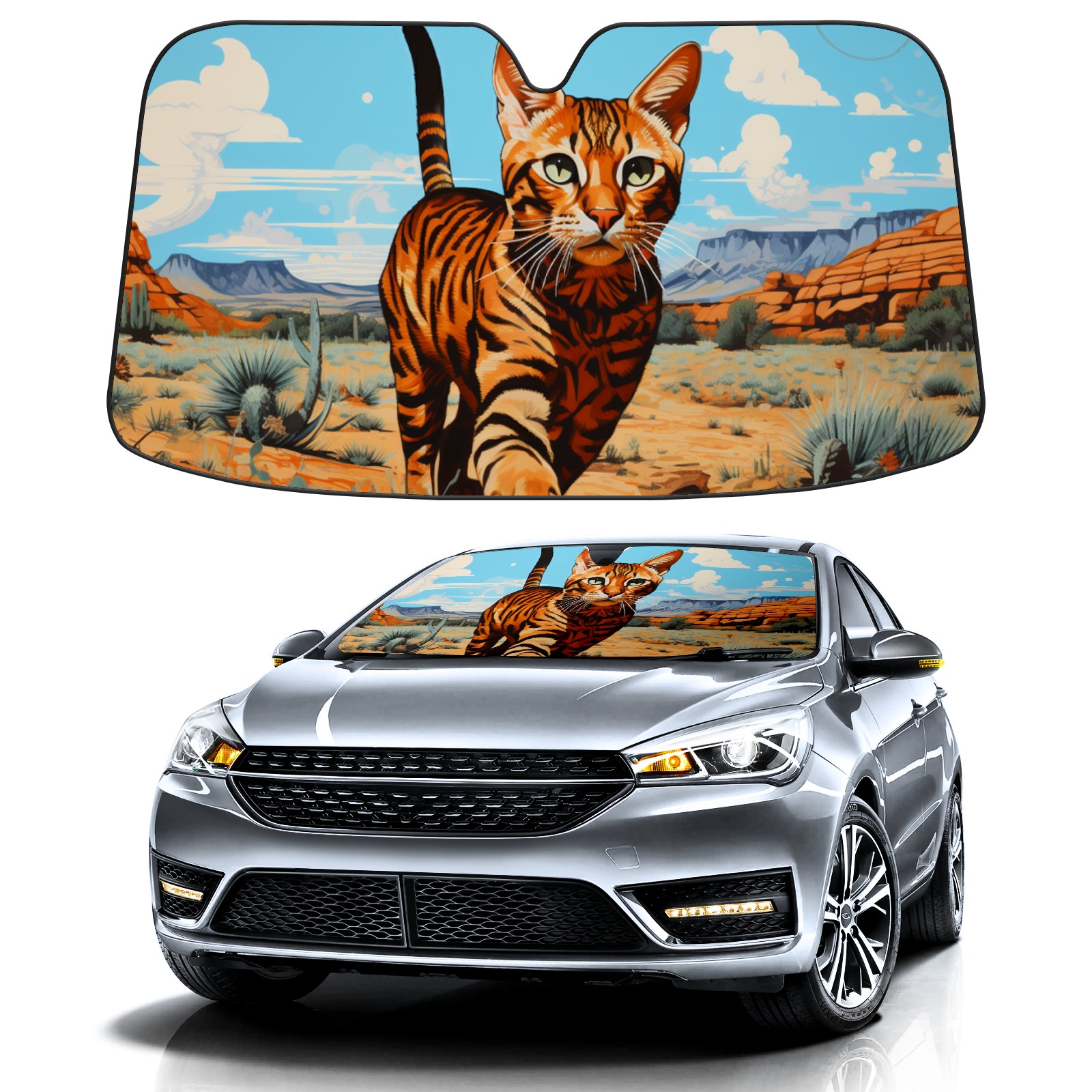 Car Windshield Sun Shade for Front Window Cat In Desert (1) Foldable Vehicle Windshield Car Sun Visor Covers Automotive Window Protector Car Privacy Sun Blocker