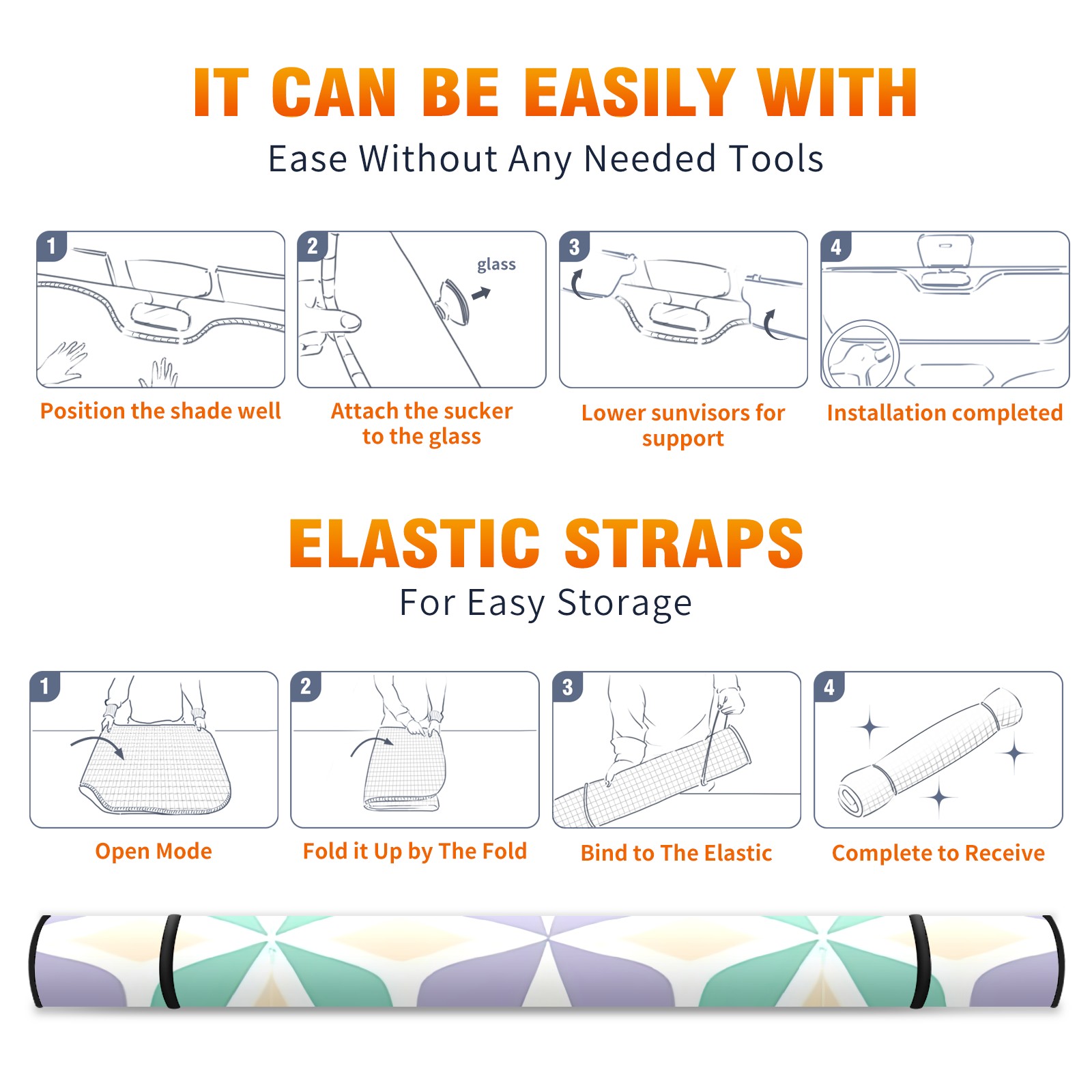 • </b>ZXIVGOQFR Foldable Premium Car Windshield Sunshade is your great solution to reduce your car’s interior temperature dramatically! This is definitely a must-have item for your summer travel! </b> <br> ●</b>Size: 63"L x 33.5"W </b> <br> ●</b>Blocking Uv Rays & Heat Insulation</b><br> Our vehicle sunshade provides effective UV, sun, and summer heat protection .Maintains dashboards by preventing fading and cracking <br> ●</b>Easy-To-Store Folding Design Makes Storage Convenient </b><br> ZXIVGOQFR car sunshades come with removable suction cups and elastic bands that you can install easily and quickly, and the removable suction cups will not leave any marks on your windows when removed. Within seconds, windshield visor can be installed and removed. When not in use,the front windshield can be easily and effectively placed on the door pocket or the dashboard, which is beautiful and does not take up space in the car.<br> <br> </b>PUT UP A 'PROTECTIVE UMBRELLA' FOR YOUR BELOVED CAR!</b>