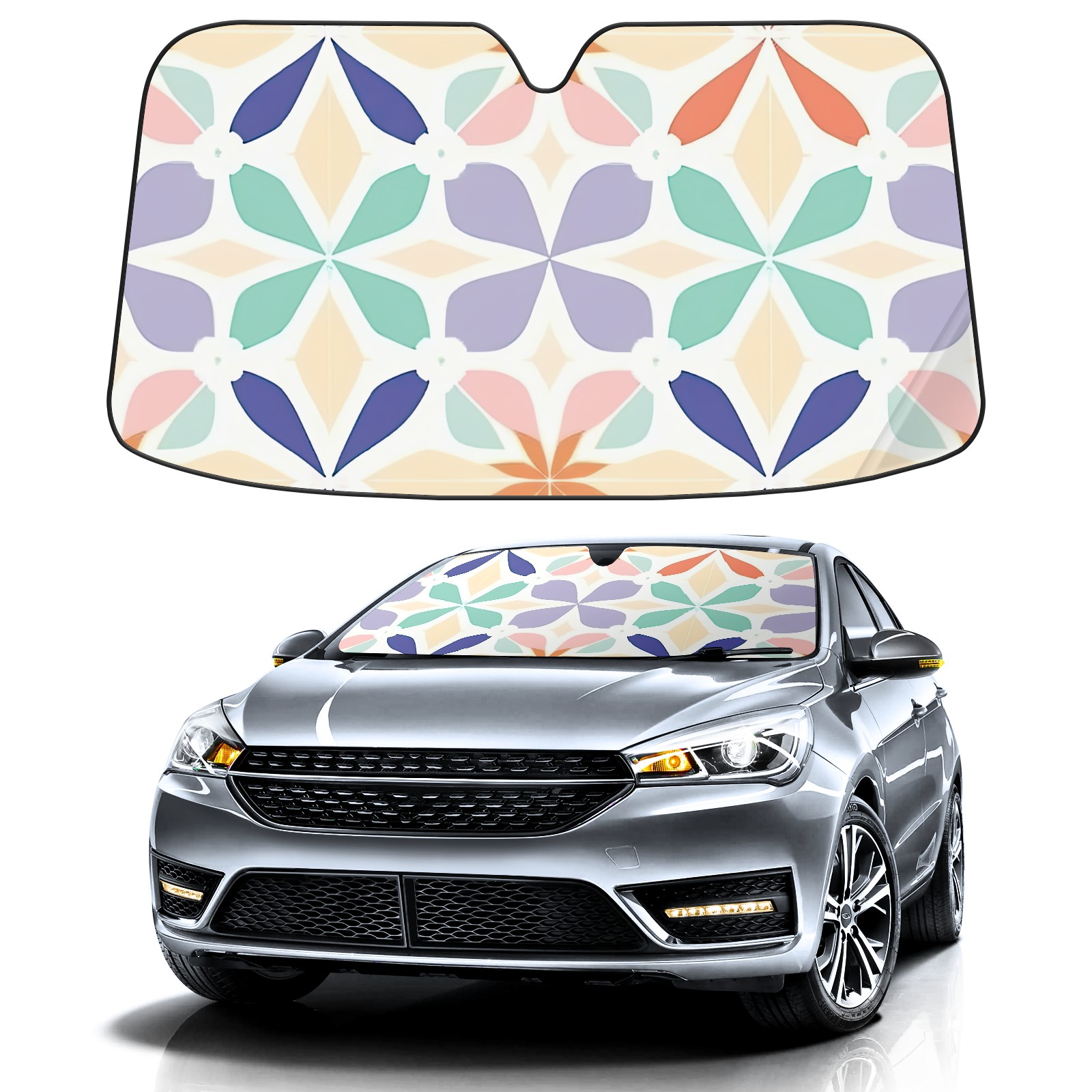Car Windshield Sun Shade for Front Window Abstract Geometric Figure Foldable Vehicle Windshield Car Sun Visor Covers Automotive Window Protector Car Privacy Sun Blocker