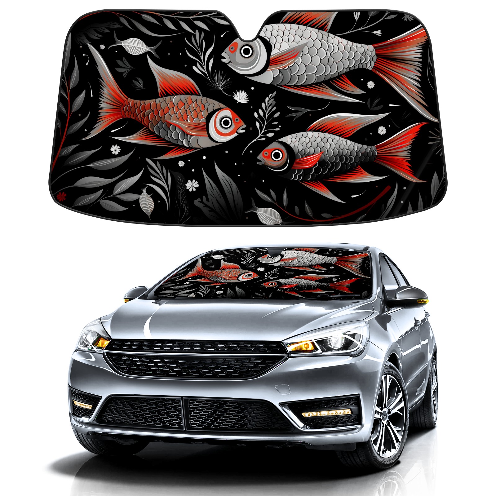 Car Windshield Sun Shade for Front Window Abstract Fish Foldable Vehicle Windshield Car Sun Visor Covers Automotive Window Protector Car Privacy Sun Blocker