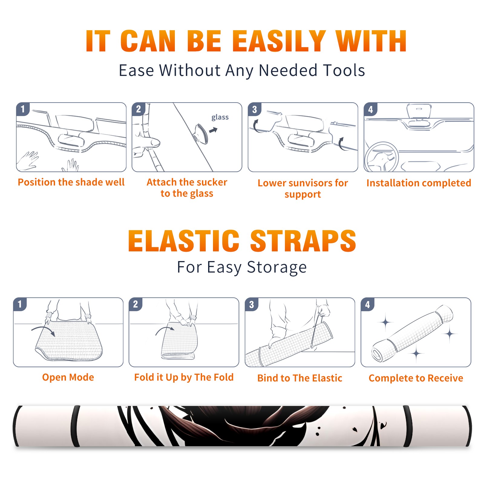 • </b>ZXIVGOQFR Foldable Premium Car Windshield Sunshade is your great solution to reduce your car’s interior temperature dramatically! This is definitely a must-have item for your summer travel! </b> <br> ●</b>Size: 63"L x 33.5"W </b> <br> ●</b>Blocking Uv Rays & Heat Insulation</b><br> Our vehicle sunshade provides effective UV, sun, and summer heat protection .Maintains dashboards by preventing fading and cracking <br> ●</b>Easy-To-Store Folding Design Makes Storage Convenient </b><br> ZXIVGOQFR car sunshades come with removable suction cups and elastic bands that you can install easily and quickly, and the removable suction cups will not leave any marks on your windows when removed. Within seconds, windshield visor can be installed and removed. When not in use,the front windshield can be easily and effectively placed on the door pocket or the dashboard, which is beautiful and does not take up space in the car.<br> <br> </b>PUT UP A 'PROTECTIVE UMBRELLA' FOR YOUR BELOVED CAR!</b>