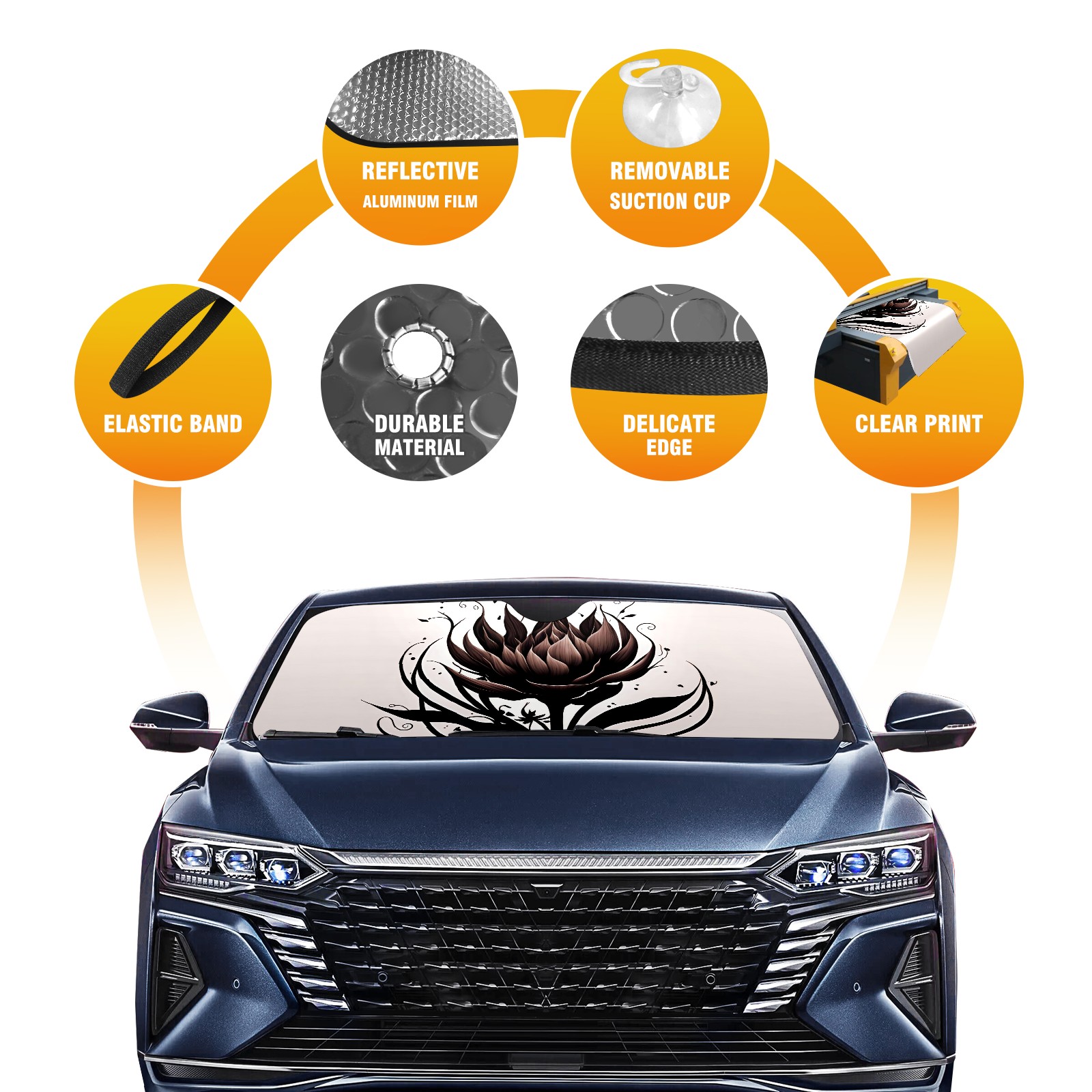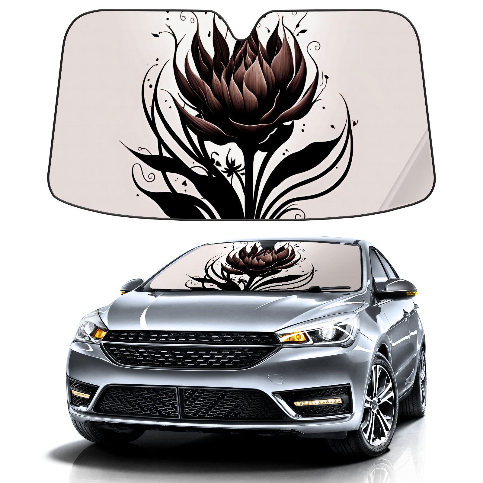 Car Windshield Sun Shade for Front Window Abstract Lotus Foldable Vehicle Windshield Car Sun Visor Covers Automotive Window Protector Car Privacy Sun Blocker