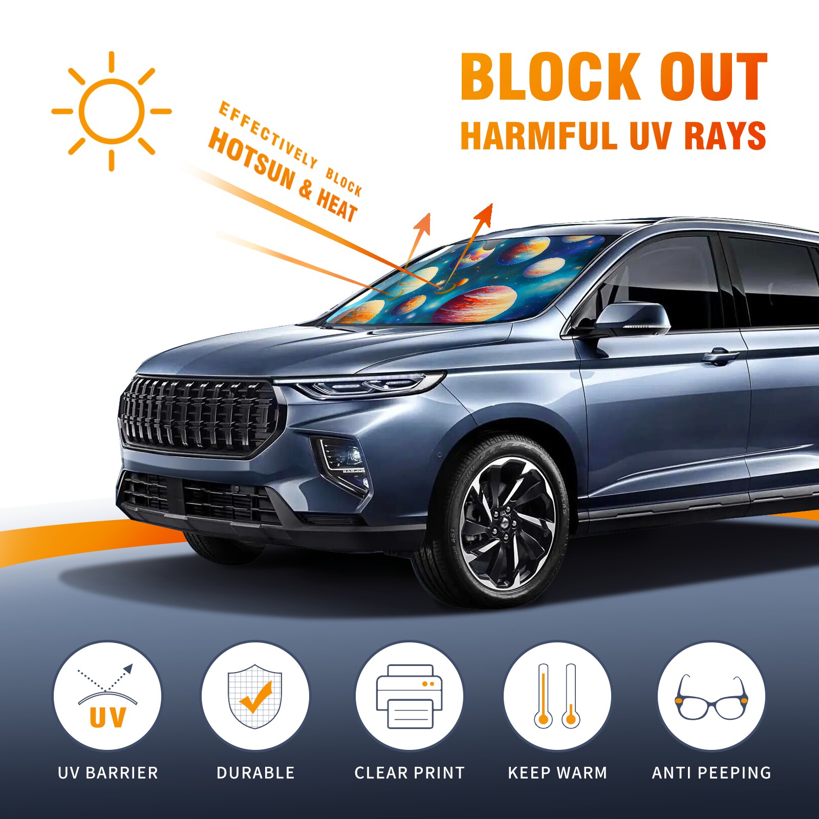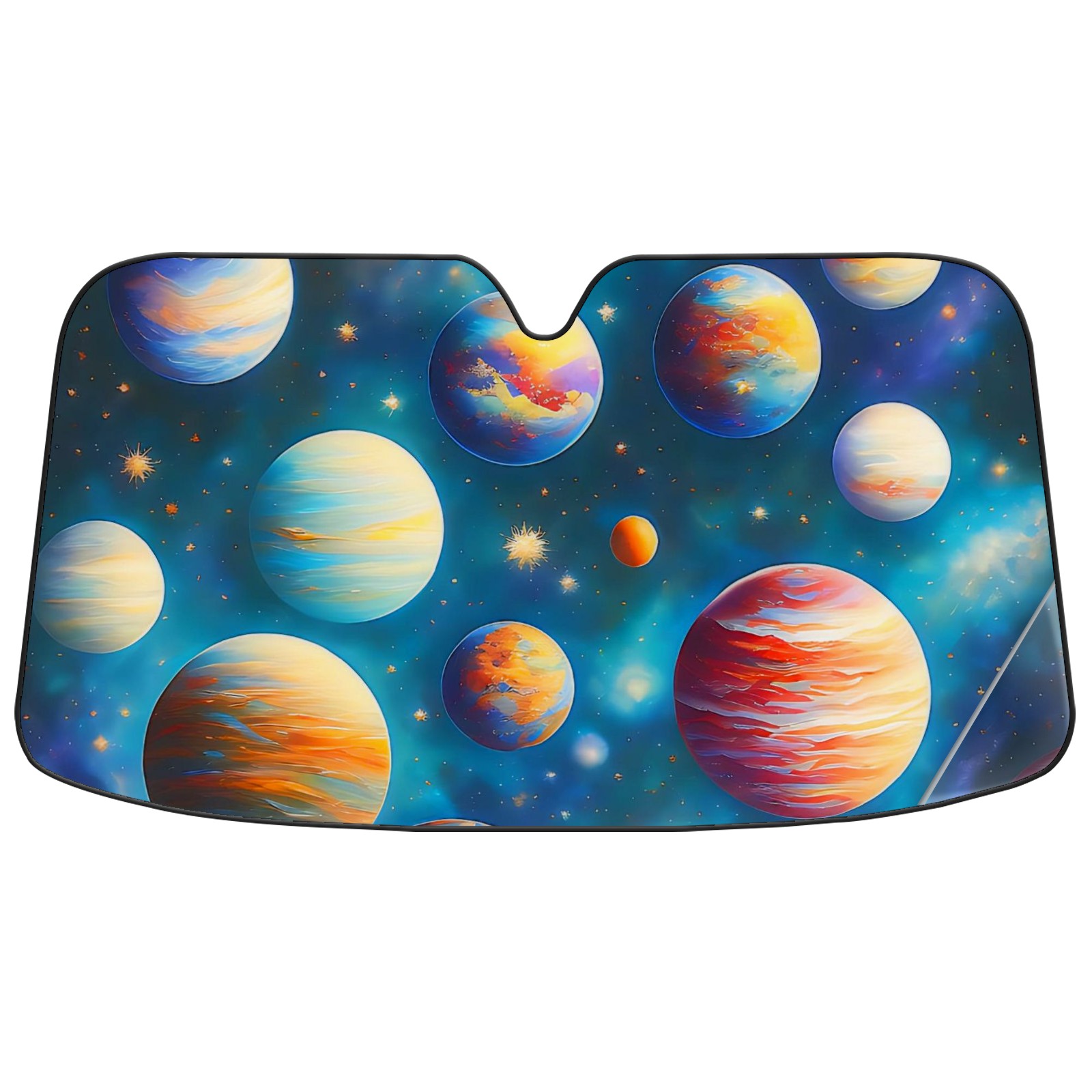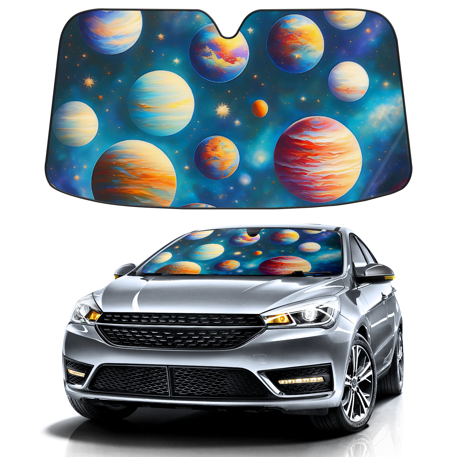 Car Windshield Sun Shade for Front Window Space Planet Foldable Vehicle Windshield Car Sun Visor Covers Automotive Window Protector Car Privacy Sun Blocker