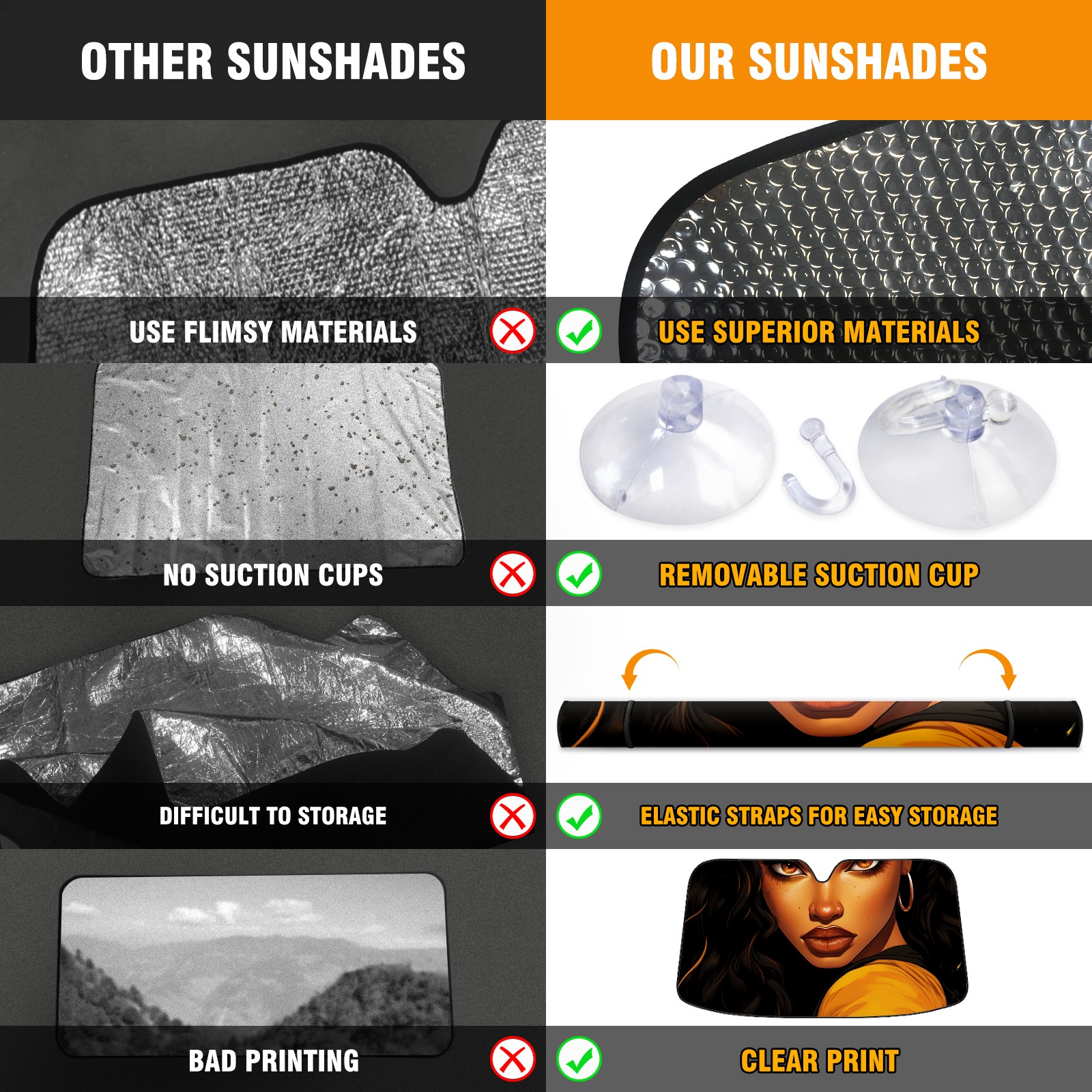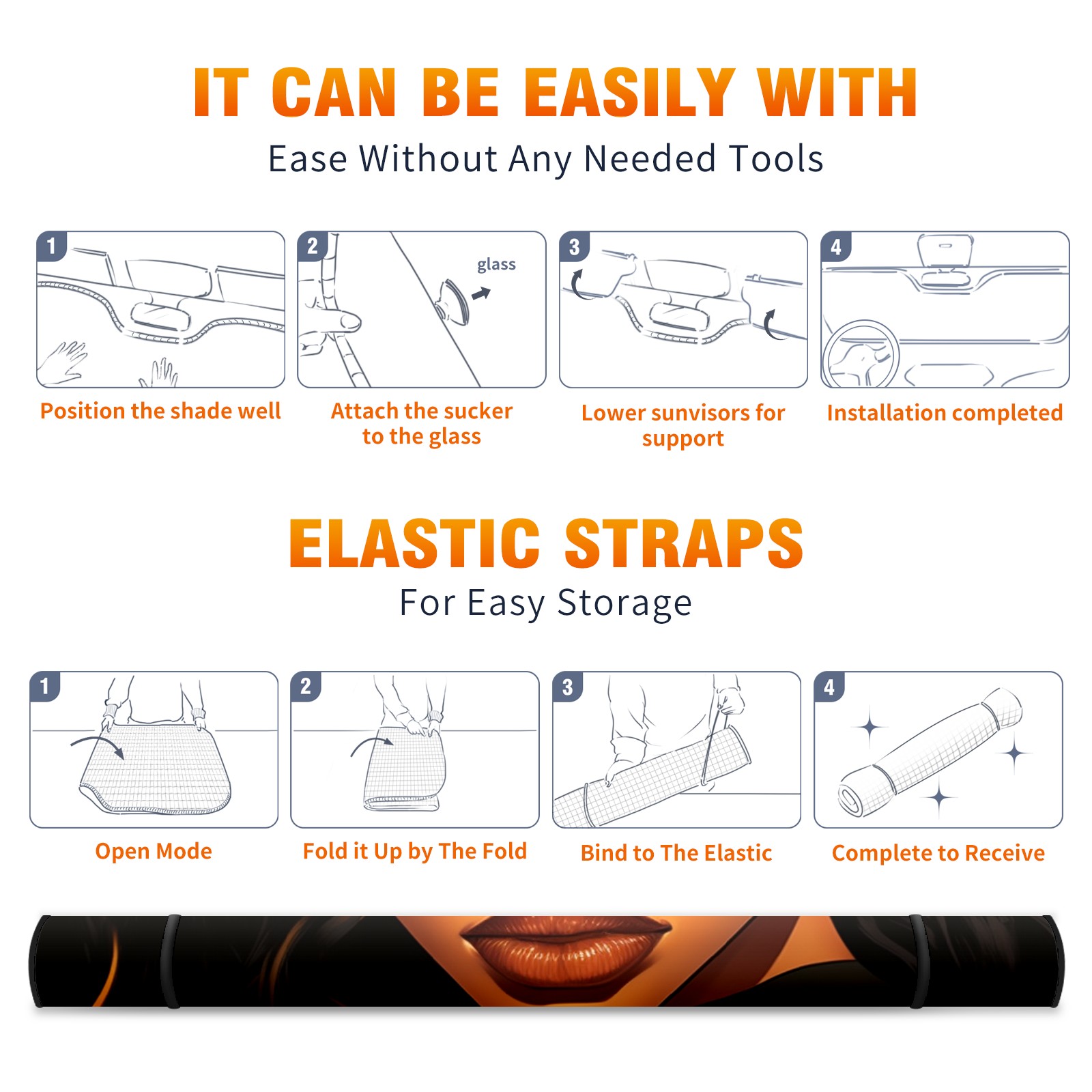 </b>ZXIVGOQFR Foldable Premium Car Windshield Sunshade is your great solution to reduce your car’s interior temperature dramatically! This is definitely a must-have item for your summer travel! </b> <br> ●</b>Size: 63"L x 33.5"W </b> <br> ●</b>Blocking Uv Rays & Heat Insulation</b><br> Our vehicle sunshade provides effective UV, sun, and summer heat protection .Maintains dashboards by preventing fading and cracking <br> ●</b>Easy-To-Store Folding Design Makes Storage Convenient </b><br> ZXIVGOQFR car sunshades come with removable suction cups and elastic bands that you can install easily and quickly, and the removable suction cups will not leave any marks on your windows when removed. Within seconds, windshield visor can be installed and removed. When not in use,the front windshield can be easily and effectively placed on the door pocket or the dashboard, which is beautiful and does not take up space in the car.<br> <br> </b>PUT UP A 'PROTECTIVE UMBRELLA' FOR YOUR BELOVED CAR!</b>
