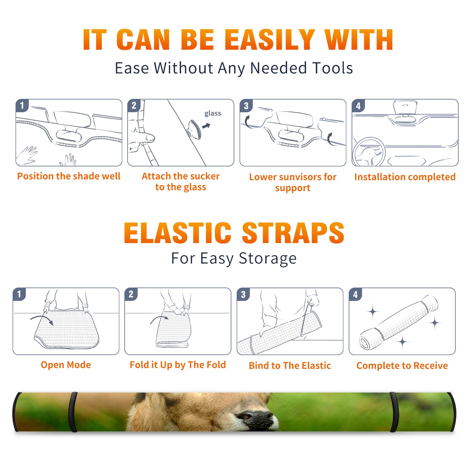 • </b>ZXIVGOQFR Foldable Premium Car Windshield Sunshade is your great solution to reduce your car’s interior temperature dramatically! This is definitely a must-have item for your summer travel! </b> <br> ●</b>Size: 63"L x 33.5"W </b> <br> ●</b>Blocking Uv Rays & Heat Insulation</b><br> Our vehicle sunshade provides effective UV, sun, and summer heat protection .Maintains dashboards by preventing fading and cracking <br> ●</b>Easy-To-Store Folding Design Makes Storage Convenient </b><br> ZXIVGOQFR car sunshades come with removable suction cups and elastic bands that you can install easily and quickly, and the removable suction cups will not leave any marks on your windows when removed. Within seconds, windshield visor can be installed and removed. When not in use,the front windshield can be easily and effectively placed on the door pocket or the dashboard, which is beautiful and does not take up space in the car.<br> <br> </b>PUT UP A 'PROTECTIVE UMBRELLA' FOR YOUR BELOVED CAR!</b>