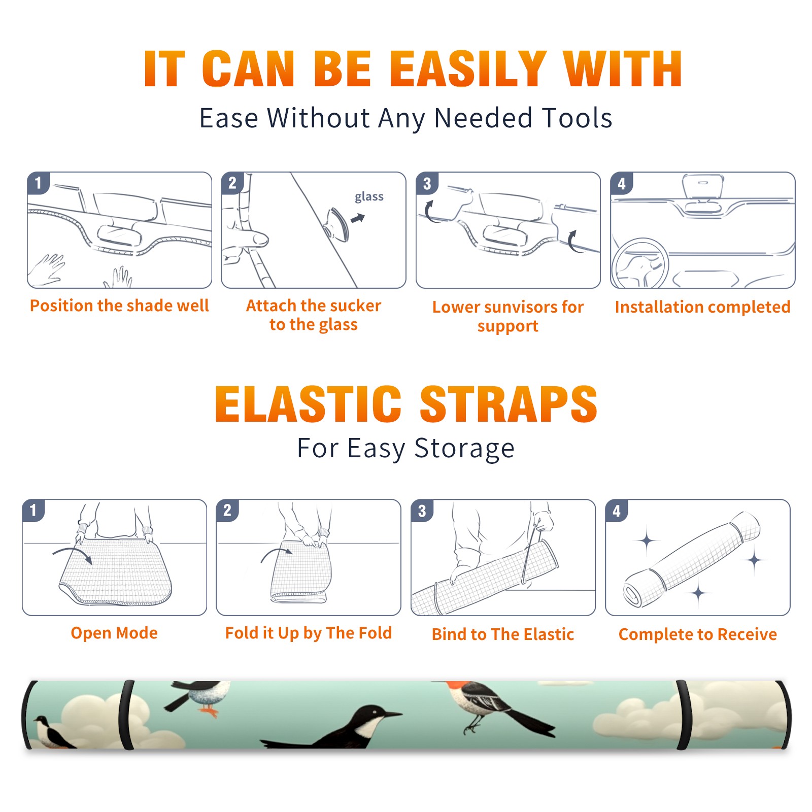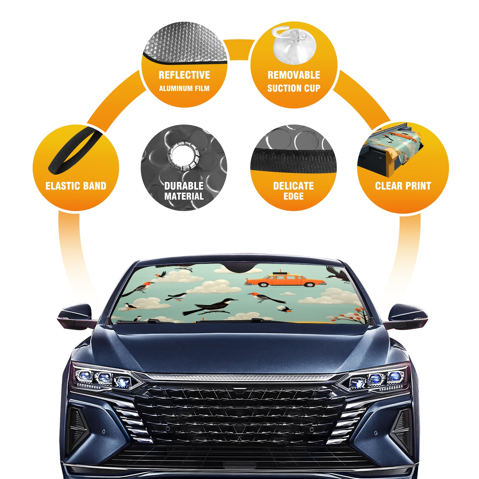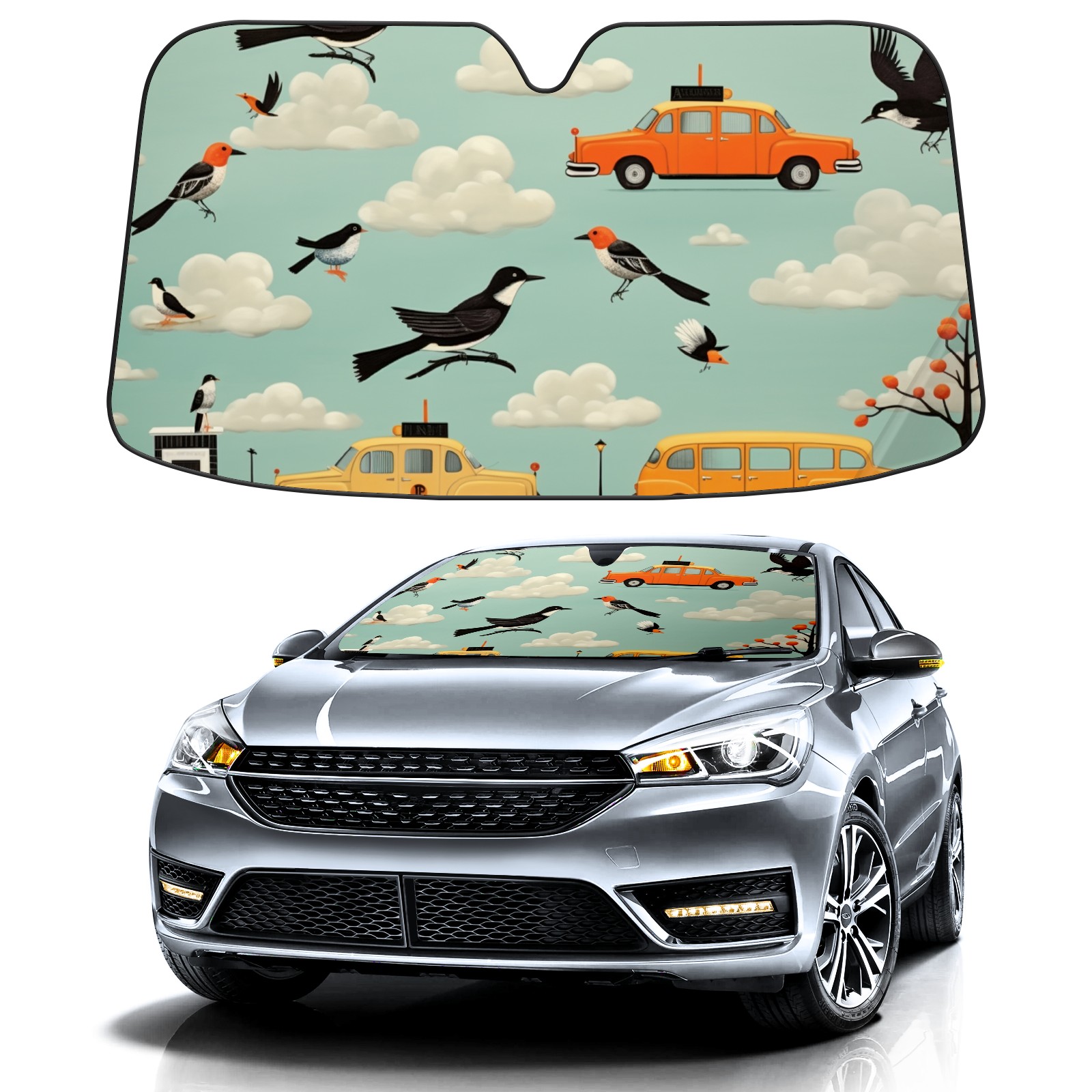 Car Windshield Sun Shade for Front Window Taxi Bird Foldable Vehicle Windshield Car Sun Visor Covers Automotive Window Protector Car Privacy Sun Blocker