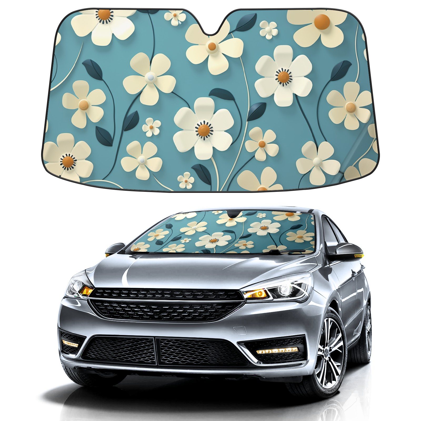 Car Windshield Sun Shade for Front Window Shaped Canvas Floral Foldable Vehicle Windshield Car Sun Visor Covers Automotive Window Protector Car Privacy Sun Blocker