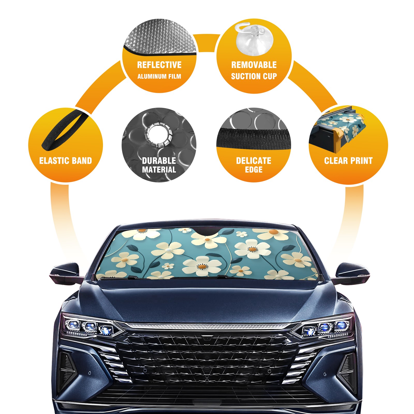 </b>ZXIVGOQFR Foldable Premium Car Windshield Sunshade is your great solution to reduce your car’s interior temperature dramatically! This is definitely a must-have item for your summer travel! </b> <br> ●</b>Size: 63"L x 33.5"W </b> <br> ●</b>Blocking Uv Rays & Heat Insulation</b><br> Our vehicle sunshade provides effective UV, sun, and summer heat protection .Maintains dashboards by preventing fading and cracking <br> ●</b>Easy-To-Store Folding Design Makes Storage Convenient </b><br> ZXIVGOQFR car sunshades come with removable suction cups and elastic bands that you can install easily and quickly, and the removable suction cups will not leave any marks on your windows when removed. Within seconds, windshield visor can be installed and removed. When not in use,the front windshield can be easily and effectively placed on the door pocket or the dashboard, which is beautiful and does not take up space in the car.<br> <br> </b>PUT UP A 'PROTECTIVE UMBRELLA' FOR YOUR BELOVED CAR!</b>