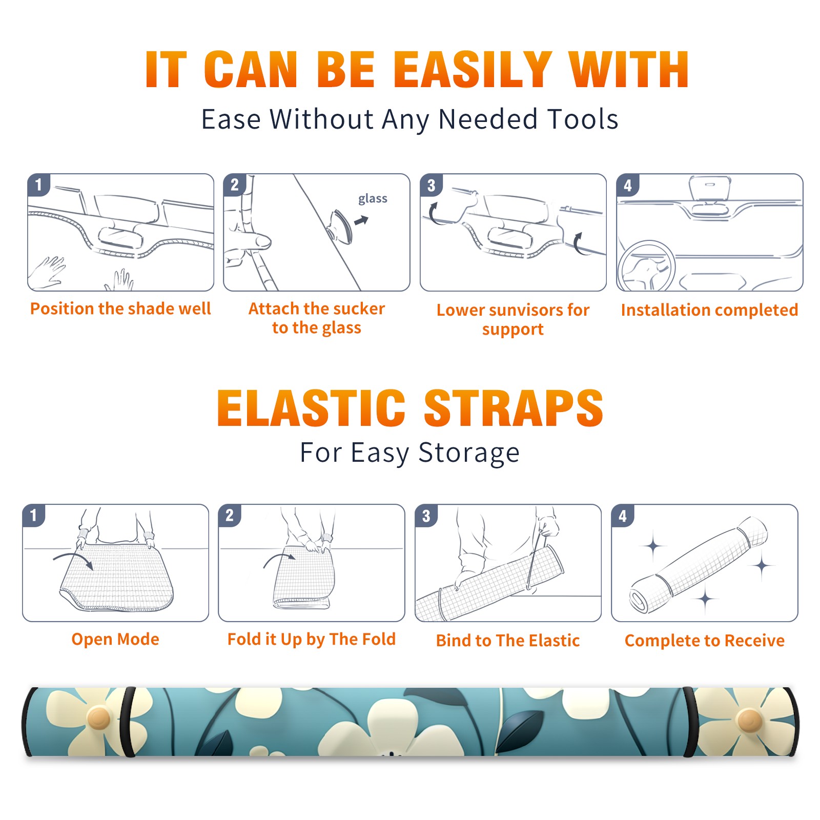 • </b>ZXIVGOQFR Foldable Premium Car Windshield Sunshade is your great solution to reduce your car’s interior temperature dramatically! This is definitely a must-have item for your summer travel! </b> <br> ●</b>Size: 63"L x 33.5"W </b> <br> ●</b>Blocking Uv Rays & Heat Insulation</b><br> Our vehicle sunshade provides effective UV, sun, and summer heat protection .Maintains dashboards by preventing fading and cracking <br> ●</b>Easy-To-Store Folding Design Makes Storage Convenient </b><br> ZXIVGOQFR car sunshades come with removable suction cups and elastic bands that you can install easily and quickly, and the removable suction cups will not leave any marks on your windows when removed. Within seconds, windshield visor can be installed and removed. When not in use,the front windshield can be easily and effectively placed on the door pocket or the dashboard, which is beautiful and does not take up space in the car.<br> <br> </b>PUT UP A 'PROTECTIVE UMBRELLA' FOR YOUR BELOVED CAR!</b>