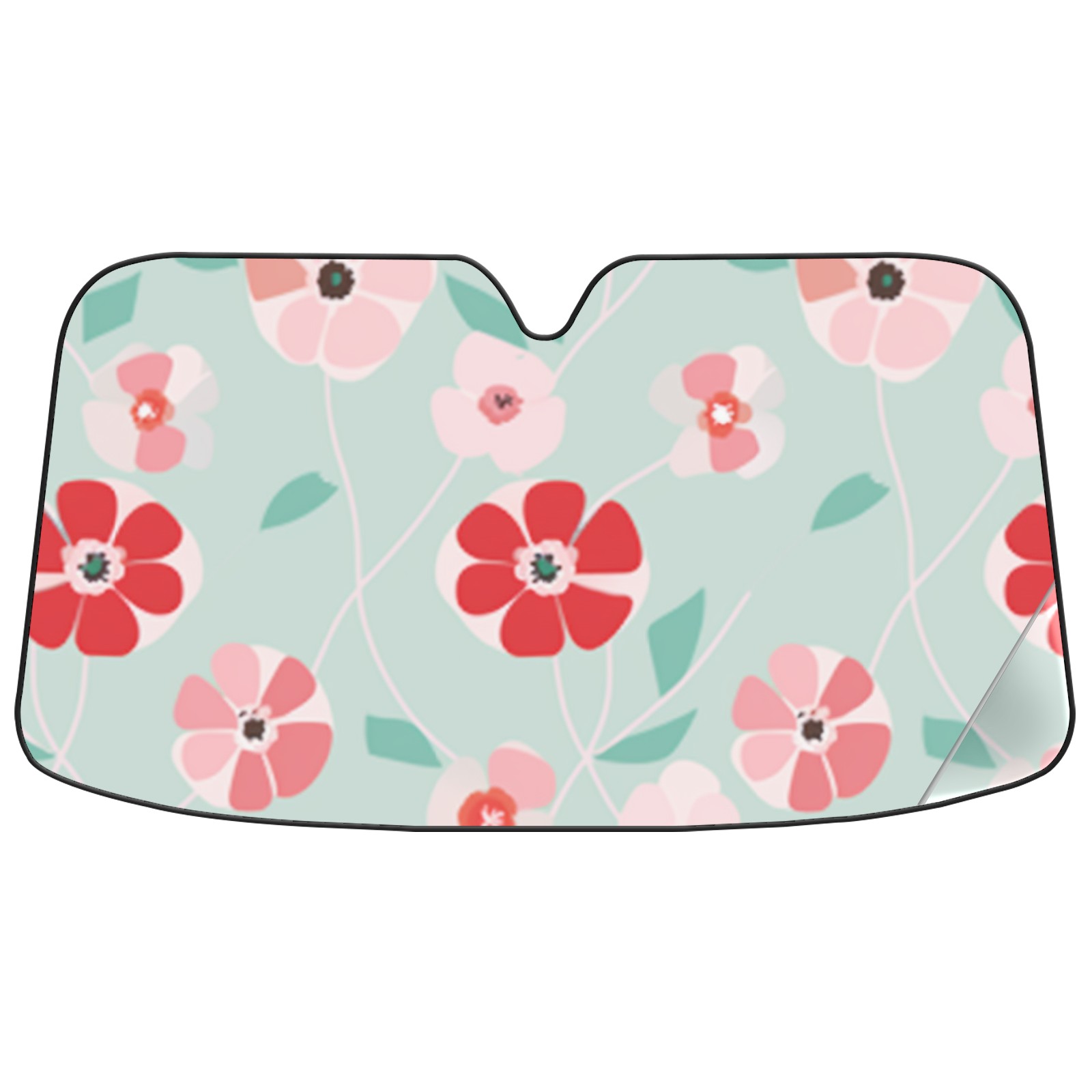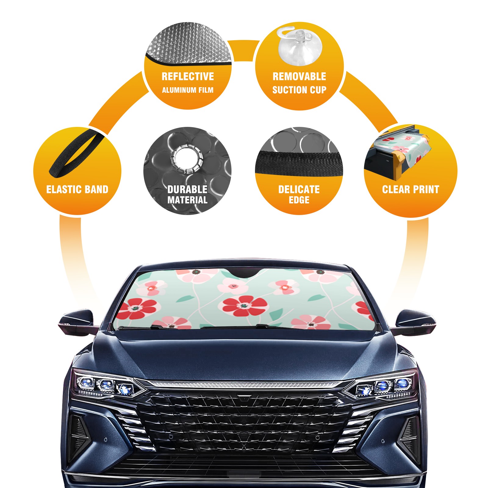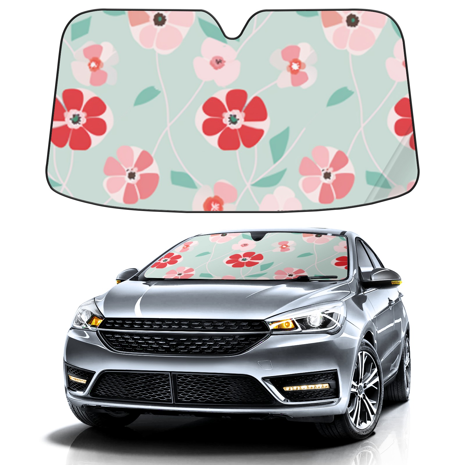 Car Windshield Sun Shade for Front Window Ligh Red Floral Foldable Vehicle Windshield Car Sun Visor Covers Automotive Window Protector Car Privacy Sun Blocker