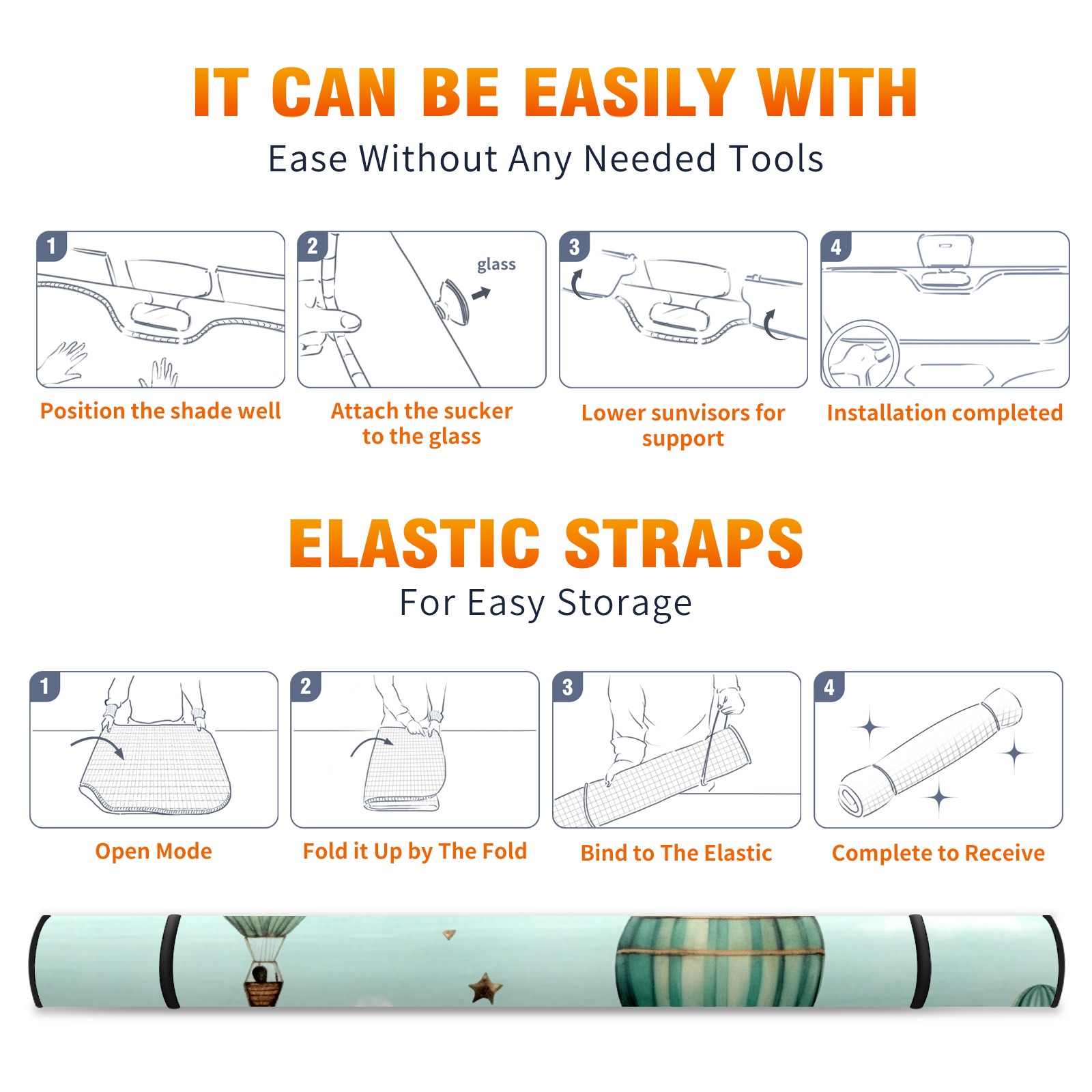 </b>ZXIVGOQFR Foldable Premium Car Windshield Sunshade is your great solution to reduce your car’s interior temperature dramatically! This is definitely a must-have item for your summer travel! </b> <br> ●</b>Size: 63"L x 33.5"W </b> <br> ●</b>Blocking Uv Rays & Heat Insulation</b><br> Our vehicle sunshade provides effective UV, sun, and summer heat protection .Maintains dashboards by preventing fading and cracking <br> ●</b>Easy-To-Store Folding Design Makes Storage Convenient </b><br> ZXIVGOQFR car sunshades come with removable suction cups and elastic bands that you can install easily and quickly, and the removable suction cups will not leave any marks on your windows when removed. Within seconds, windshield visor can be installed and removed. When not in use,the front windshield can be easily and effectively placed on the door pocket or the dashboard, which is beautiful and does not take up space in the car.<br> <br> </b>PUT UP A 'PROTECTIVE UMBRELLA' FOR YOUR BELOVED CAR!</b>