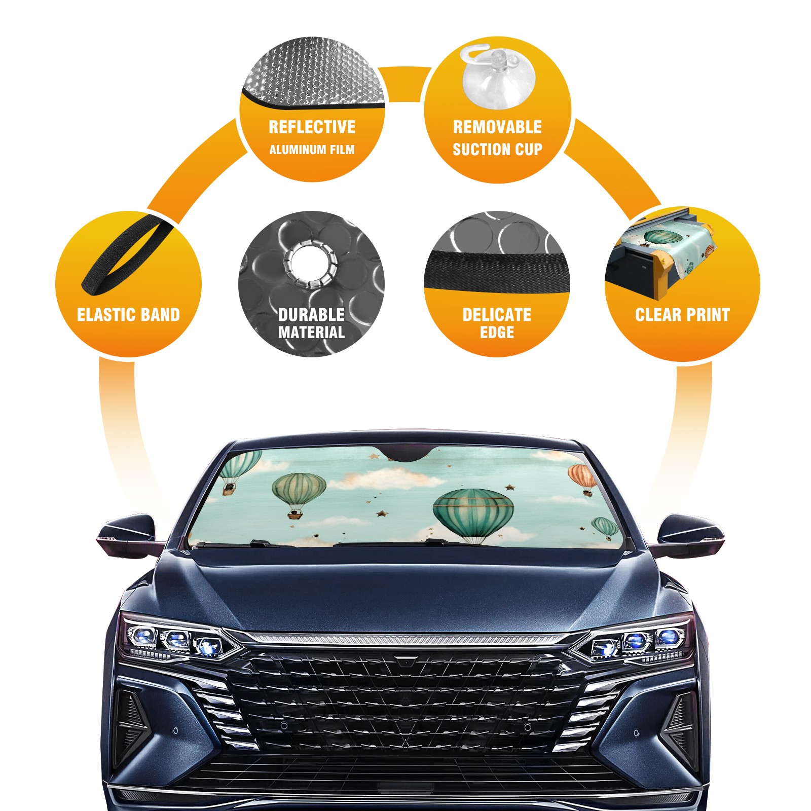 Car Windshield Sun Shade for Front Window Hot Air Balloons Foldable Vehicle Windshield Car Sun Visor Covers Automotive Window Protector Car Privacy Sun Blocker