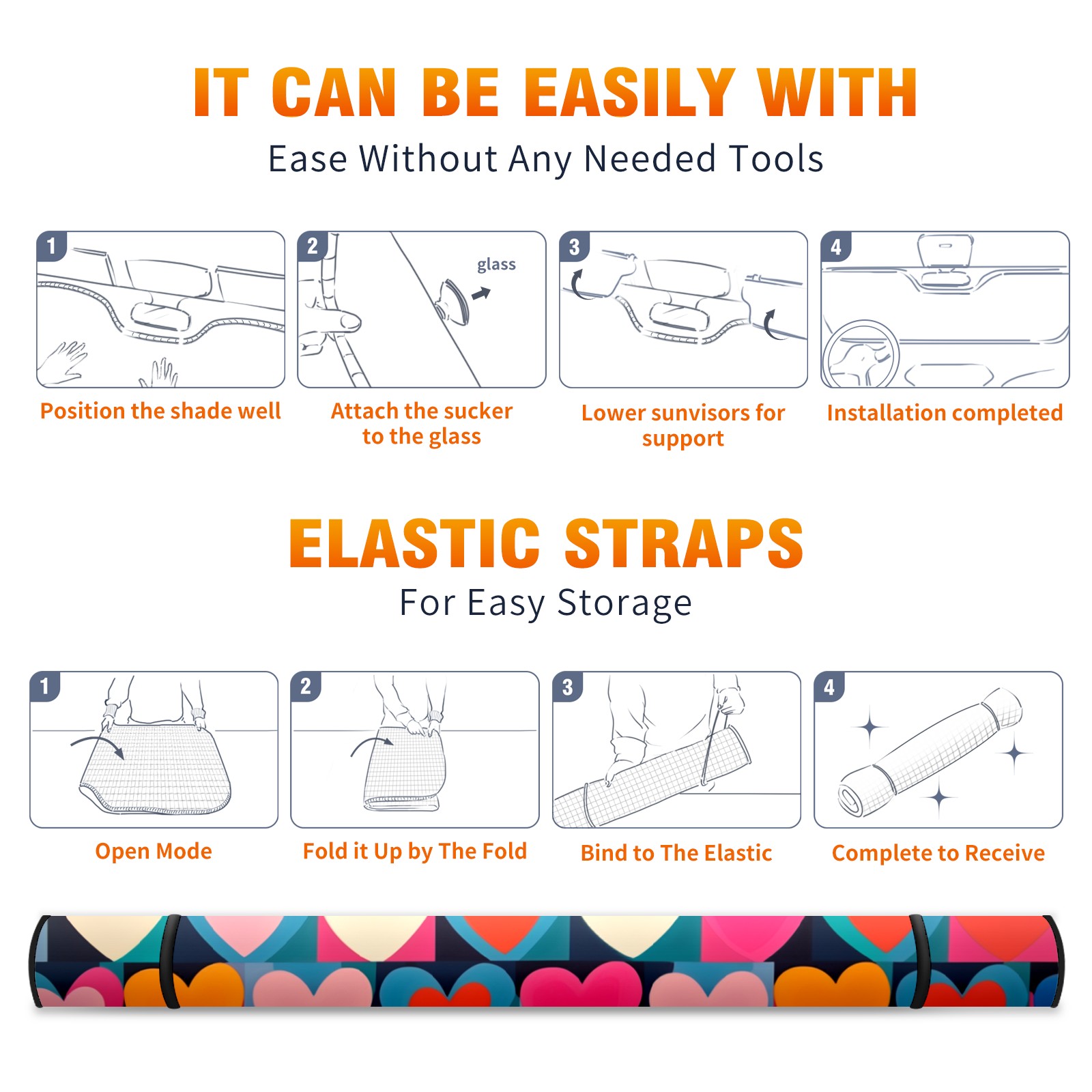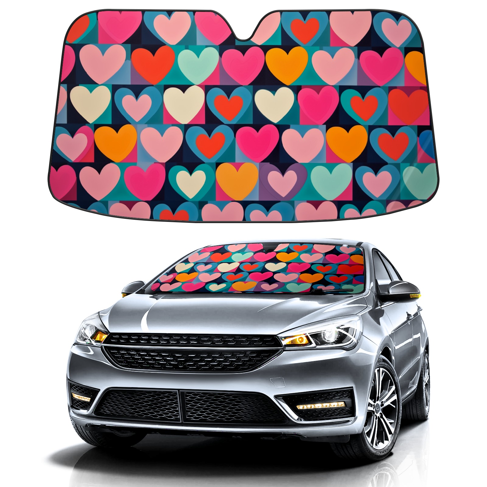 Car Windshield Sun Shade for Front Window Hearts Foldable Vehicle Windshield Car Sun Visor Covers Automotive Window Protector Car Privacy Sun Blocker