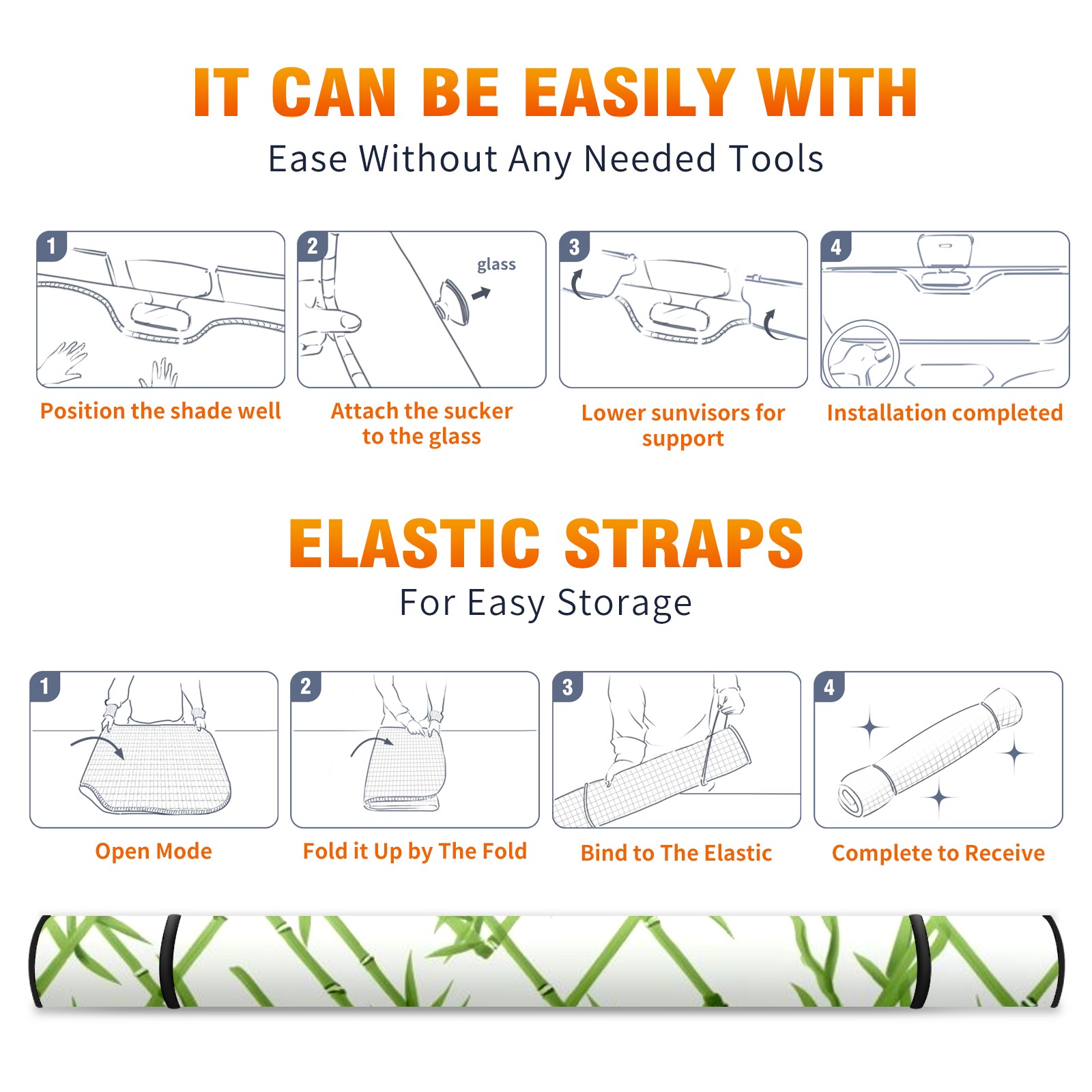 </b>ZXIVGOQFR Foldable Premium Car Windshield Sunshade is your great solution to reduce your car’s interior temperature dramatically! This is definitely a must-have item for your summer travel! </b> <br> ●</b>Size: 63"L x 33.5"W </b> <br> ●</b>Blocking Uv Rays & Heat Insulation</b><br> Our vehicle sunshade provides effective UV, sun, and summer heat protection .Maintains dashboards by preventing fading and cracking <br> ●</b>Easy-To-Store Folding Design Makes Storage Convenient </b><br> ZXIVGOQFR car sunshades come with removable suction cups and elastic bands that you can install easily and quickly, and the removable suction cups will not leave any marks on your windows when removed. Within seconds, windshield visor can be installed and removed. When not in use,the front windshield can be easily and effectively placed on the door pocket or the dashboard, which is beautiful and does not take up space in the car.<br> <br> </b>PUT UP A 'PROTECTIVE UMBRELLA' FOR YOUR BELOVED CAR!</b>