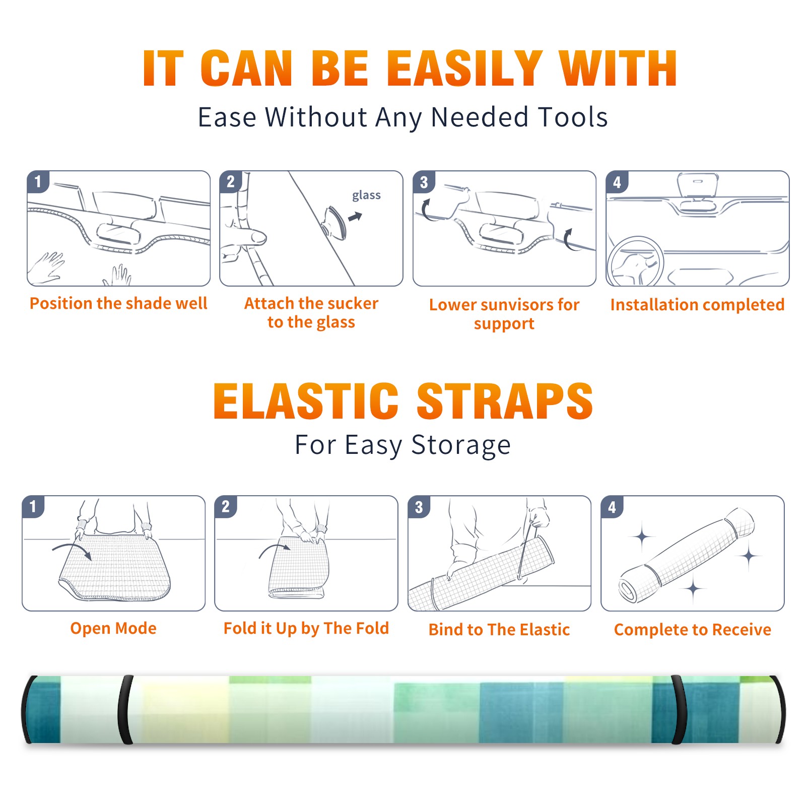 • </b>ZXIVGOQFR Foldable Premium Car Windshield Sunshade is your great solution to reduce your car’s interior temperature dramatically! This is definitely a must-have item for your summer travel! </b> <br> ●</b>Size: 63"L x 33.5"W </b> <br> ●</b>Blocking Uv Rays & Heat Insulation</b><br> Our vehicle sunshade provides effective UV, sun, and summer heat protection .Maintains dashboards by preventing fading and cracking <br> ●</b>Easy-To-Store Folding Design Makes Storage Convenient </b><br> ZXIVGOQFR car sunshades come with removable suction cups and elastic bands that you can install easily and quickly, and the removable suction cups will not leave any marks on your windows when removed. Within seconds, windshield visor can be installed and removed. When not in use,the front windshield can be easily and effectively placed on the door pocket or the dashboard, which is beautiful and does not take up space in the car.<br> <br> </b>PUT UP A 'PROTECTIVE UMBRELLA' FOR YOUR BELOVED CAR!</b>