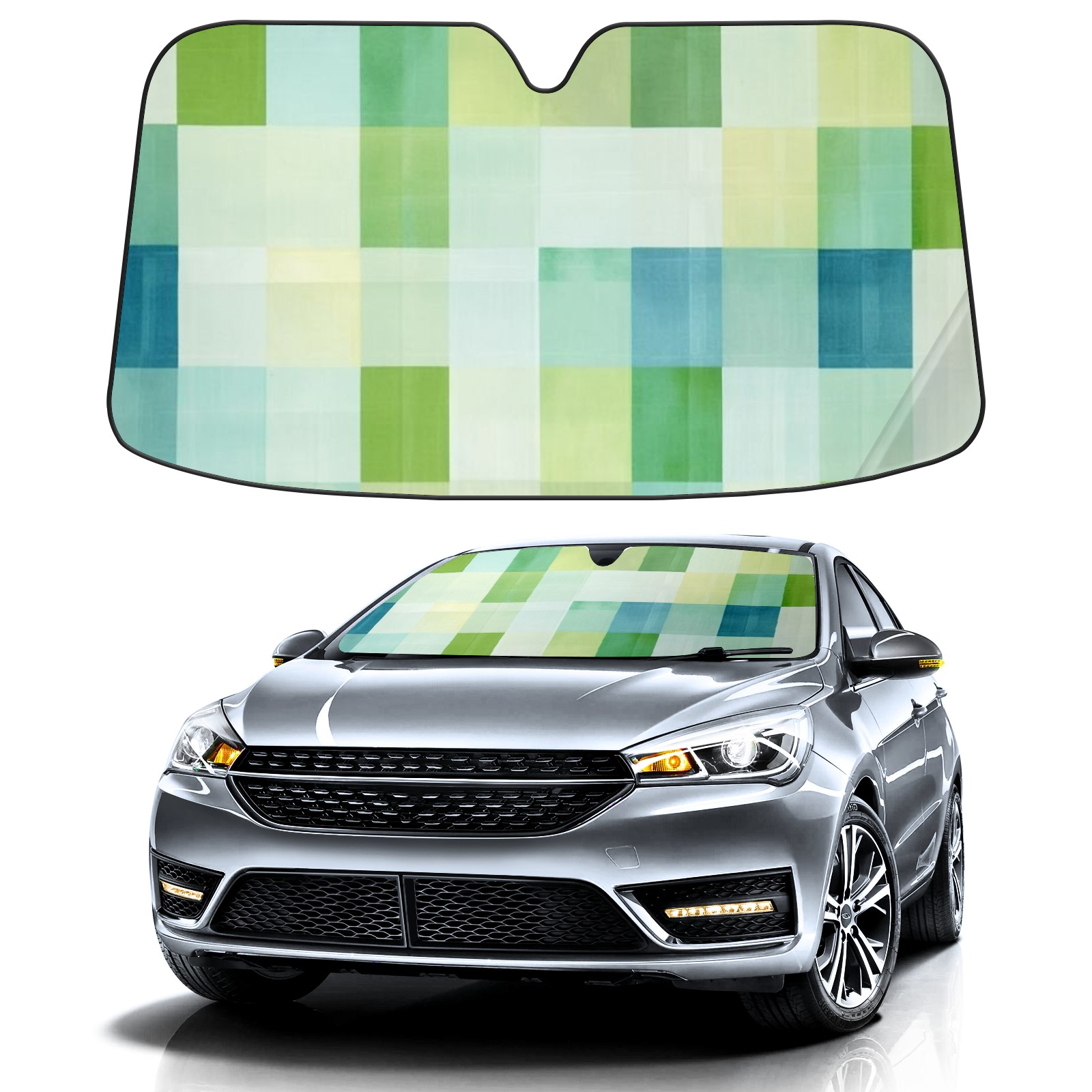 Car Windshield Sun Shade for Front Window Green And Blue Blocks.webp Foldable Vehicle Windshield Car Sun Visor Covers Automotive Window Protector Car Privacy Sun Blocker