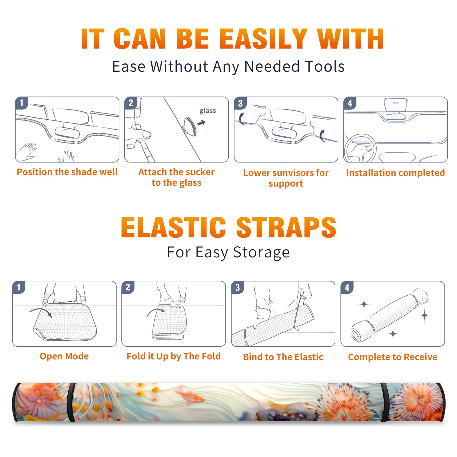 • </b>ZXIVGOQFR Foldable Premium Car Windshield Sunshade is your great solution to reduce your car’s interior temperature dramatically! This is definitely a must-have item for your summer travel! </b> <br> ●</b>Size: 63"L x 33.5"W </b> <br> ●</b>Blocking Uv Rays & Heat Insulation</b><br> Our vehicle sunshade provides effective UV, sun, and summer heat protection .Maintains dashboards by preventing fading and cracking <br> ●</b>Easy-To-Store Folding Design Makes Storage Convenient </b><br> ZXIVGOQFR car sunshades come with removable suction cups and elastic bands that you can install easily and quickly, and the removable suction cups will not leave any marks on your windows when removed. Within seconds, windshield visor can be installed and removed. When not in use,the front windshield can be easily and effectively placed on the door pocket or the dashboard, which is beautiful and does not take up space in the car.<br> <br> </b>PUT UP A 'PROTECTIVE UMBRELLA' FOR YOUR BELOVED CAR!</b>
