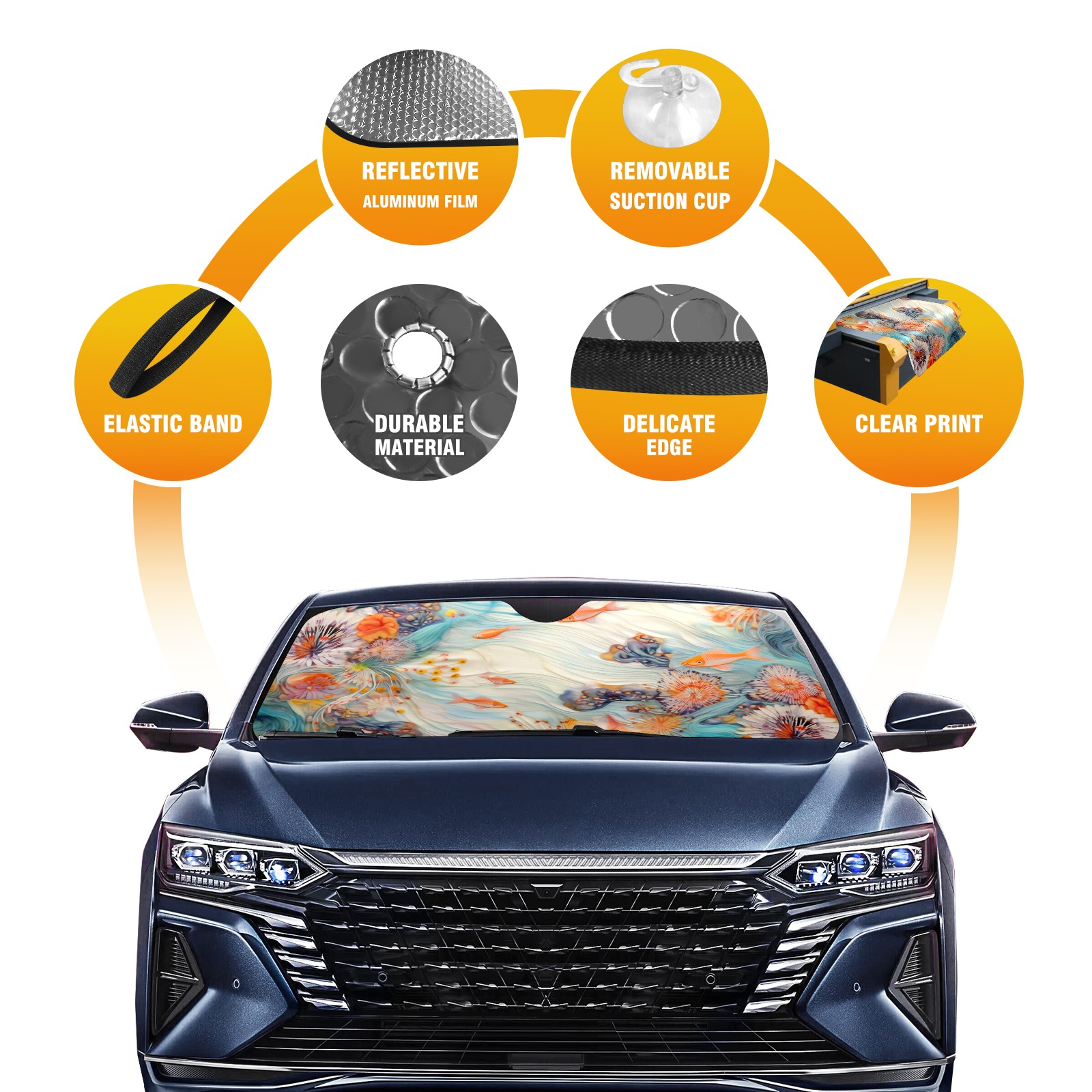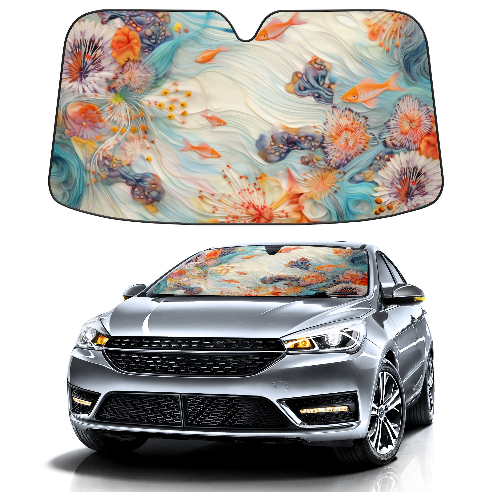 Car Windshield Sun Shade for Front Window Fish Swimming Foldable Vehicle Windshield Car Sun Visor Covers Automotive Window Protector Car Privacy Sun Blocker