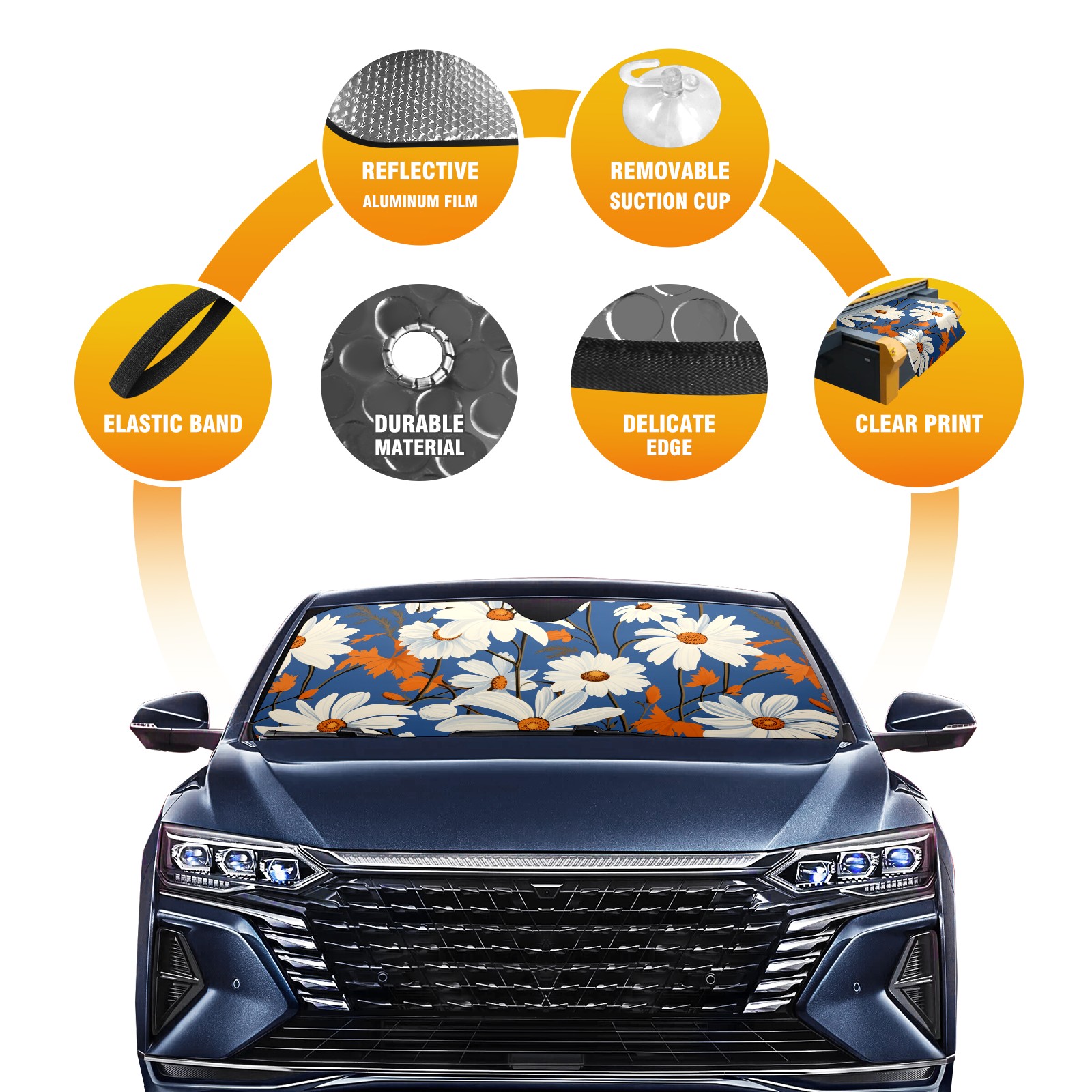 Car Windshield Sun Shade for Front Window Daisies Foldable Vehicle Windshield Car Sun Visor Covers Automotive Window Protector Car Privacy Sun Blocker