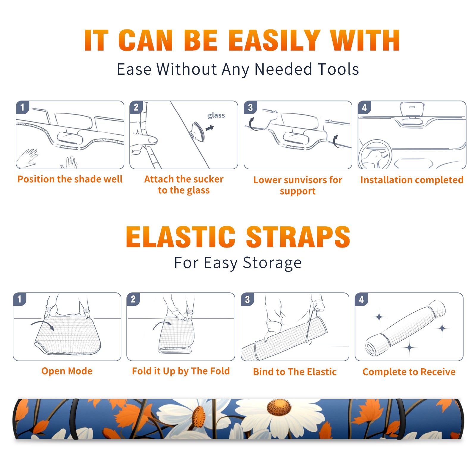 • </b>ZXIVGOQFR Foldable Premium Car Windshield Sunshade is your great solution to reduce your car’s interior temperature dramatically! This is definitely a must-have item for your summer travel! </b> <br> ●</b>Size: 63"L x 33.5"W </b> <br> ●</b>Blocking Uv Rays & Heat Insulation</b><br> Our vehicle sunshade provides effective UV, sun, and summer heat protection .Maintains dashboards by preventing fading and cracking <br> ●</b>Easy-To-Store Folding Design Makes Storage Convenient </b><br> ZXIVGOQFR car sunshades come with removable suction cups and elastic bands that you can install easily and quickly, and the removable suction cups will not leave any marks on your windows when removed. Within seconds, windshield visor can be installed and removed. When not in use,the front windshield can be easily and effectively placed on the door pocket or the dashboard, which is beautiful and does not take up space in the car.<br> <br> </b>PUT UP A 'PROTECTIVE UMBRELLA' FOR YOUR BELOVED CAR!</b>