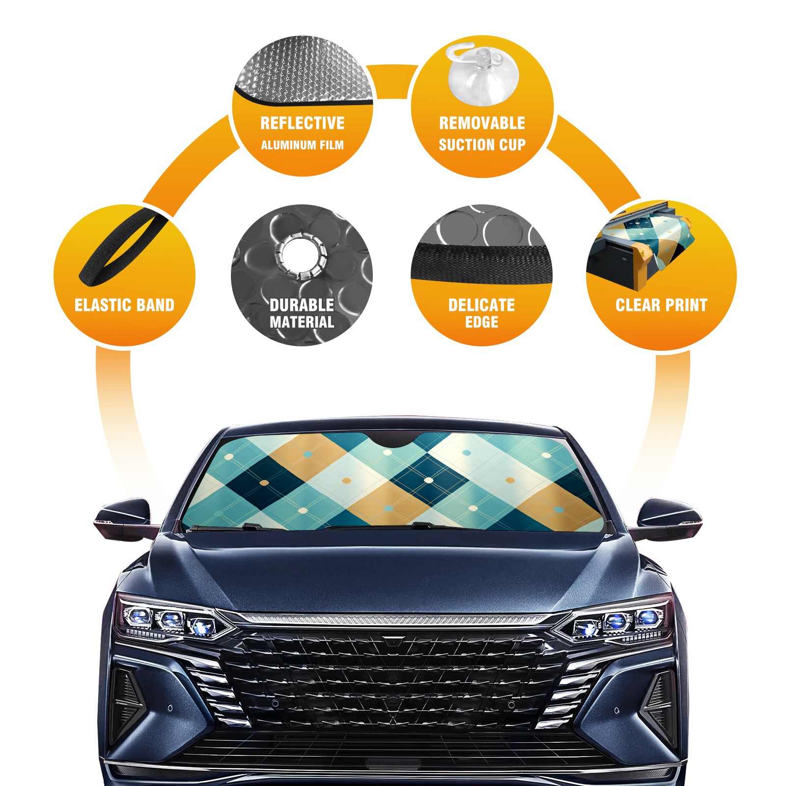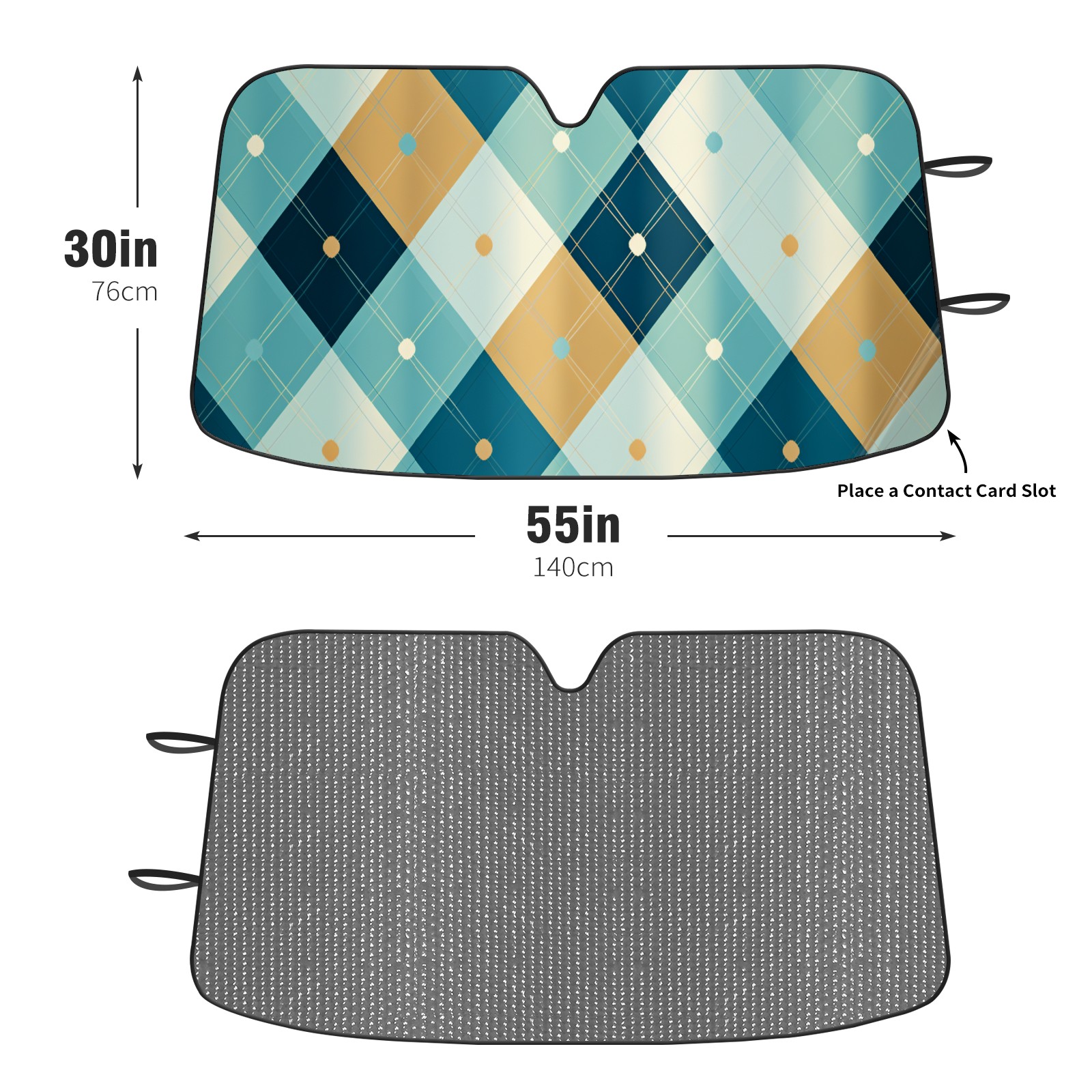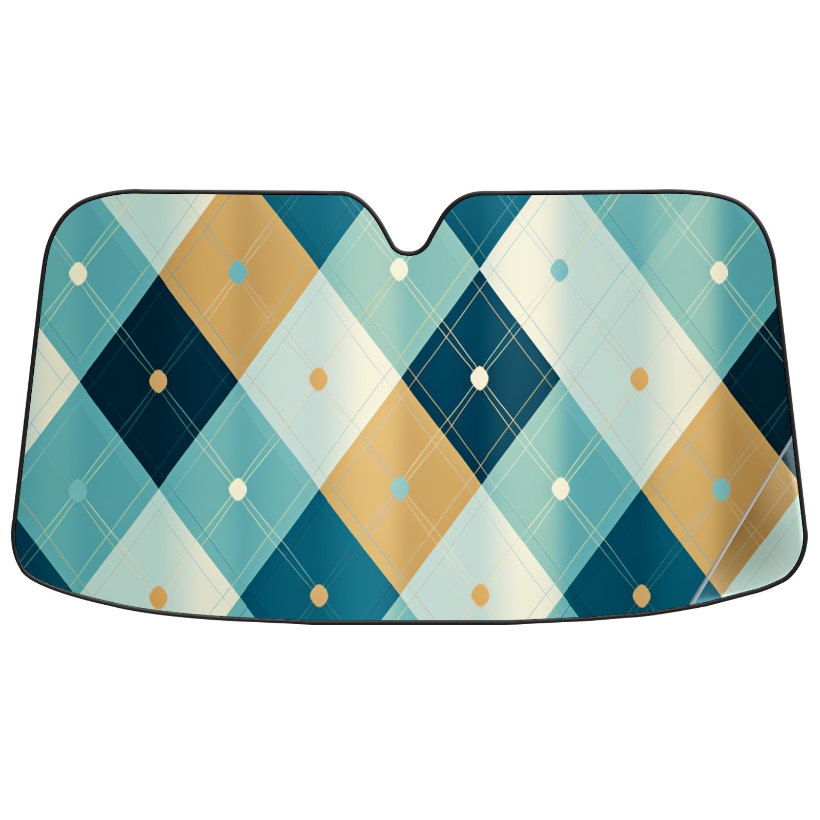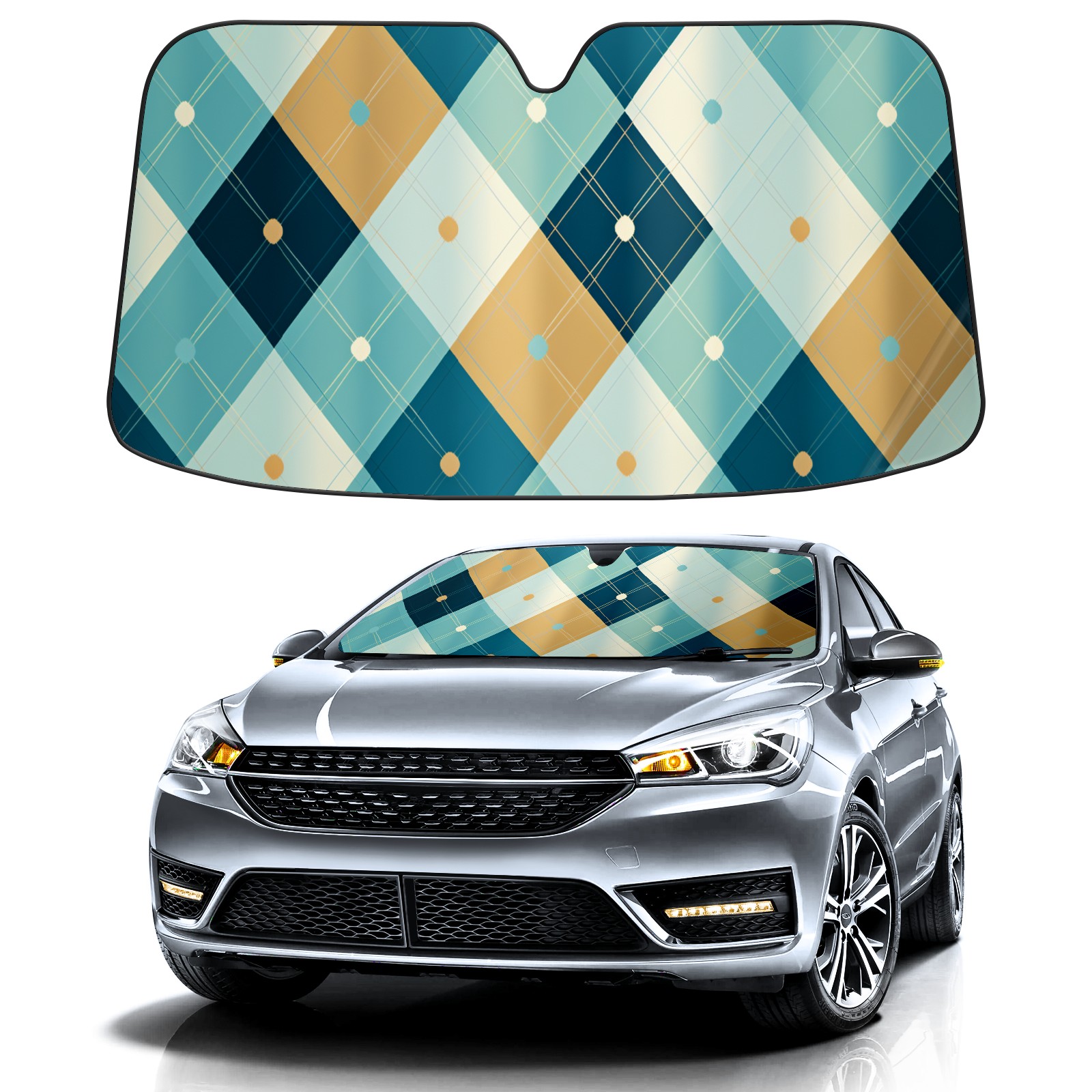Car Windshield Sun Shade for Front Window Blue Argyle Foldable Vehicle Windshield Car Sun Visor Covers Automotive Window Protector Car Privacy Sun Blocker