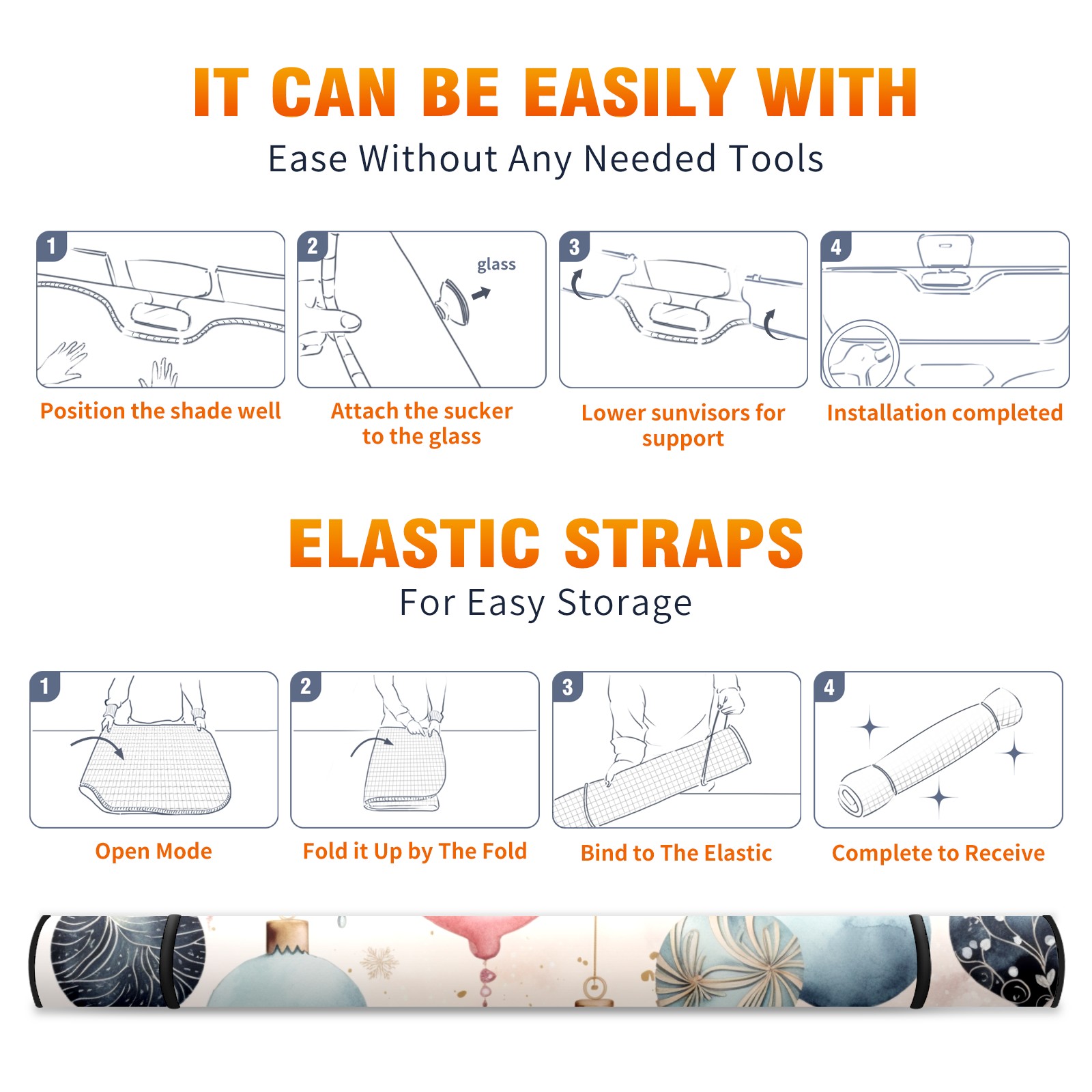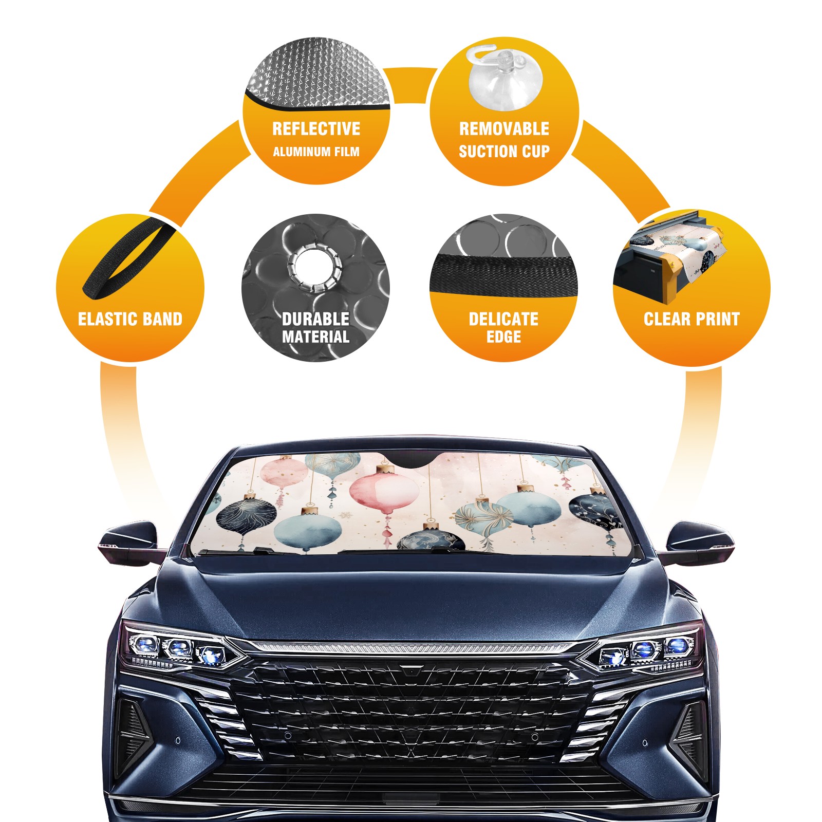 Car Windshield Sun Shade for Front Window Ball Ornaments And Snowflakes Foldable Vehicle Windshield Car Sun Visor Covers Automotive Window Protector Car Privacy Sun Blocker