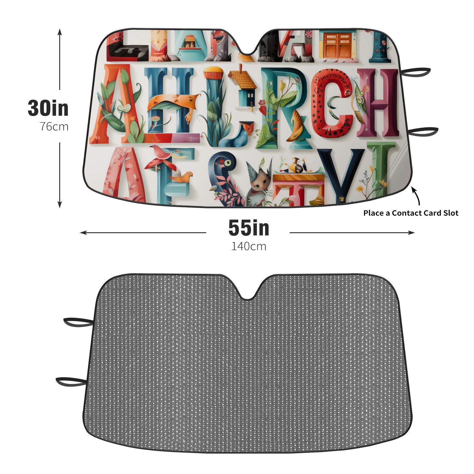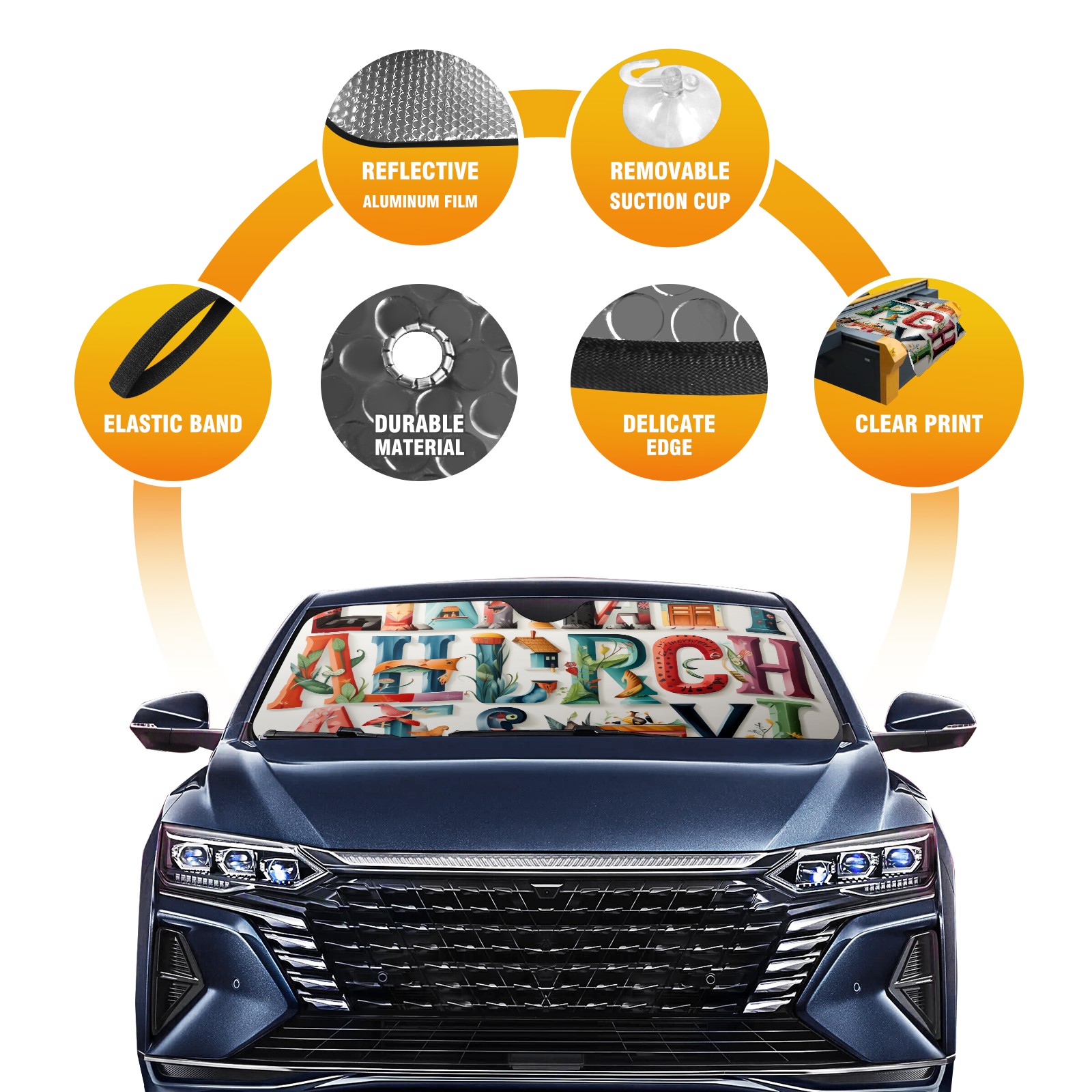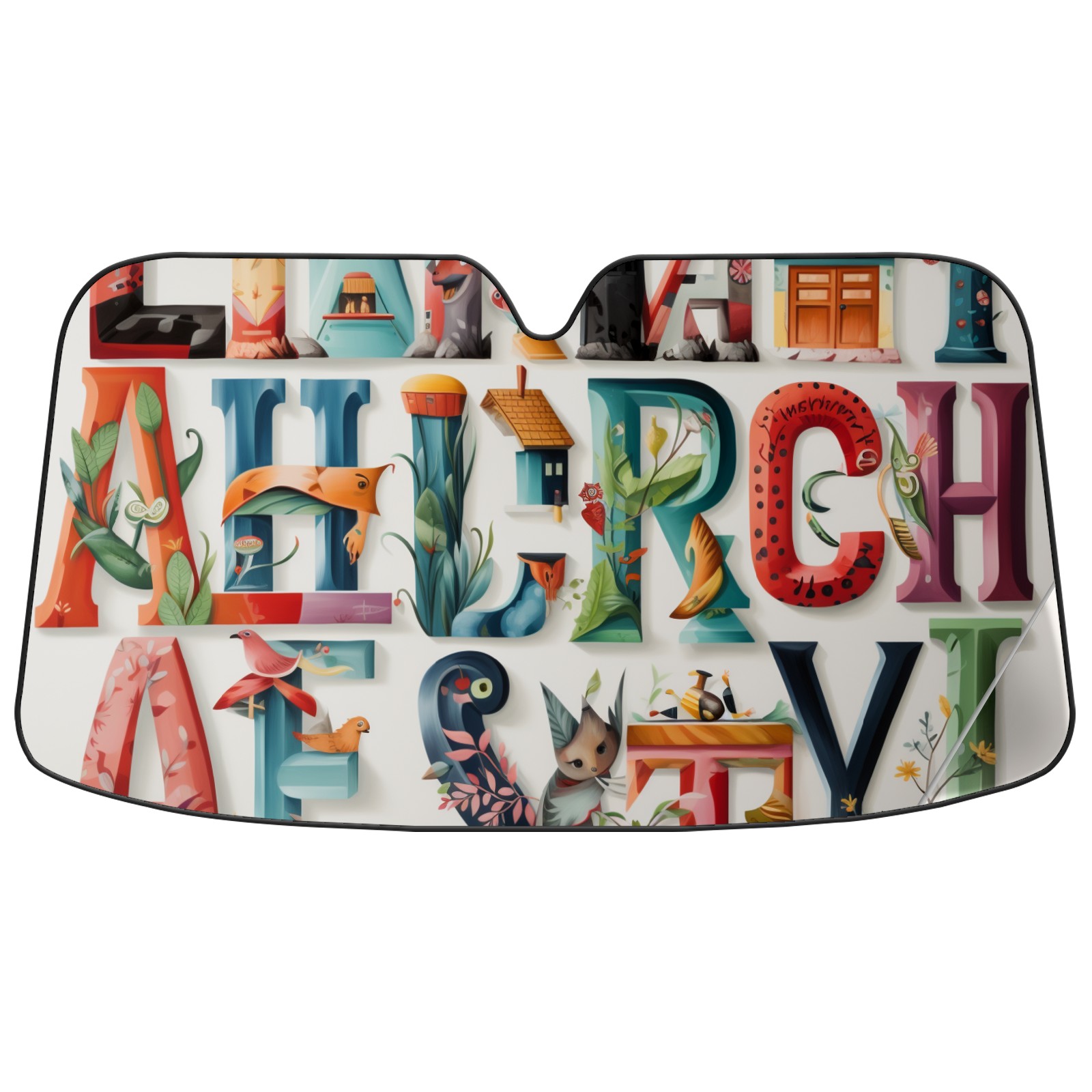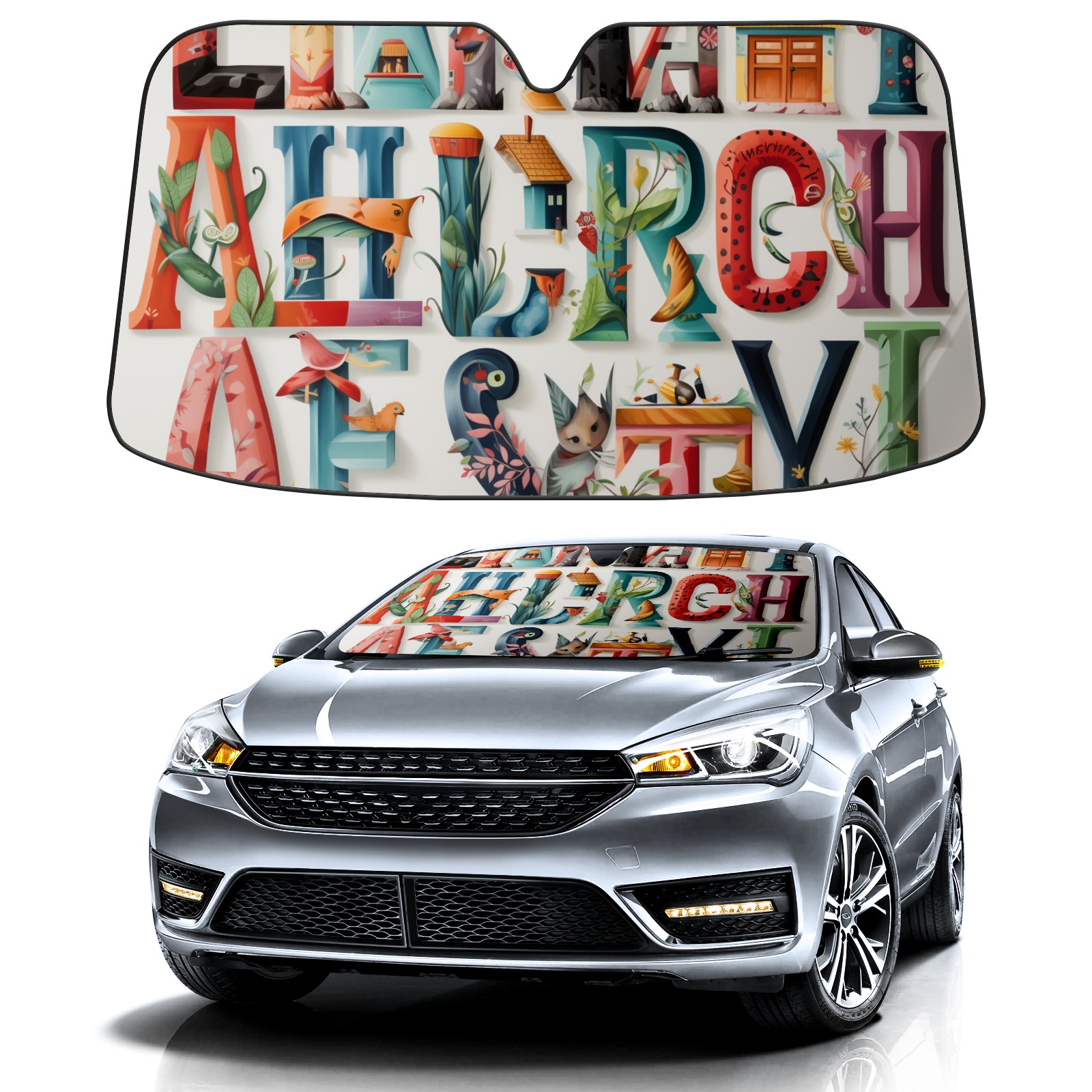 Car Windshield Sun Shade for Front Window Alphabet Lettering Colorful Foldable Vehicle Windshield Car Sun Visor Covers Automotive Window Protector Car Privacy Sun Blocker