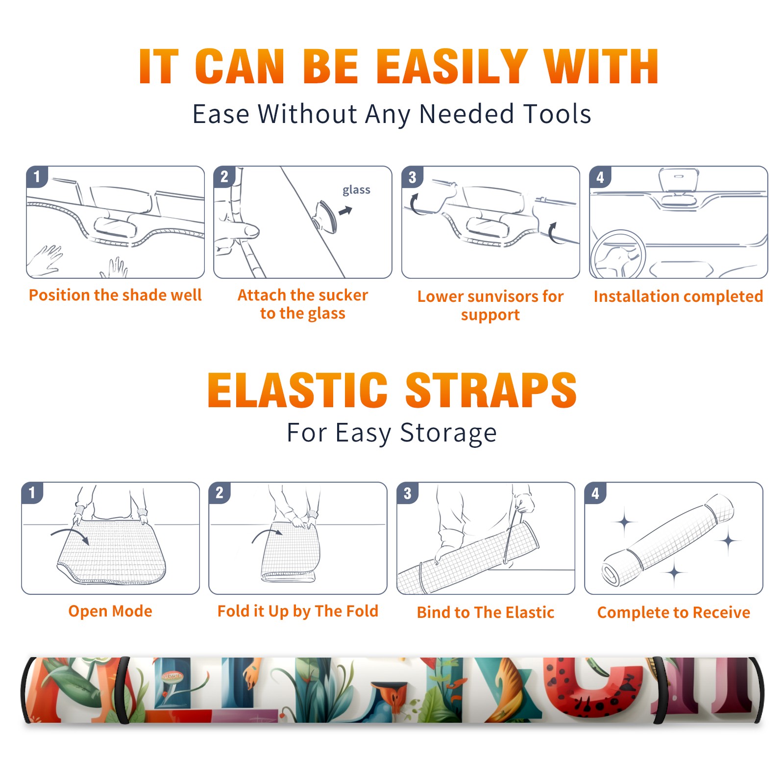 • </b>ZXIVGOQFR Foldable Premium Car Windshield Sunshade is your great solution to reduce your car’s interior temperature dramatically! This is definitely a must-have item for your summer travel! </b> <br> ●</b>Size: 63"L x 33.5"W </b> <br> ●</b>Blocking Uv Rays & Heat Insulation</b><br> Our vehicle sunshade provides effective UV, sun, and summer heat protection .Maintains dashboards by preventing fading and cracking <br> ●</b>Easy-To-Store Folding Design Makes Storage Convenient </b><br> ZXIVGOQFR car sunshades come with removable suction cups and elastic bands that you can install easily and quickly, and the removable suction cups will not leave any marks on your windows when removed. Within seconds, windshield visor can be installed and removed. When not in use,the front windshield can be easily and effectively placed on the door pocket or the dashboard, which is beautiful and does not take up space in the car.<br> <br> </b>PUT UP A 'PROTECTIVE UMBRELLA' FOR YOUR BELOVED CAR!</b>
