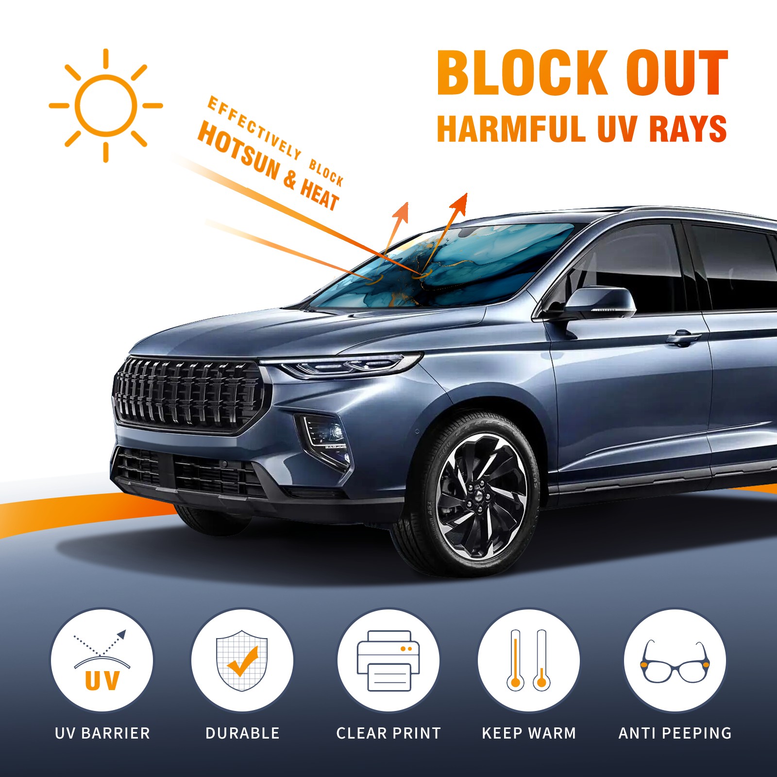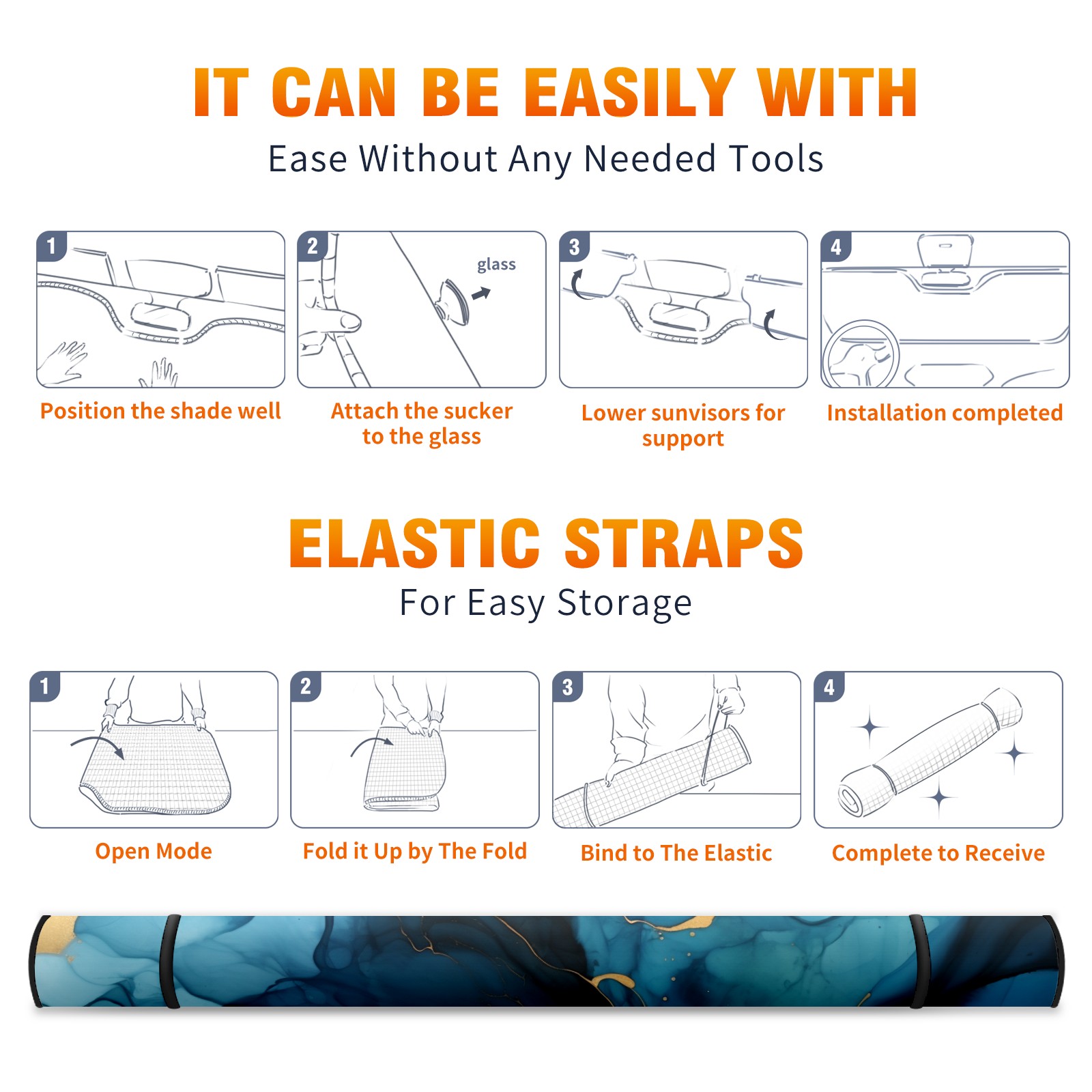 </b>ZXIVGOQFR Foldable Premium Car Windshield Sunshade is your great solution to reduce your car’s interior temperature dramatically! This is definitely a must-have item for your summer travel! </b> <br> ●</b>Size: 63"L x 33.5"W </b> <br> ●</b>Blocking Uv Rays & Heat Insulation</b><br> Our vehicle sunshade provides effective UV, sun, and summer heat protection .Maintains dashboards by preventing fading and cracking <br> ●</b>Easy-To-Store Folding Design Makes Storage Convenient </b><br> ZXIVGOQFR car sunshades come with removable suction cups and elastic bands that you can install easily and quickly, and the removable suction cups will not leave any marks on your windows when removed. Within seconds, windshield visor can be installed and removed. When not in use,the front windshield can be easily and effectively placed on the door pocket or the dashboard, which is beautiful and does not take up space in the car.<br> <br> </b>PUT UP A 'PROTECTIVE UMBRELLA' FOR YOUR BELOVED CAR!</b>