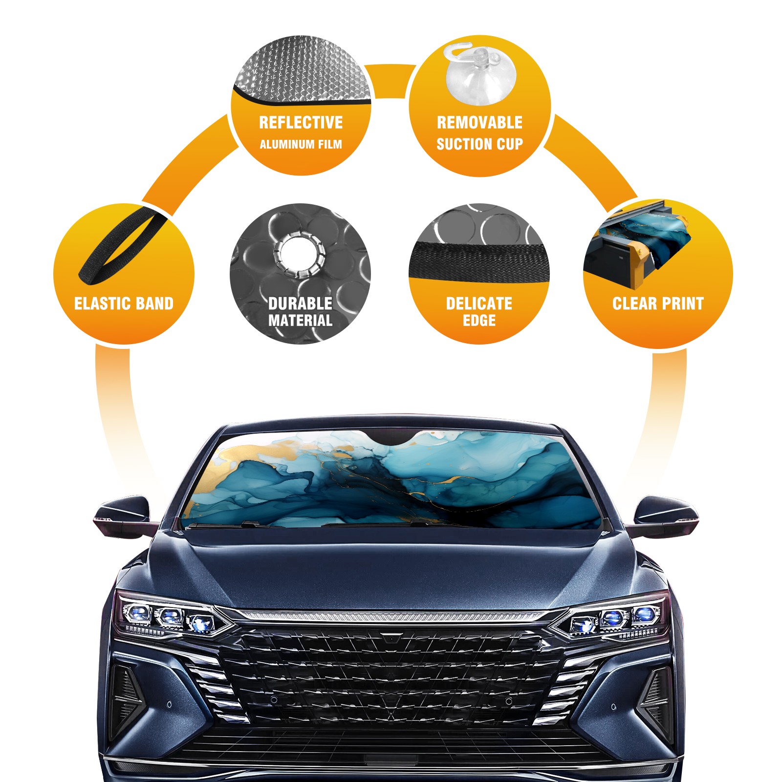 Car Windshield Sun Shade for Front Window Abstract Water Foldable Vehicle Windshield Car Sun Visor Covers Automotive Window Protector Car Privacy Sun Blocker