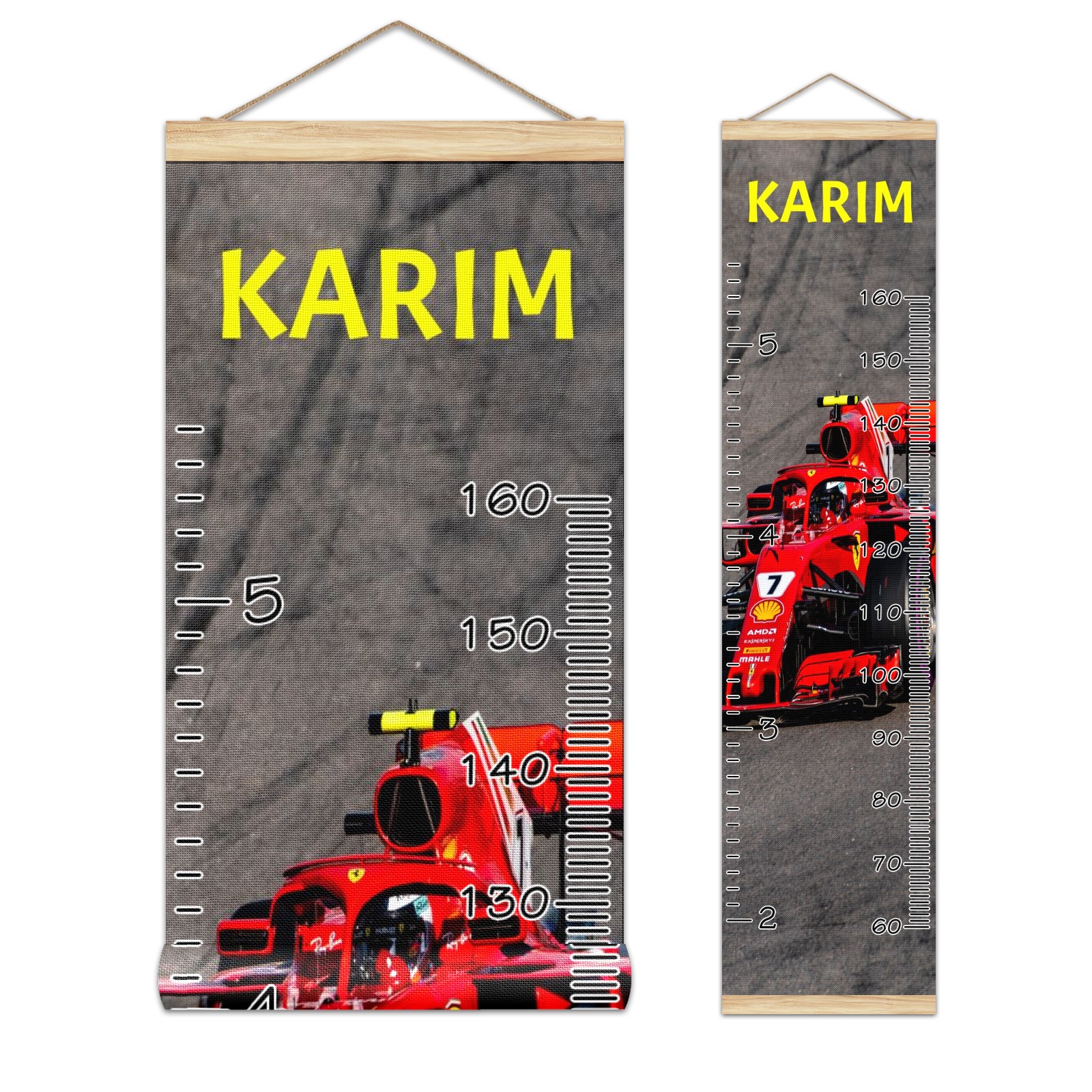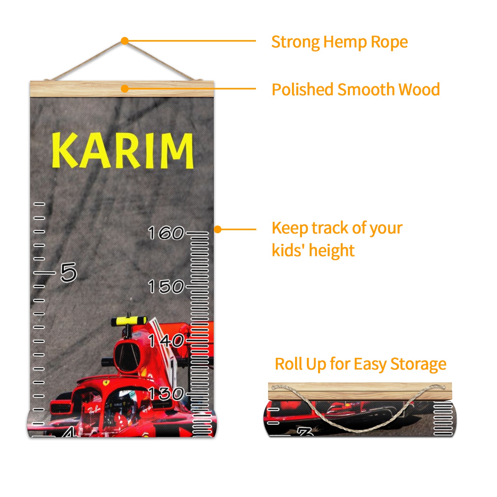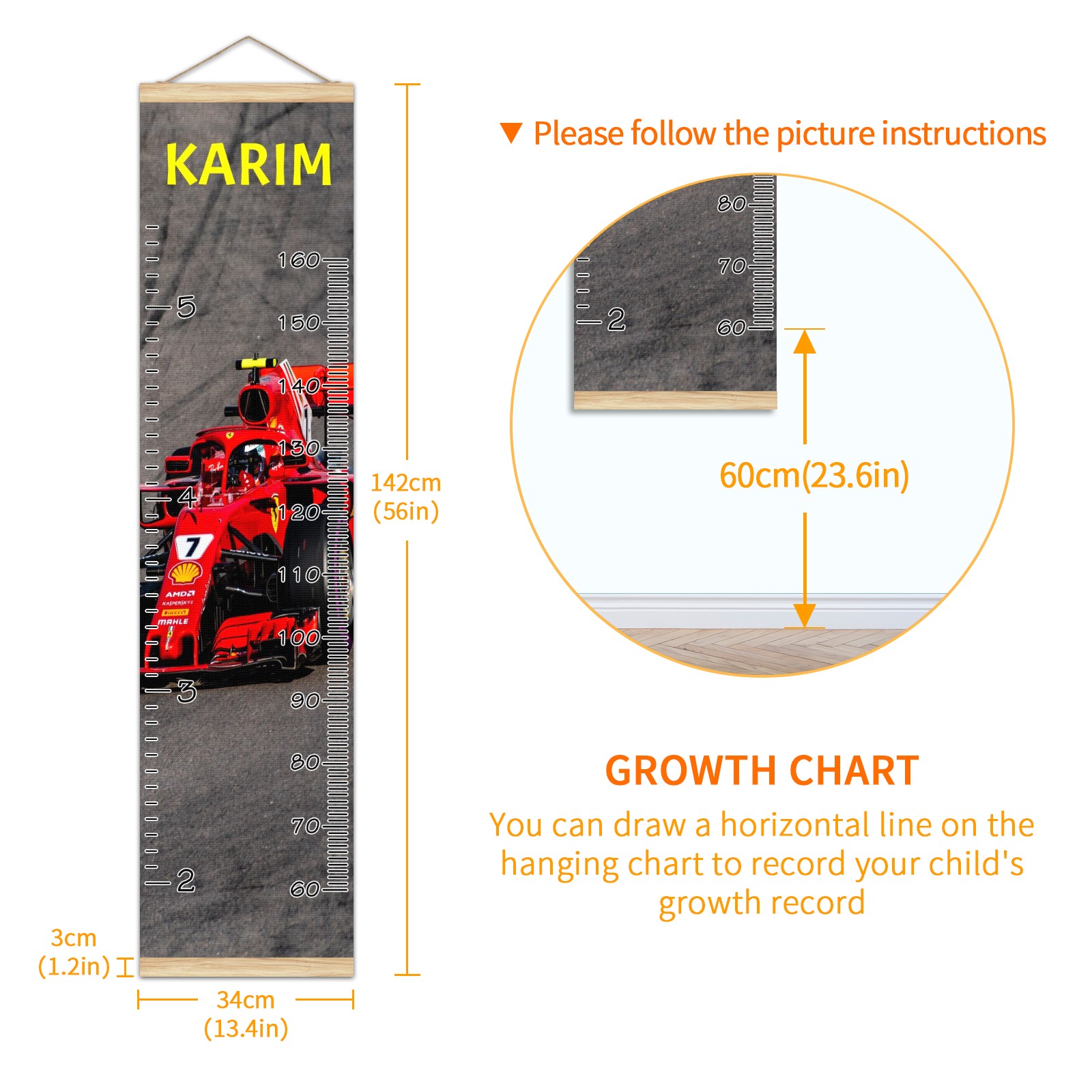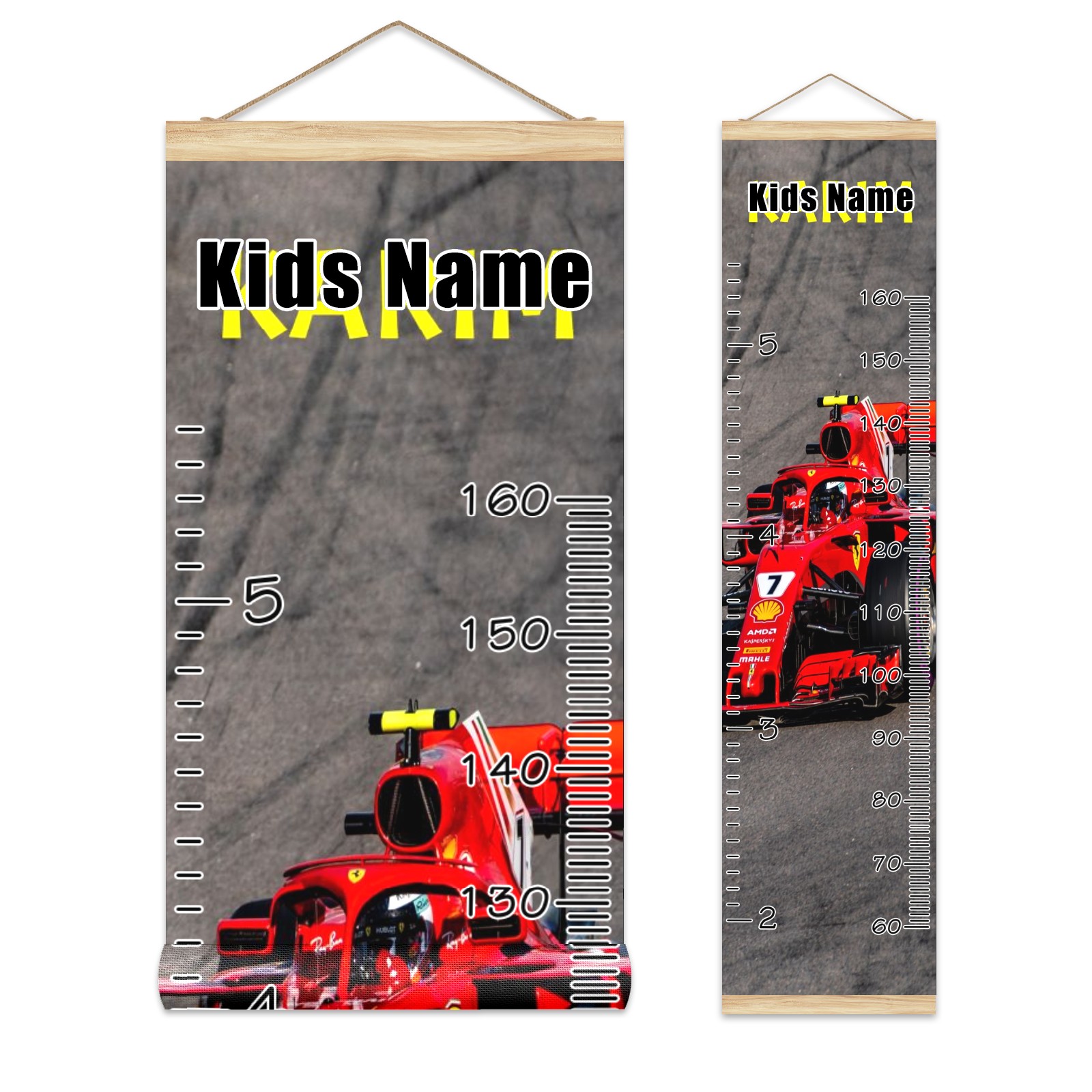 Personalized Kids Name Growth Chart Ruler for Wall Wood Frame Height Measure Chart 13.4x56 in Linen Hanging Height Growth Chart RACE CAR4.22 Kids Room Decor