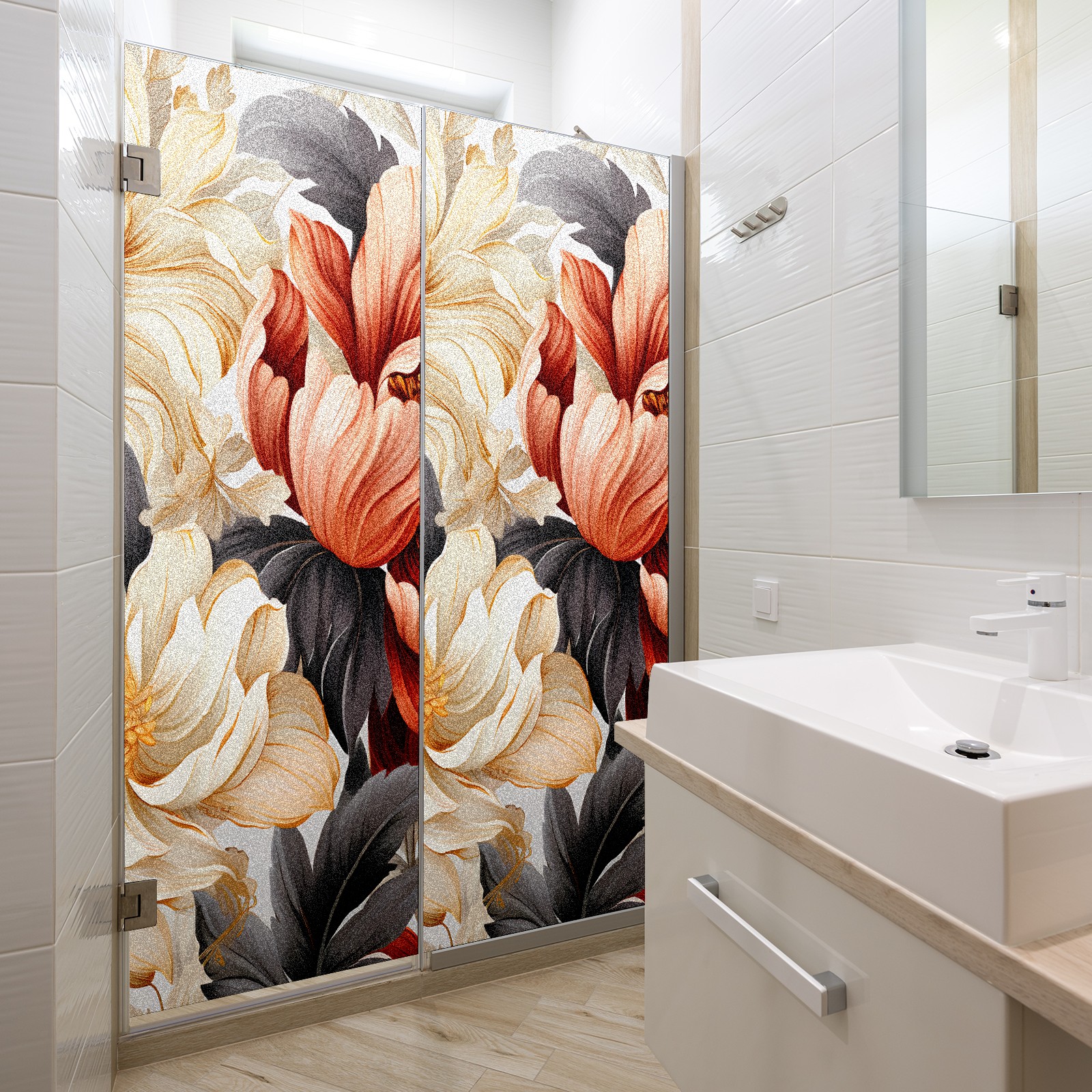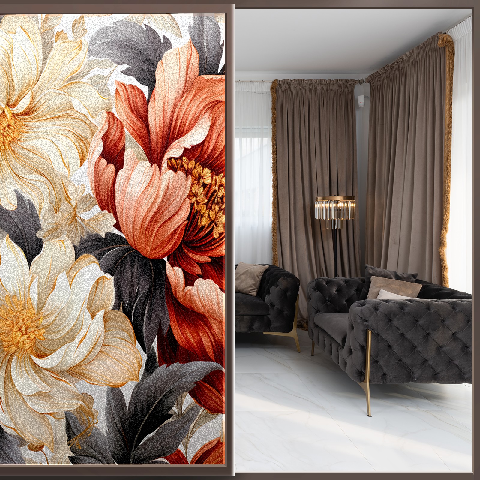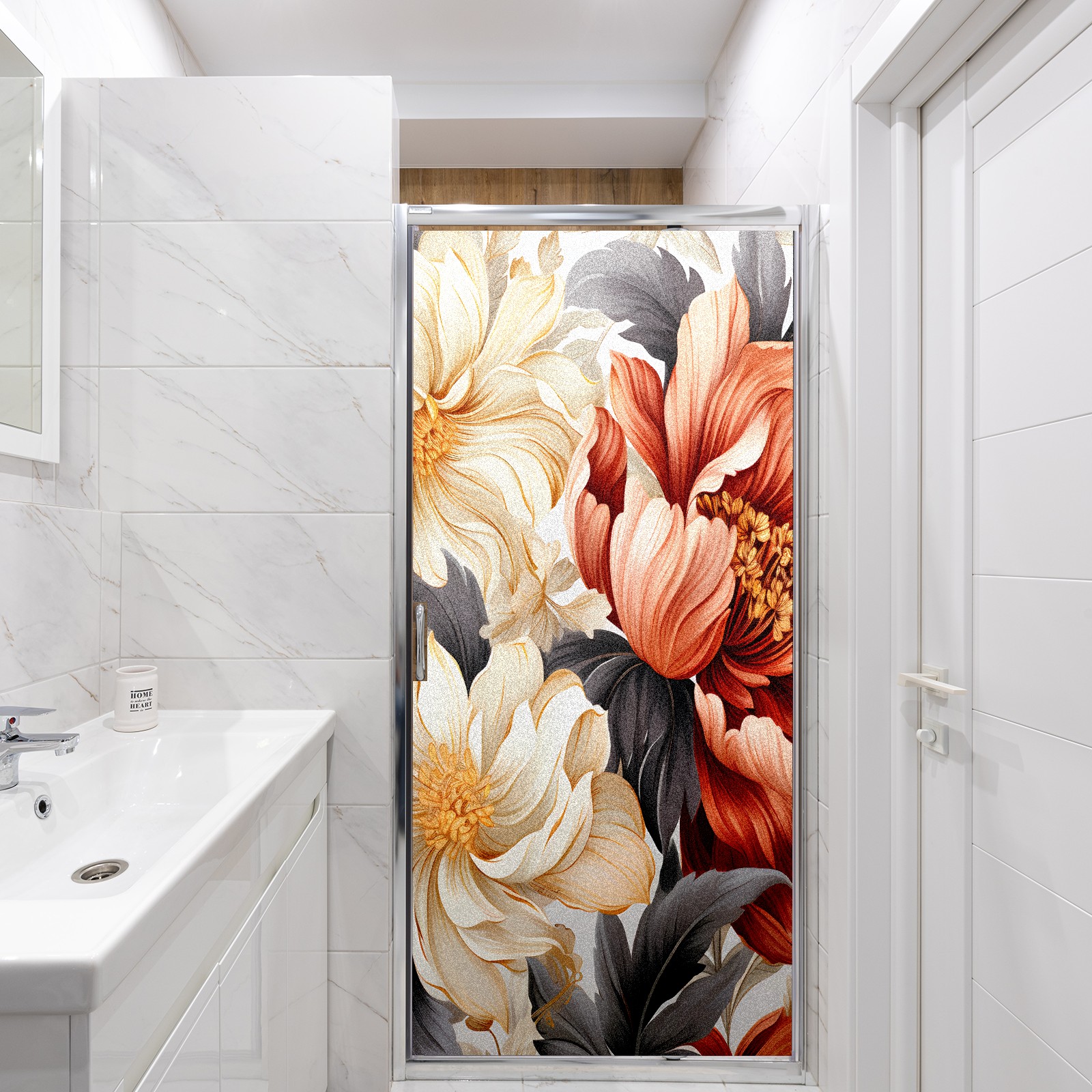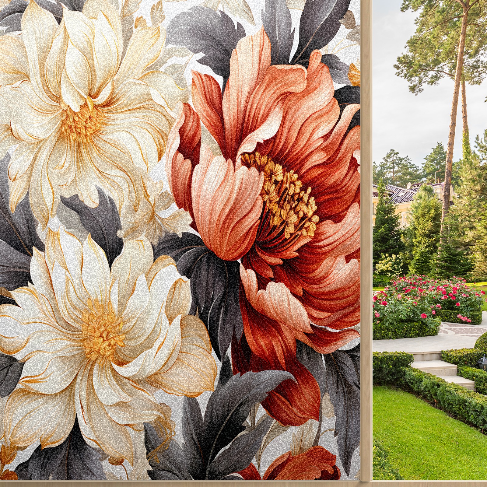 MSINMKOK Window Privacy Film Flowerss Decorative Frosted Glass Window Film for Glass Door Bathroom Window 17.7'' x 23.6'' Non-Adhesive Window Decals Stickers