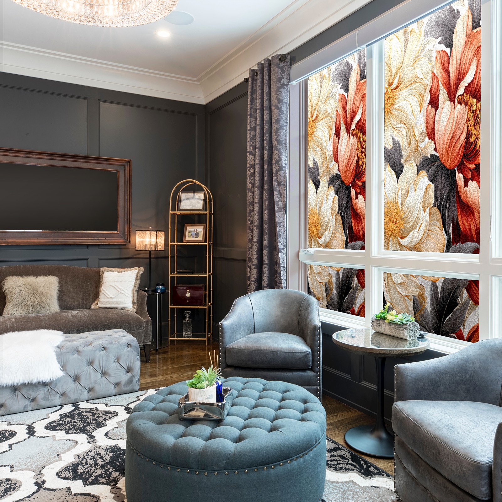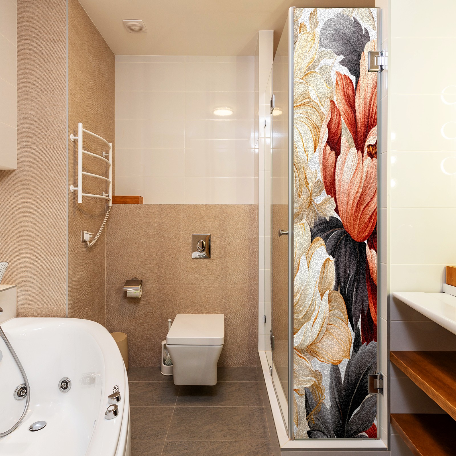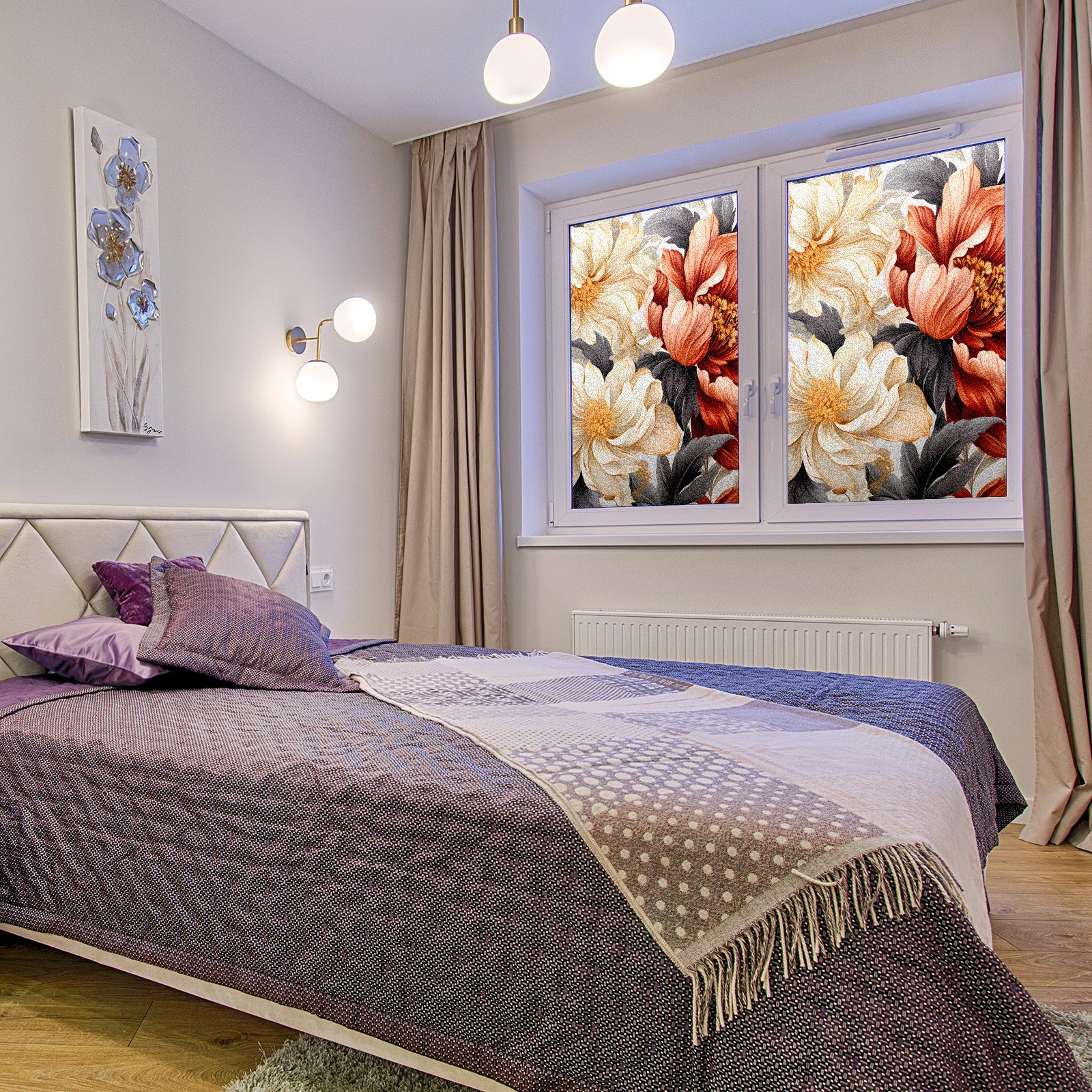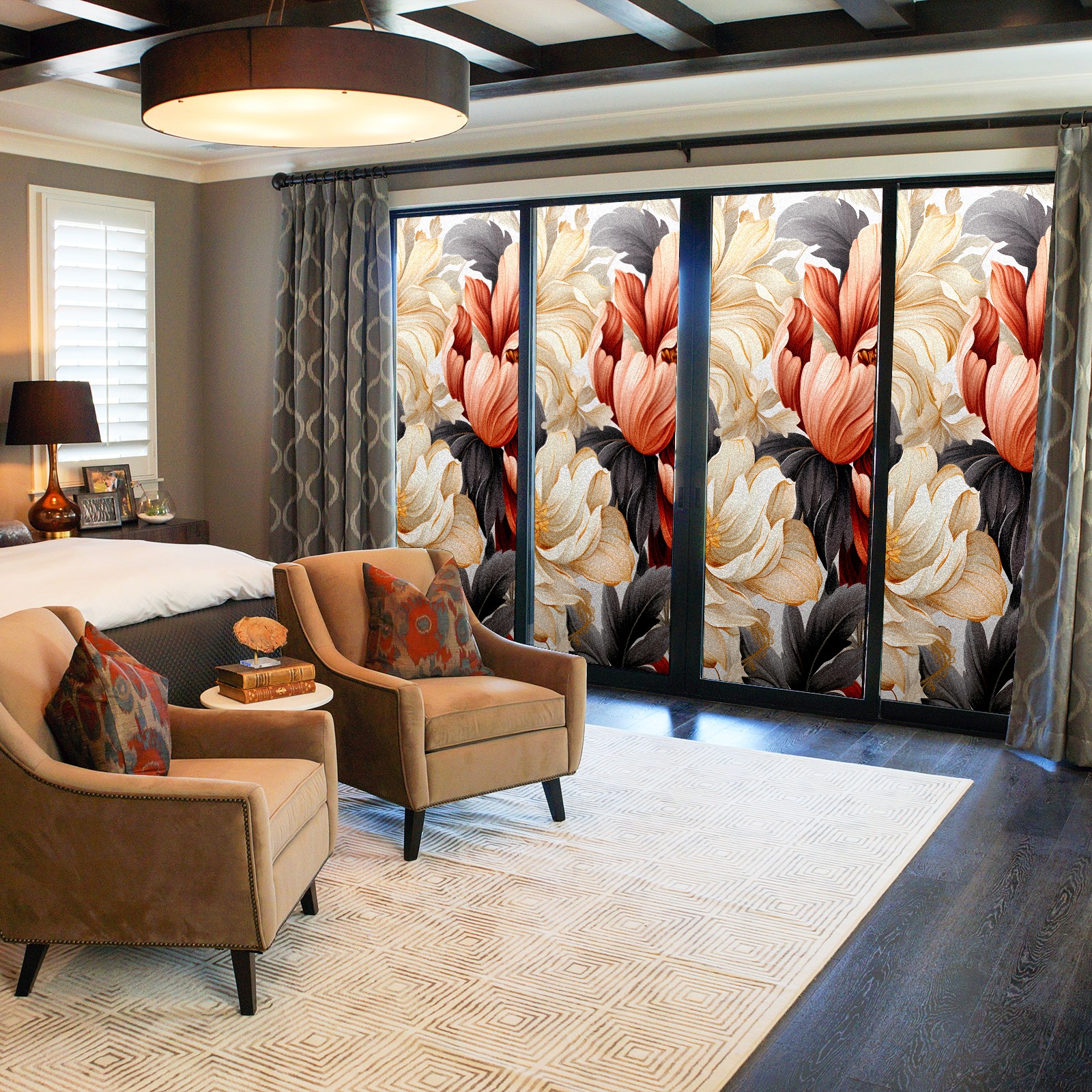 MSINMKOK Window Privacy Film Flowerss Decorative Frosted Glass Window Film for Glass Door Bathroom Window 17.7'' x 23.6'' Non-Adhesive Window Decals Stickers