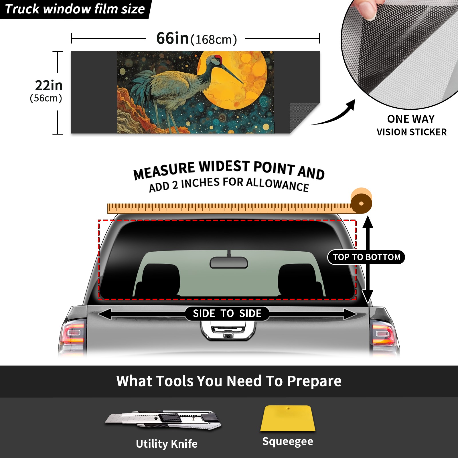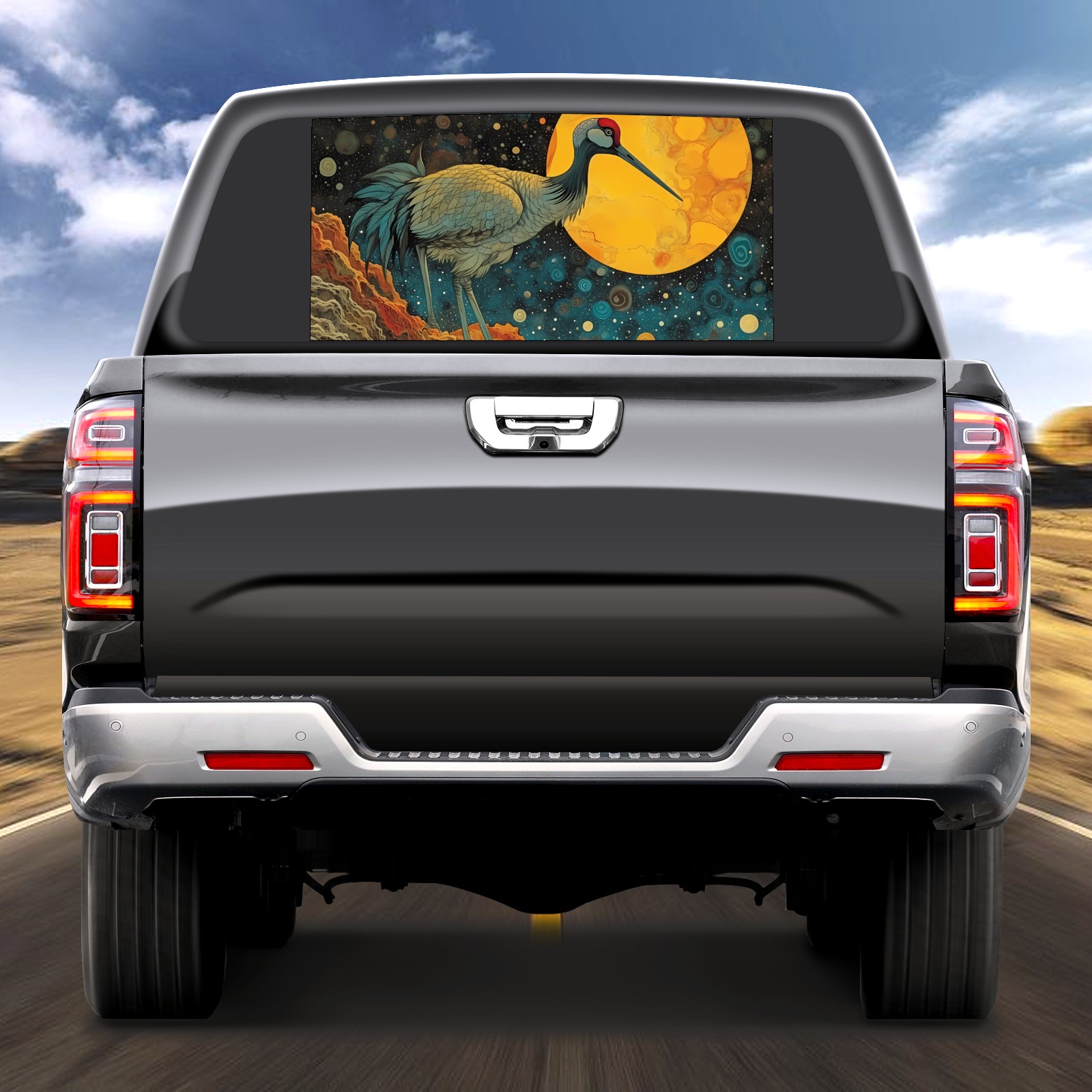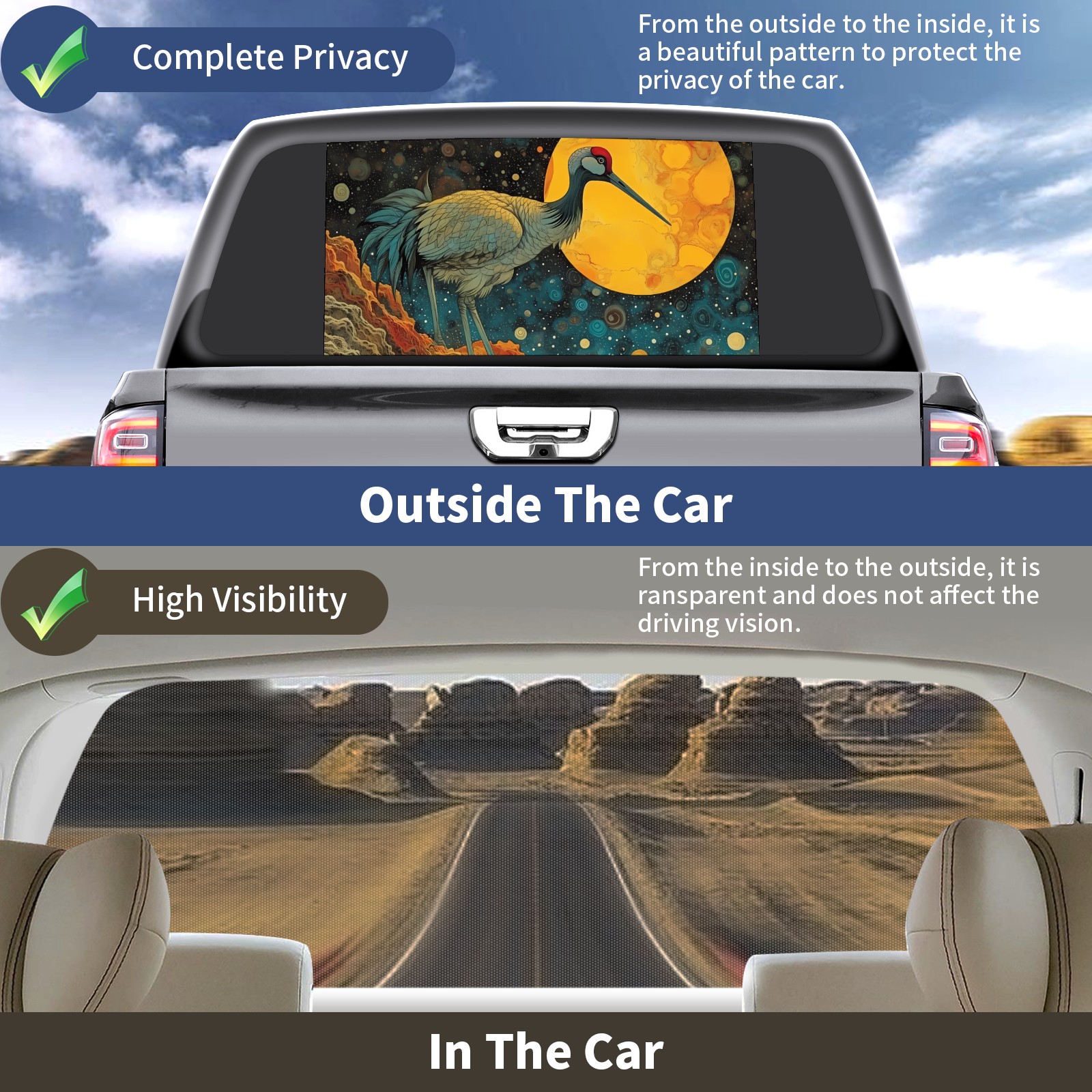 Truck Rear Window Graphics Decals Pickup Trucks Back Window Sticker Full Window Film Decal One Way Visual Waterproof Car Rear Tint Psychedelic Moebius Bird(1)
