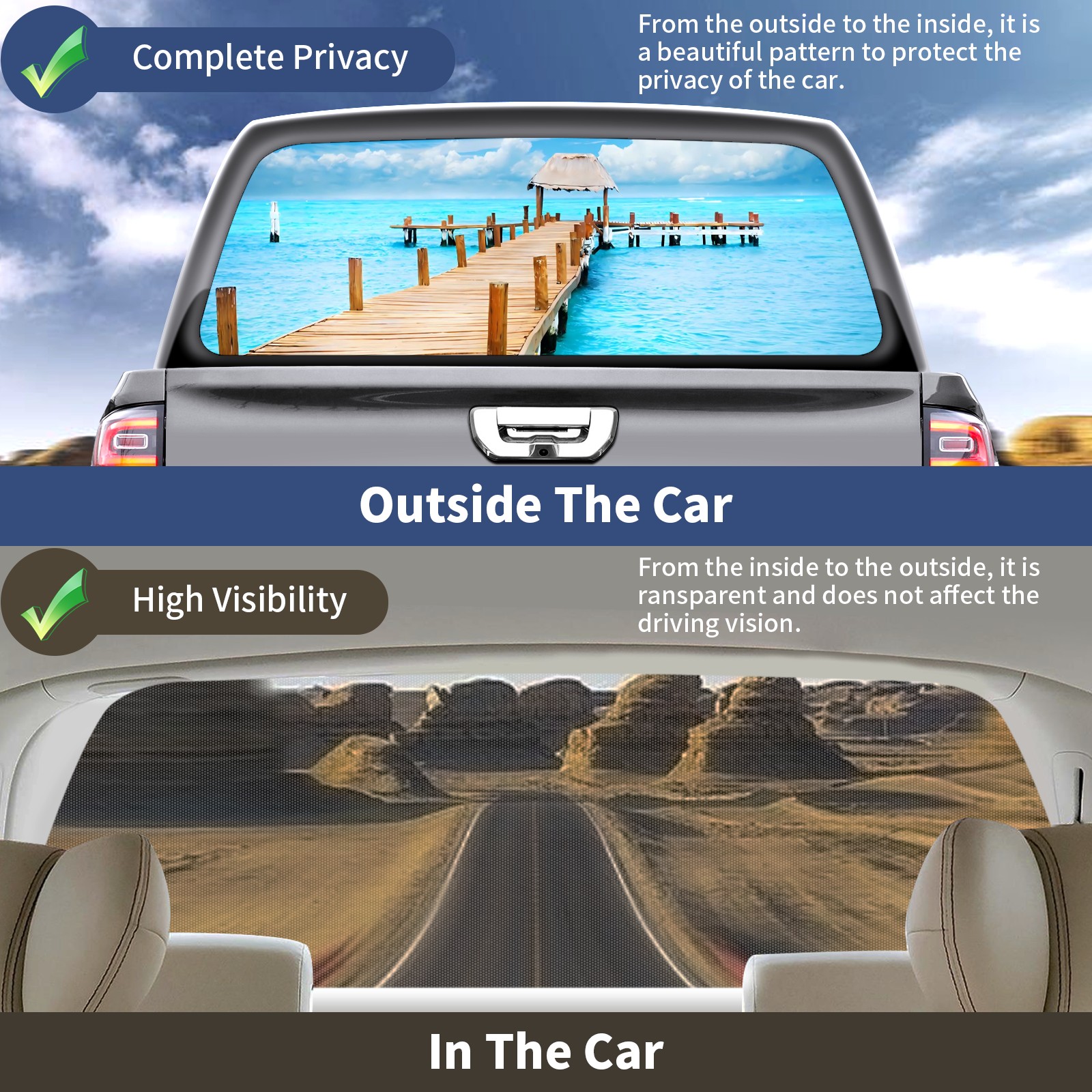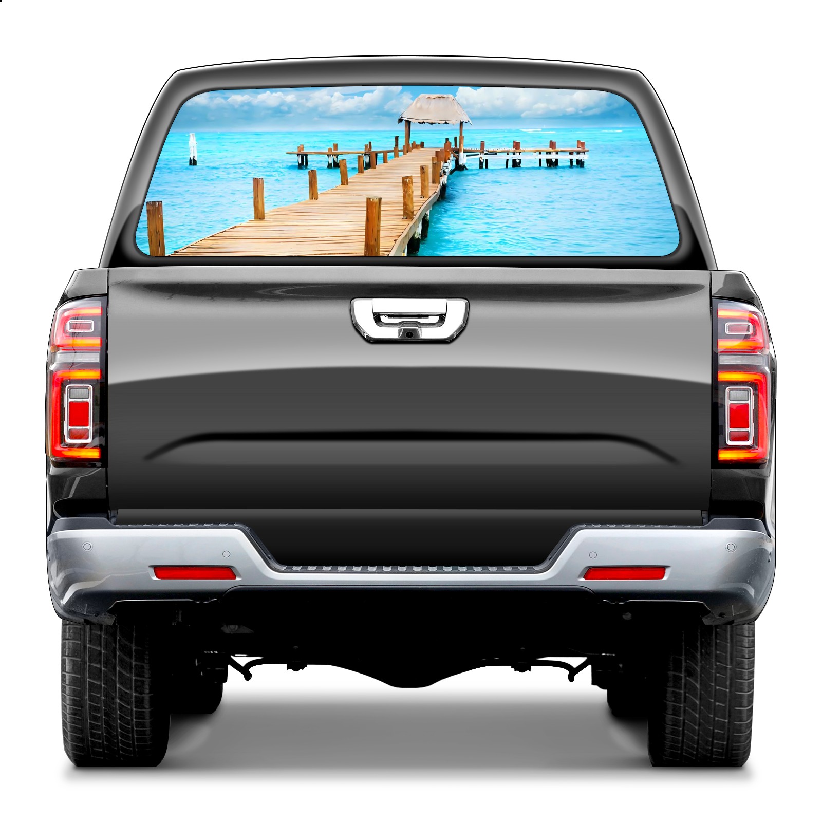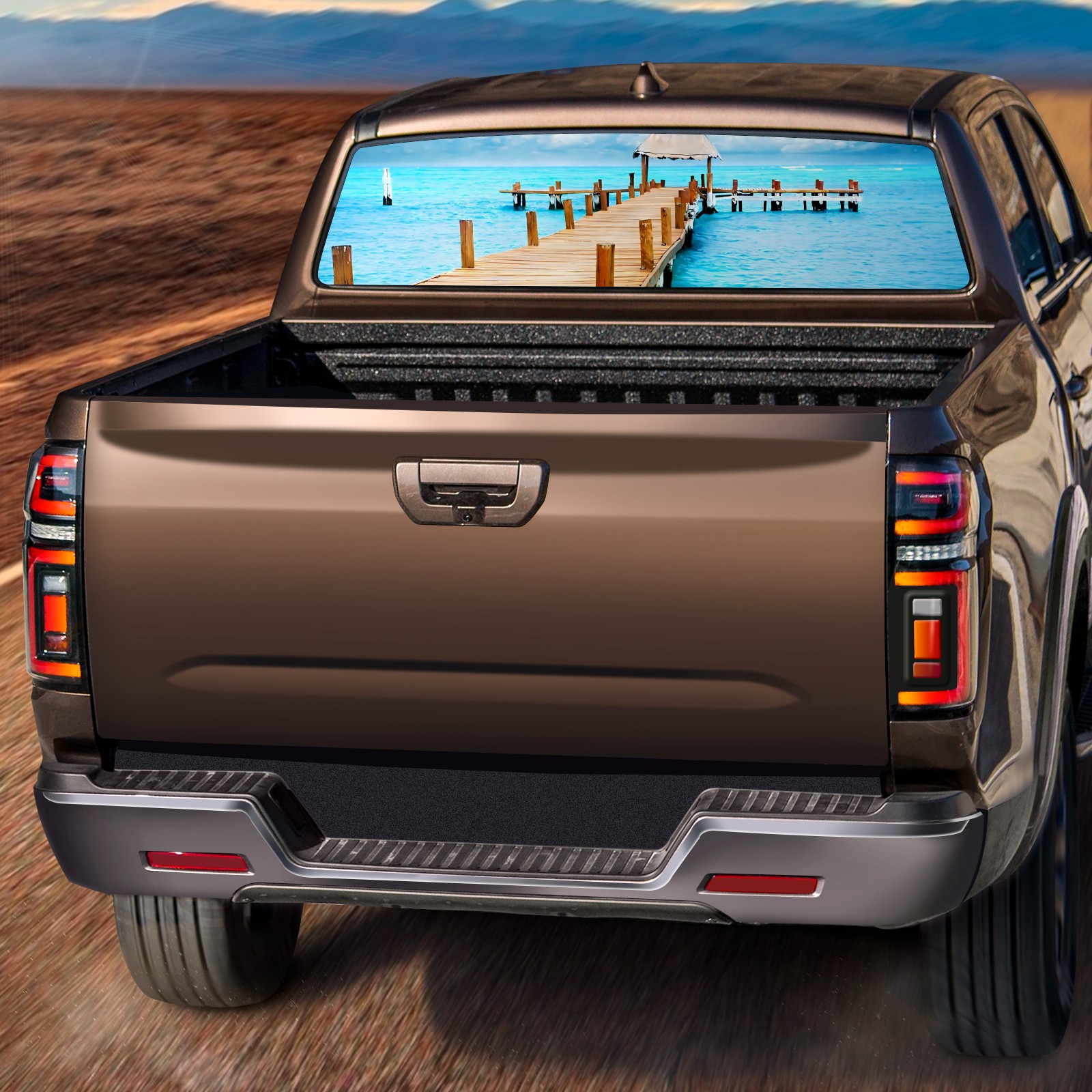 Truck Rear Window Graphics Decals Pickup Trucks Back Window Sticker Full Window Film Decal One Way Visual Waterproof Car Rear Tint Beautiful Beach Seaside Trestle Landscape (1)