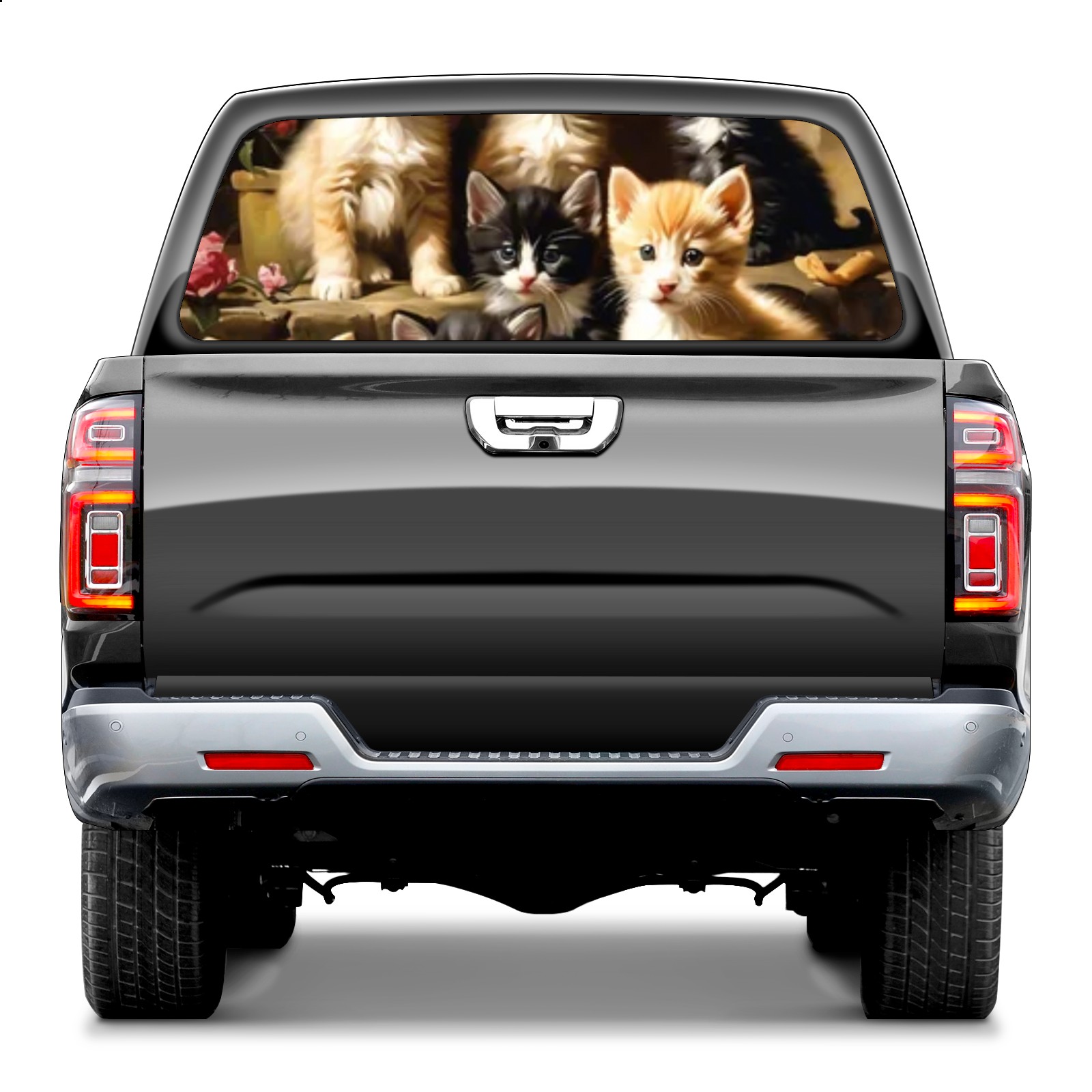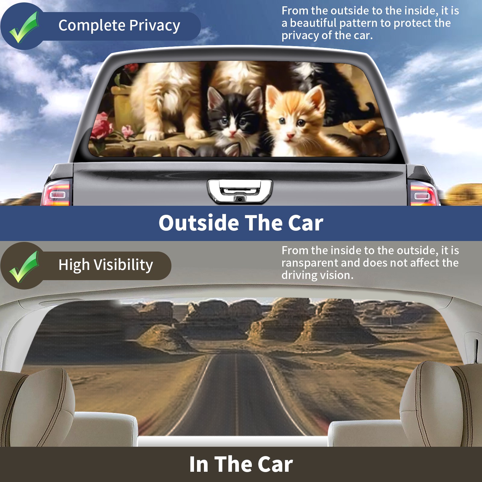 Truck Rear Window Graphics Decals Pickup Trucks Back Window Sticker Full Window Film Decal One Way Visual Waterproof Car Rear Tint Cute Animal Dog Cat