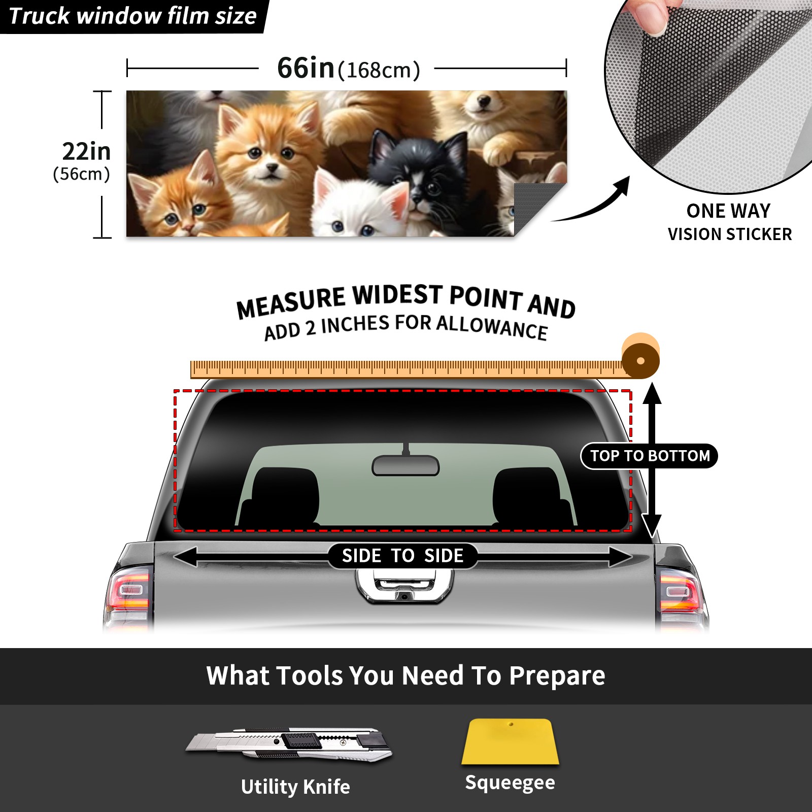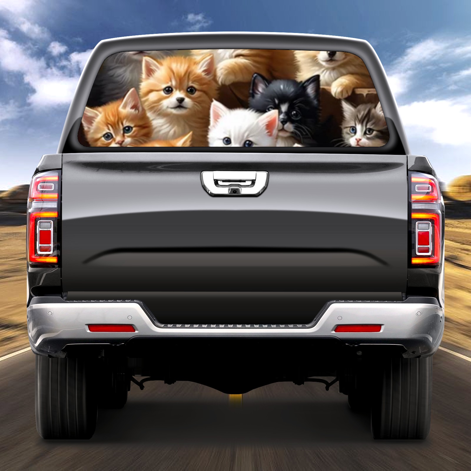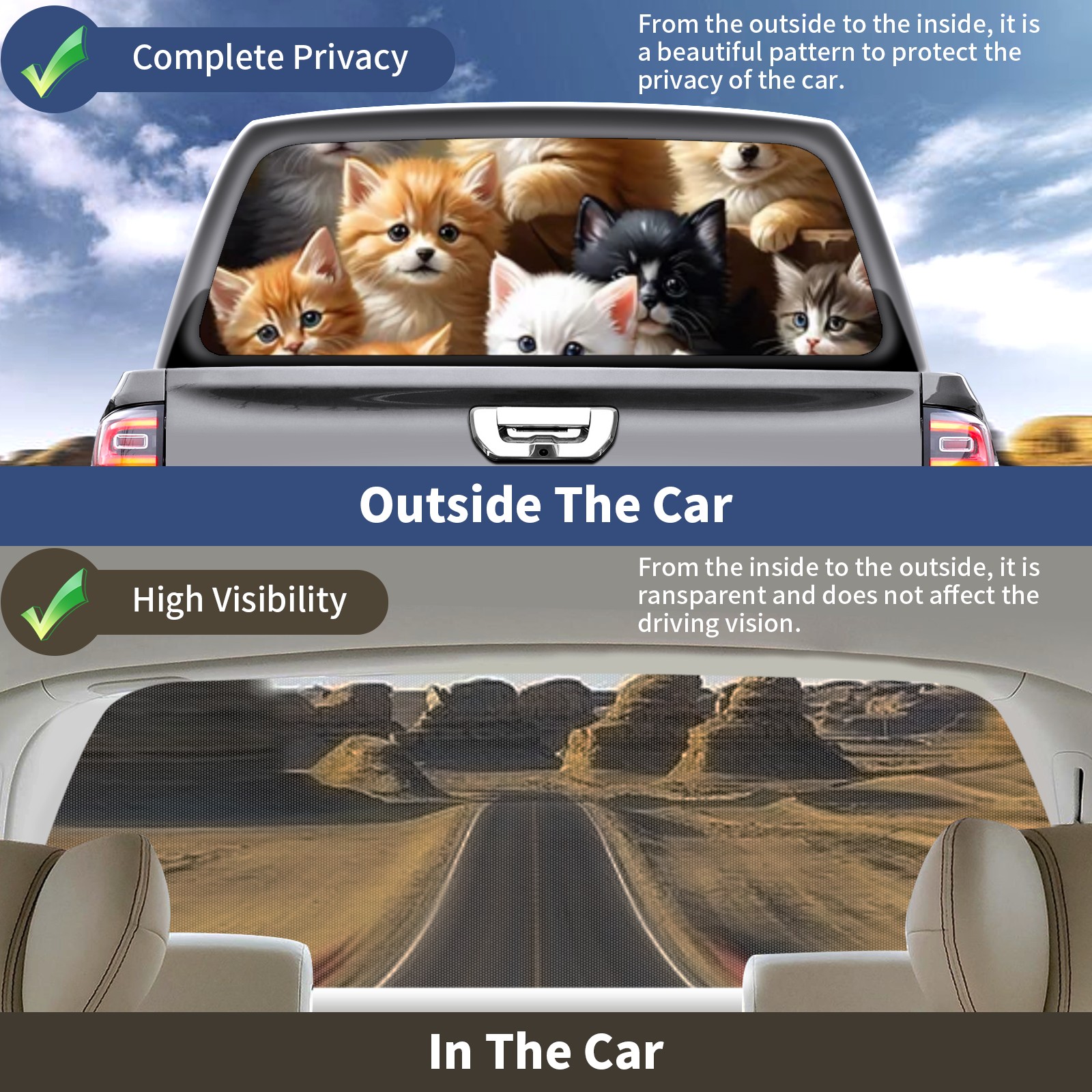 Truck Rear Window Graphics Decals Pickup Trucks Back Window Sticker Full Window Film Decal One Way Visual Waterproof Car Rear Tint Cute Animal Cat