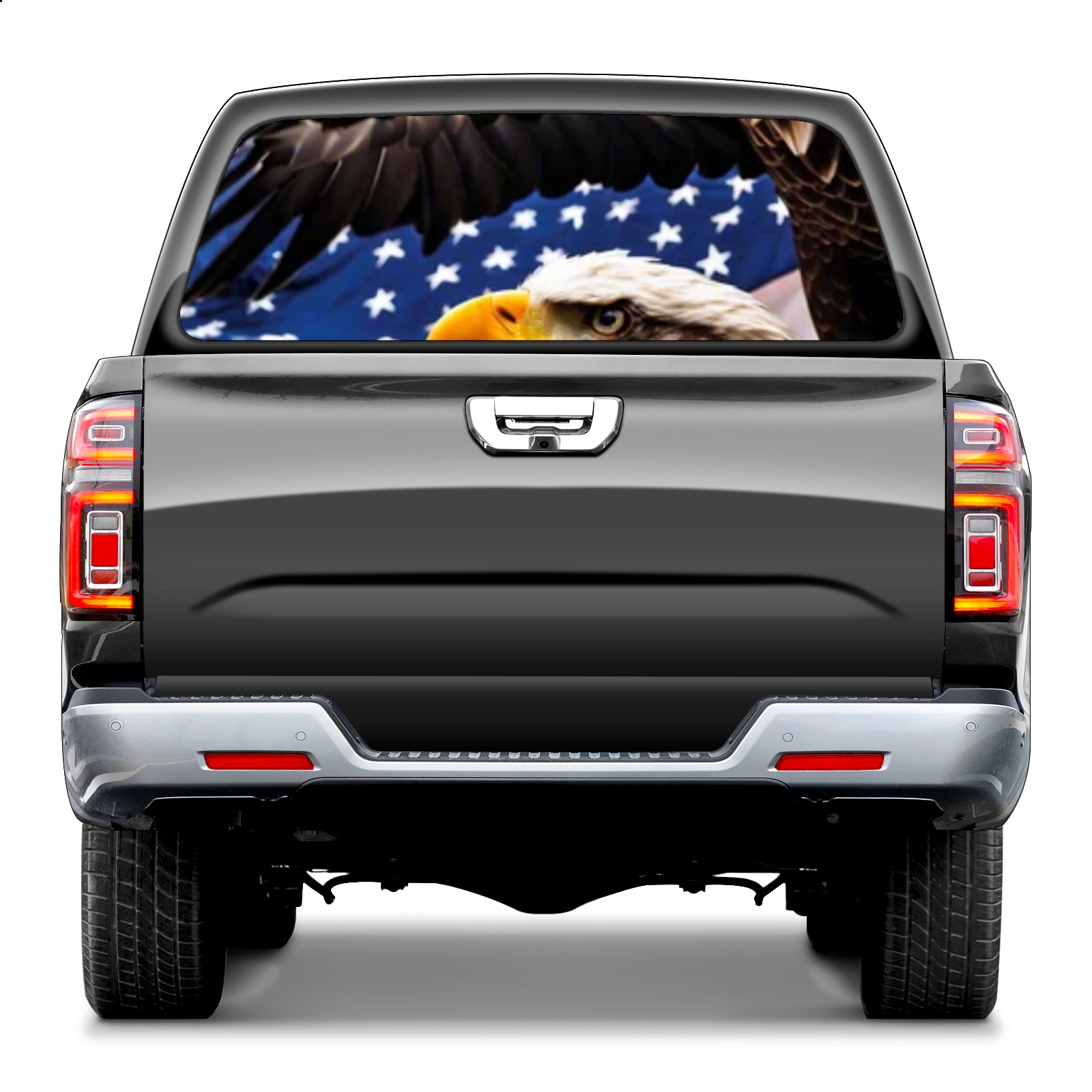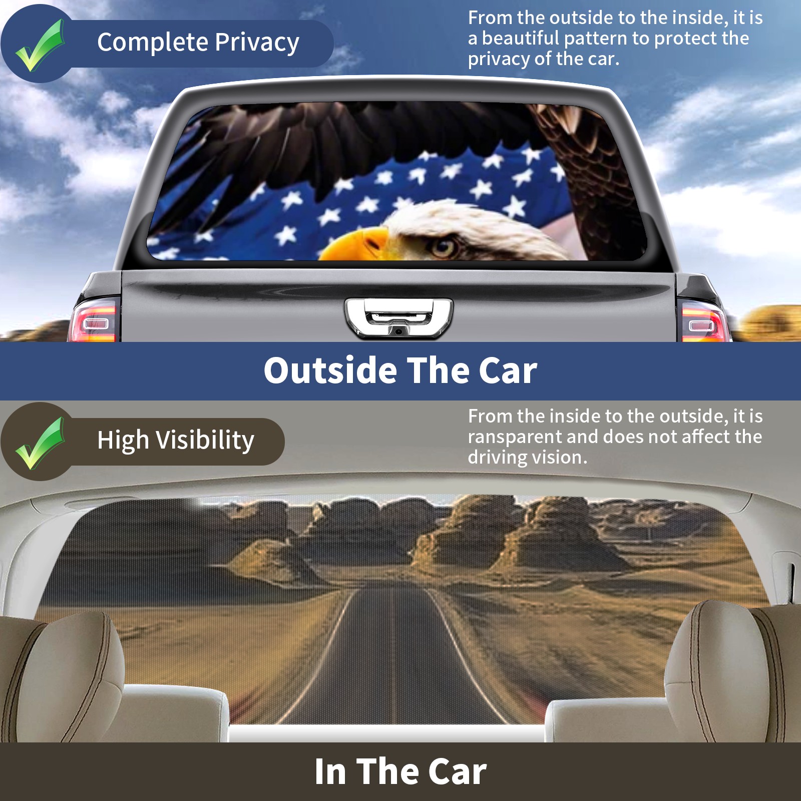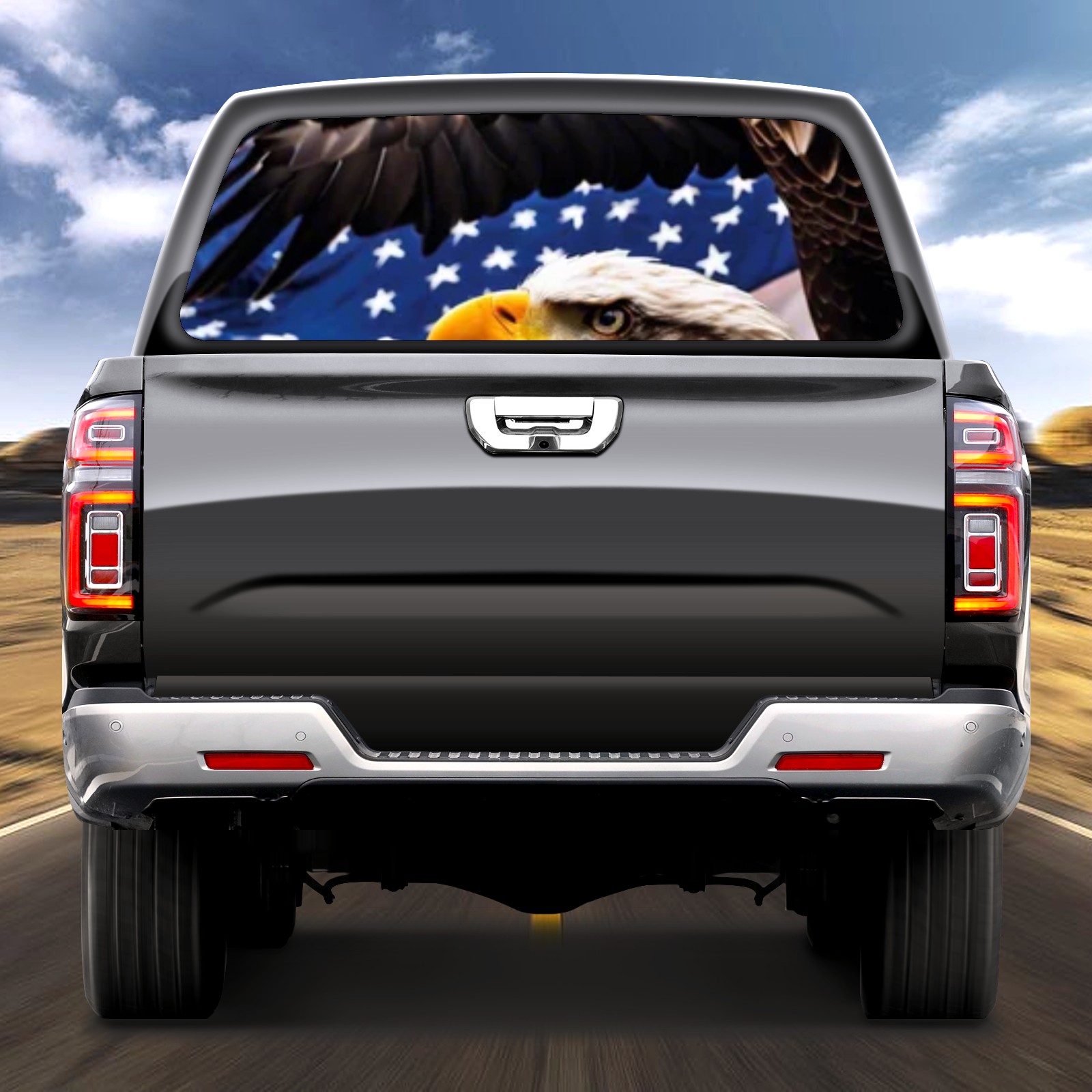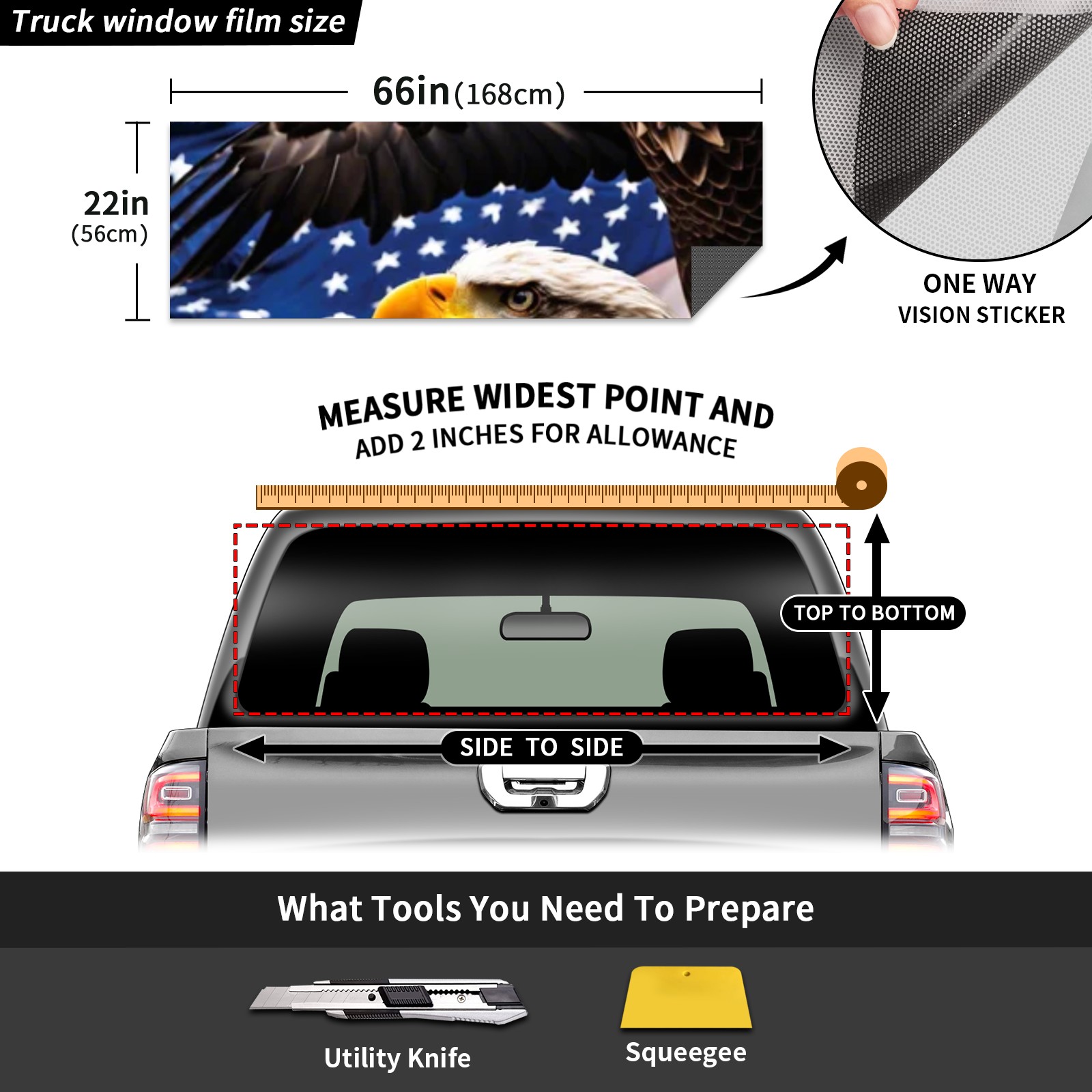 Truck Rear Window Graphics Decals Pickup Trucks Back Window Sticker Full Window Film Decal One Way Visual Waterproof Car Rear Tint American Flag Eagle