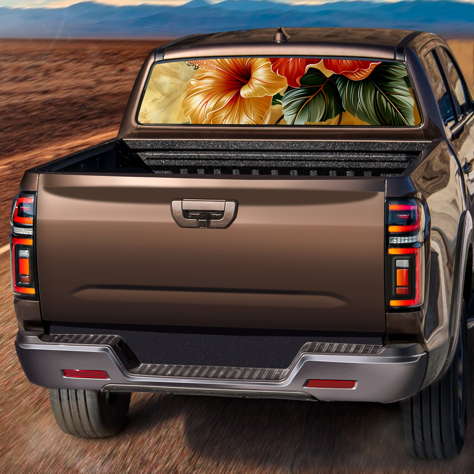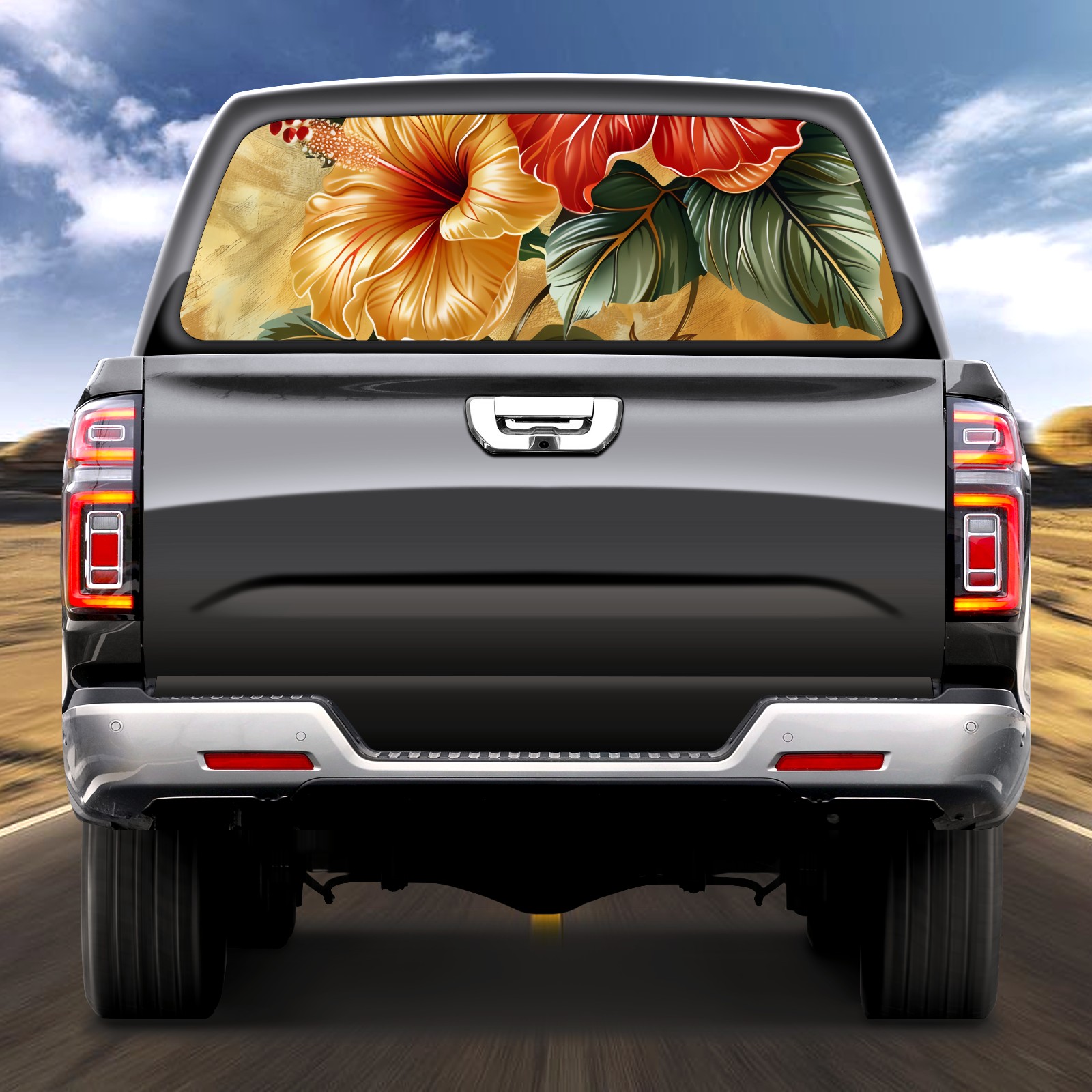 Truck Rear Window Graphics Decals Pickup Trucks Back Window Sticker Full Window Film Decal One Way Visual Waterproof Car Rear Tint Fusang Flower
