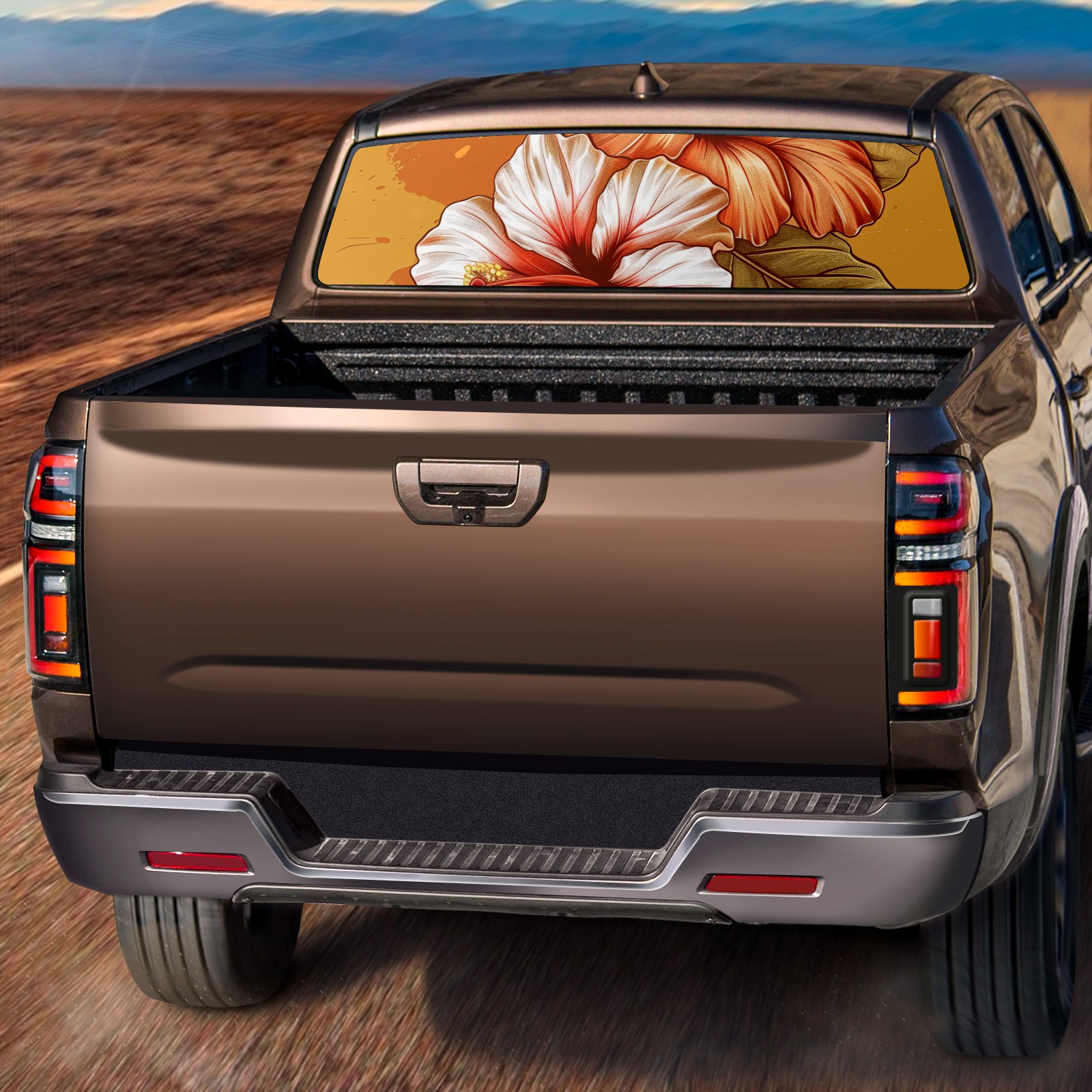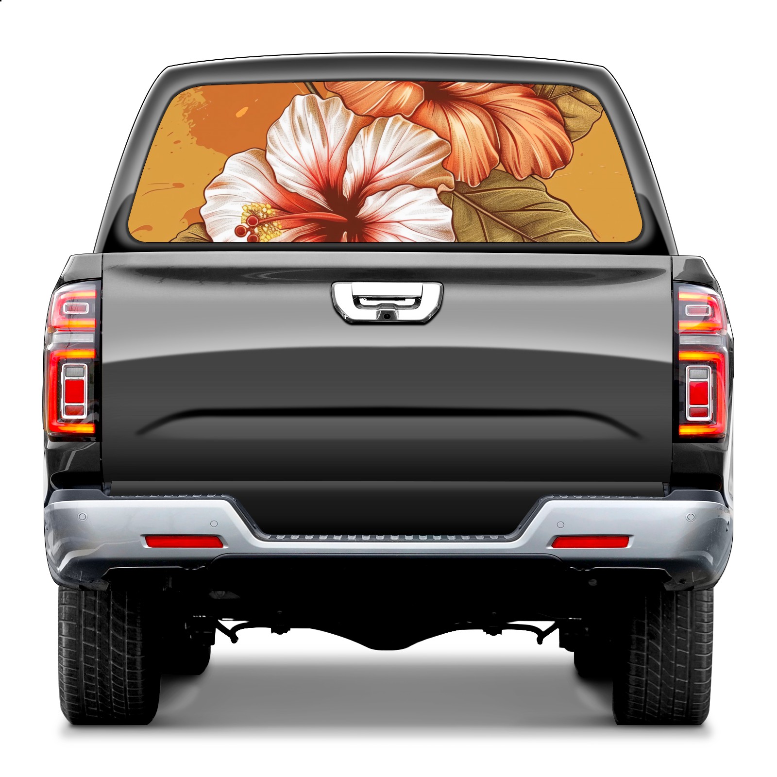 Truck Rear Window Graphics Decals Pickup Trucks Back Window Sticker Full Window Film Decal One Way Visual Waterproof Car Rear Tint Cotton Rose Hibiscus